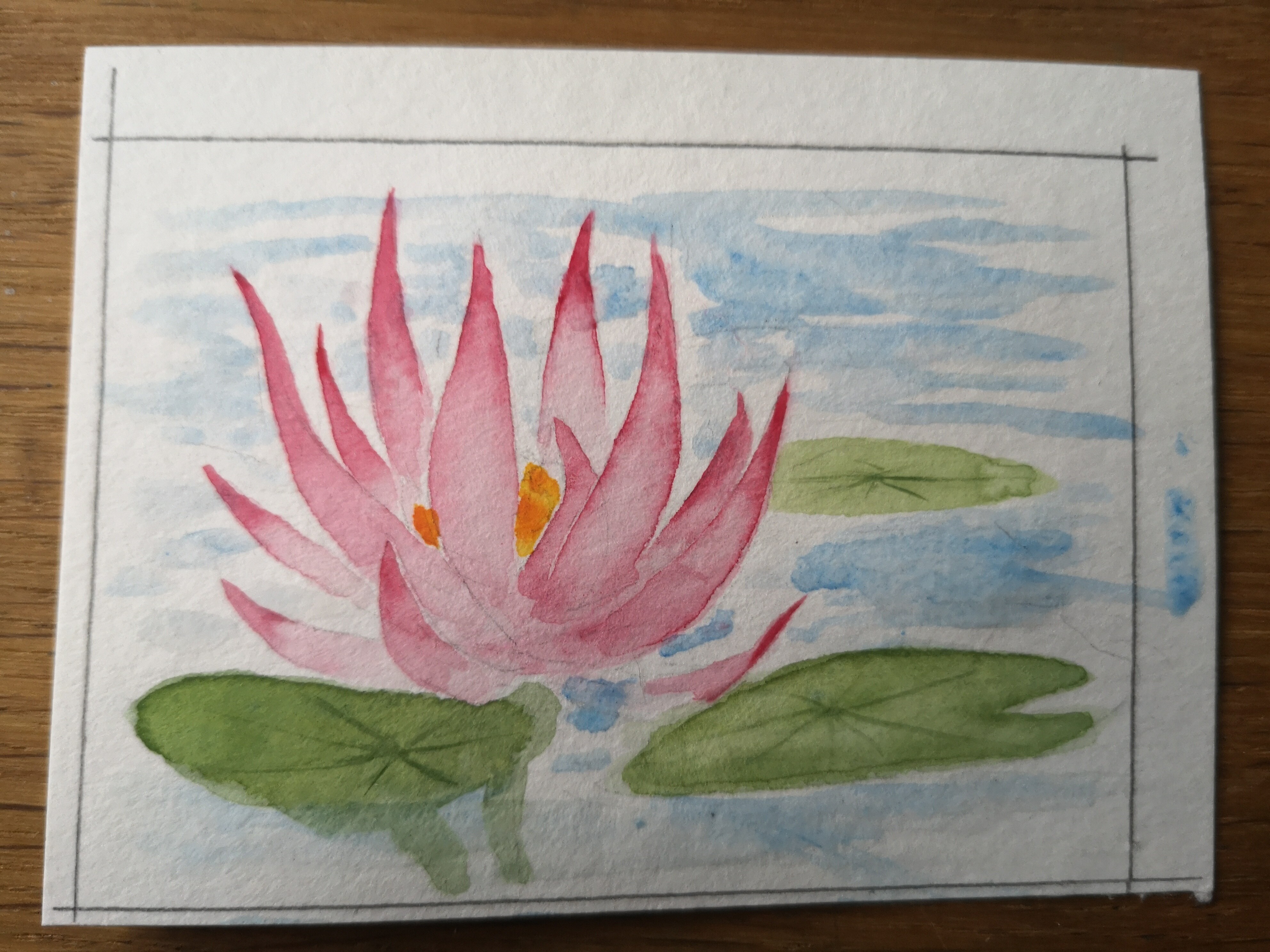 Hab angefanfen ein bisschen was zu Bullet Journaling zu gucken und da gab es ein Lotus-Thema. Da ich See- und Teichrosen sehr mag, hab ich mich davon inspirieren lassen und mit auch mal wieder am Outlinelosen Malen versucht. Hat ganz gut geklappt, denk ich.