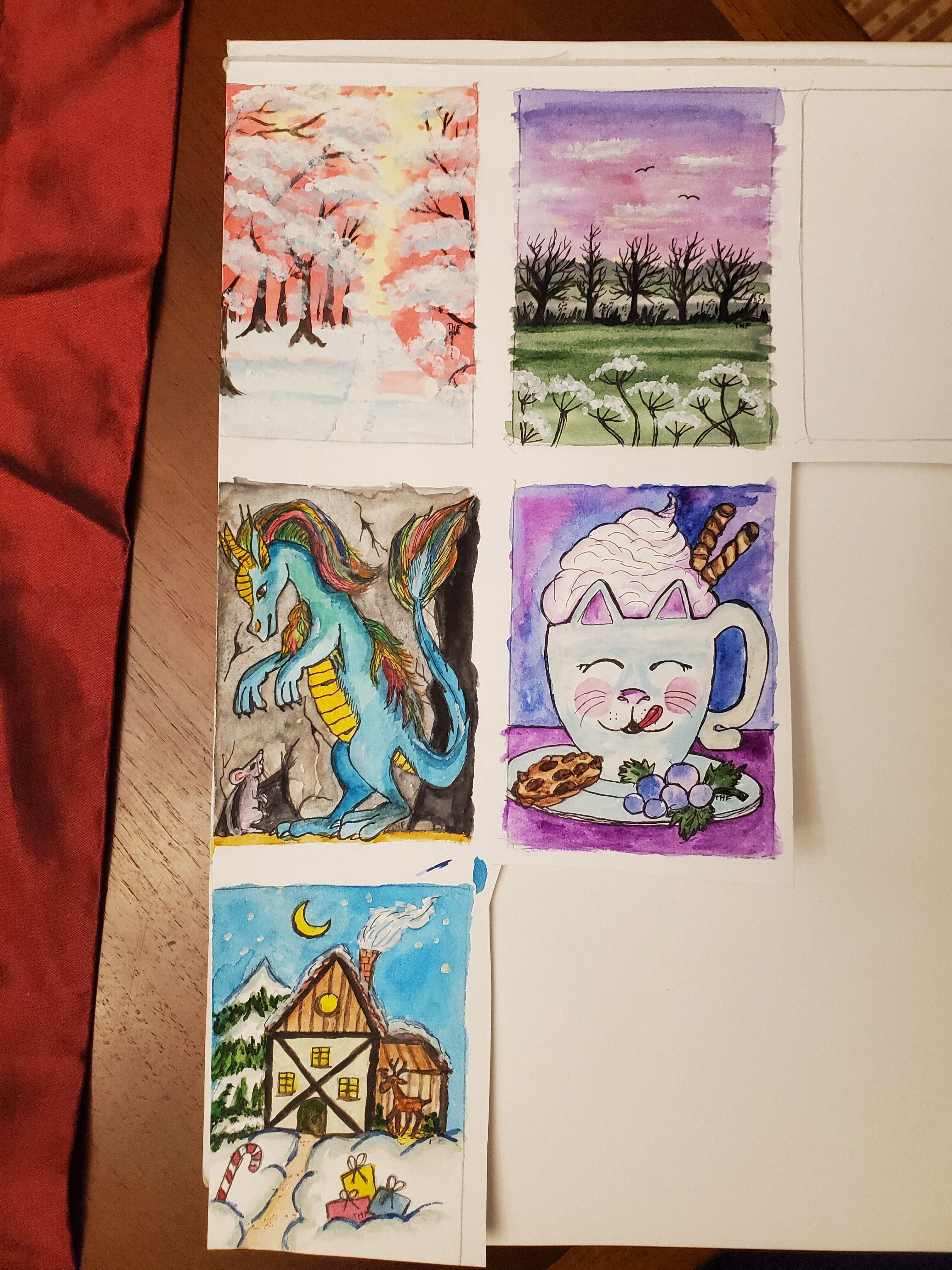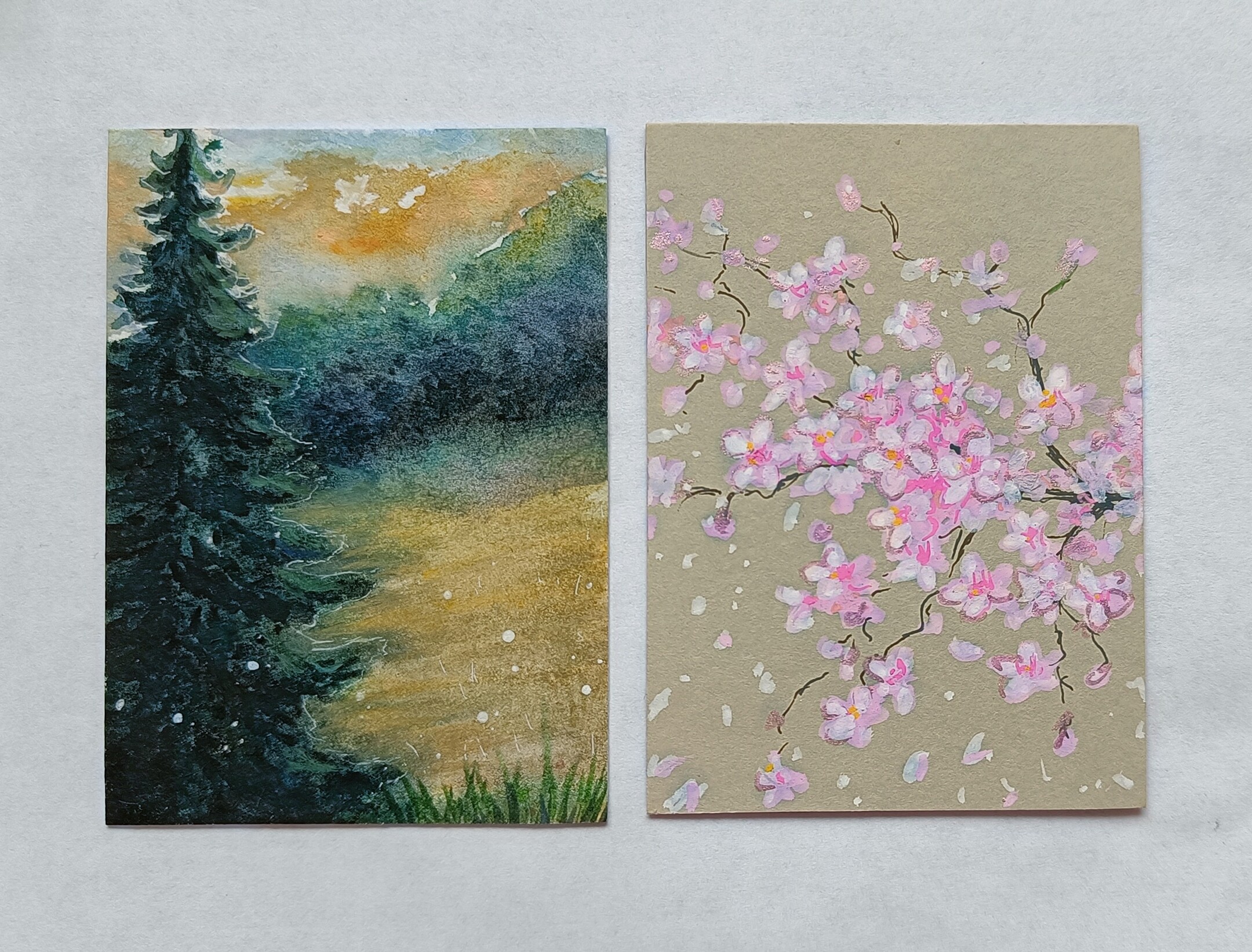 Für die Landschaft mit Aquarellfarben hab ich wieder ca. 50 Minuten gebraucht und für die Kirschblüten mit Posca Stiften 30 Minuten.