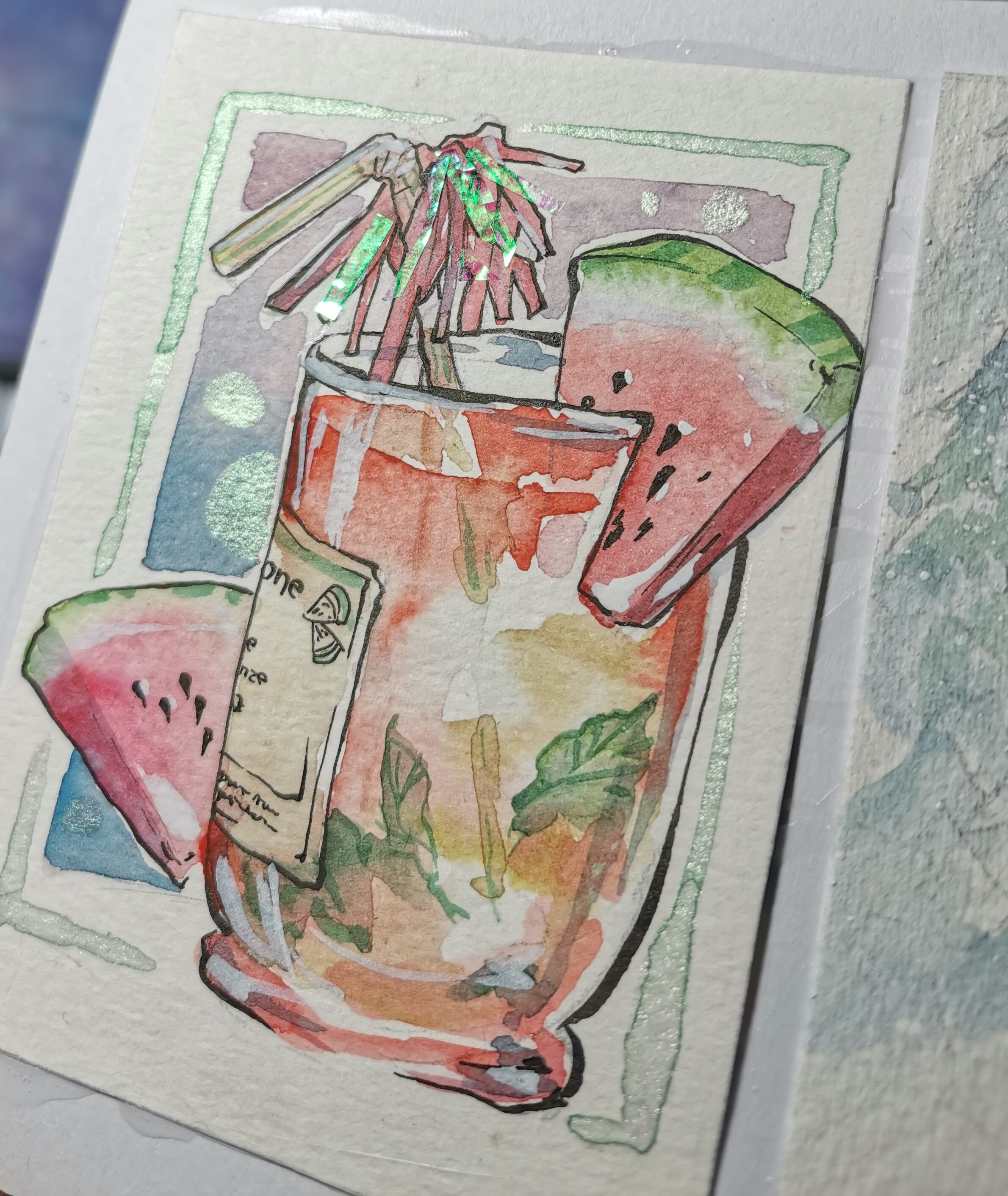 Fast vergessen, das Melonengetrank glitzert und hat Holowashitape.