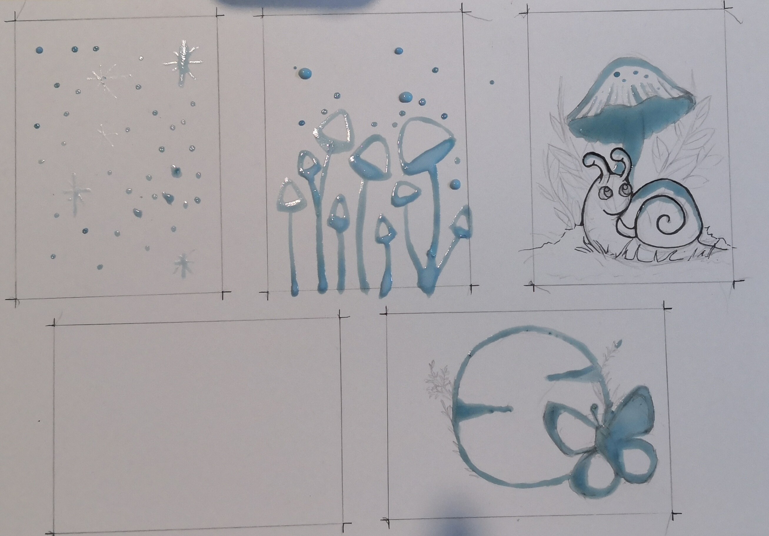 Ein Film, mehrere Trockenzeit später und ein paar ca. 10 bis 20 Minuten Malzeit pro Karte später (Außer oben links, das waren max. 5 Minuten) und meine Karten sehen jetzt so aus: