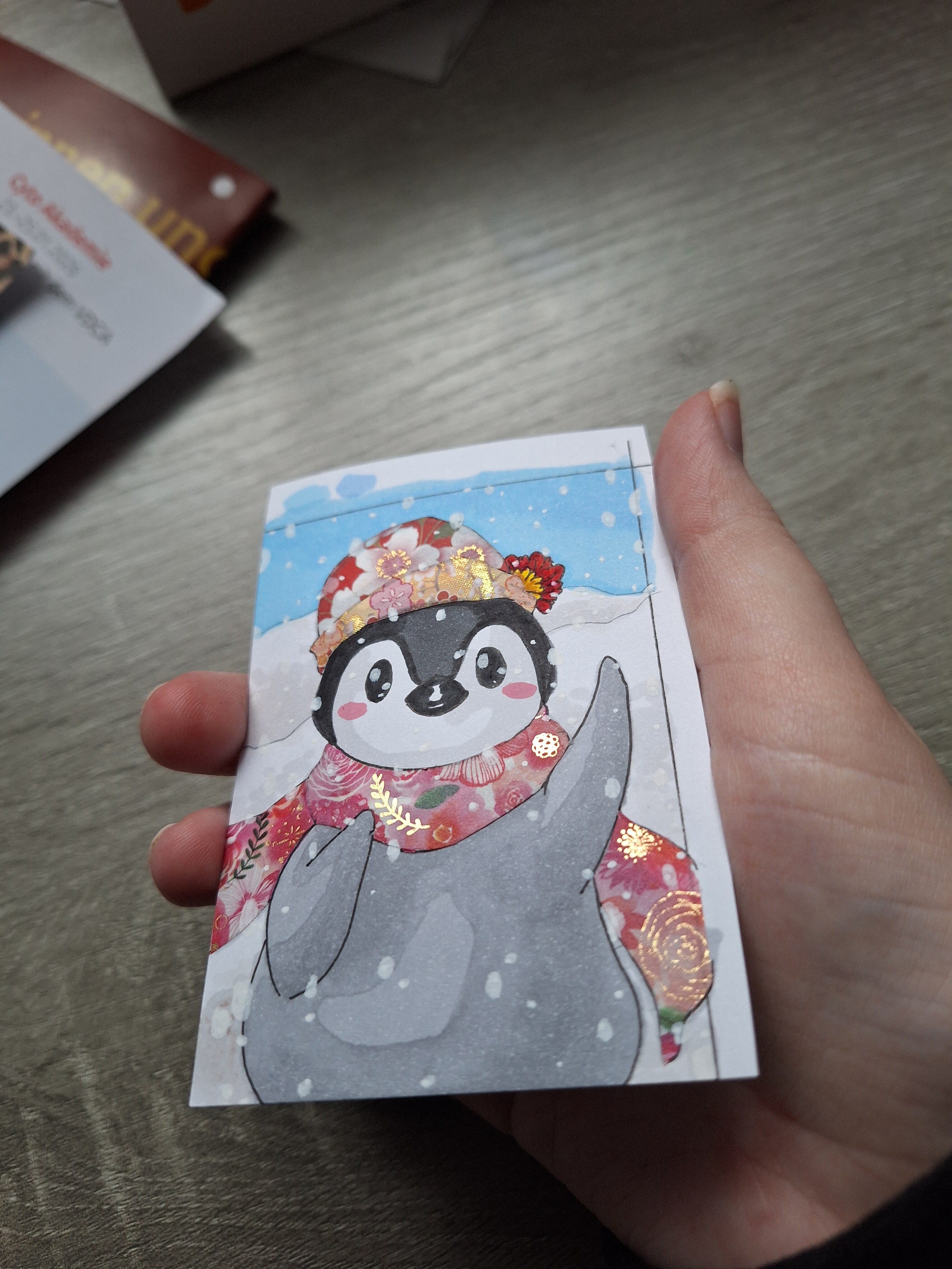 Omg, ist die süüüüß! Die Idee mit dem Schal aus Washi-Tape ist super und ich finde, die Farben ergänzen sich mega gut.