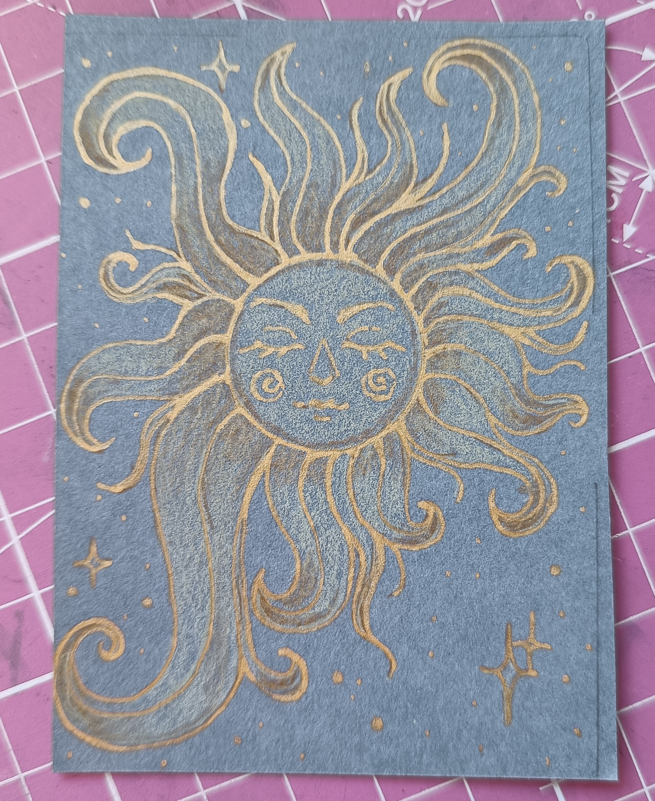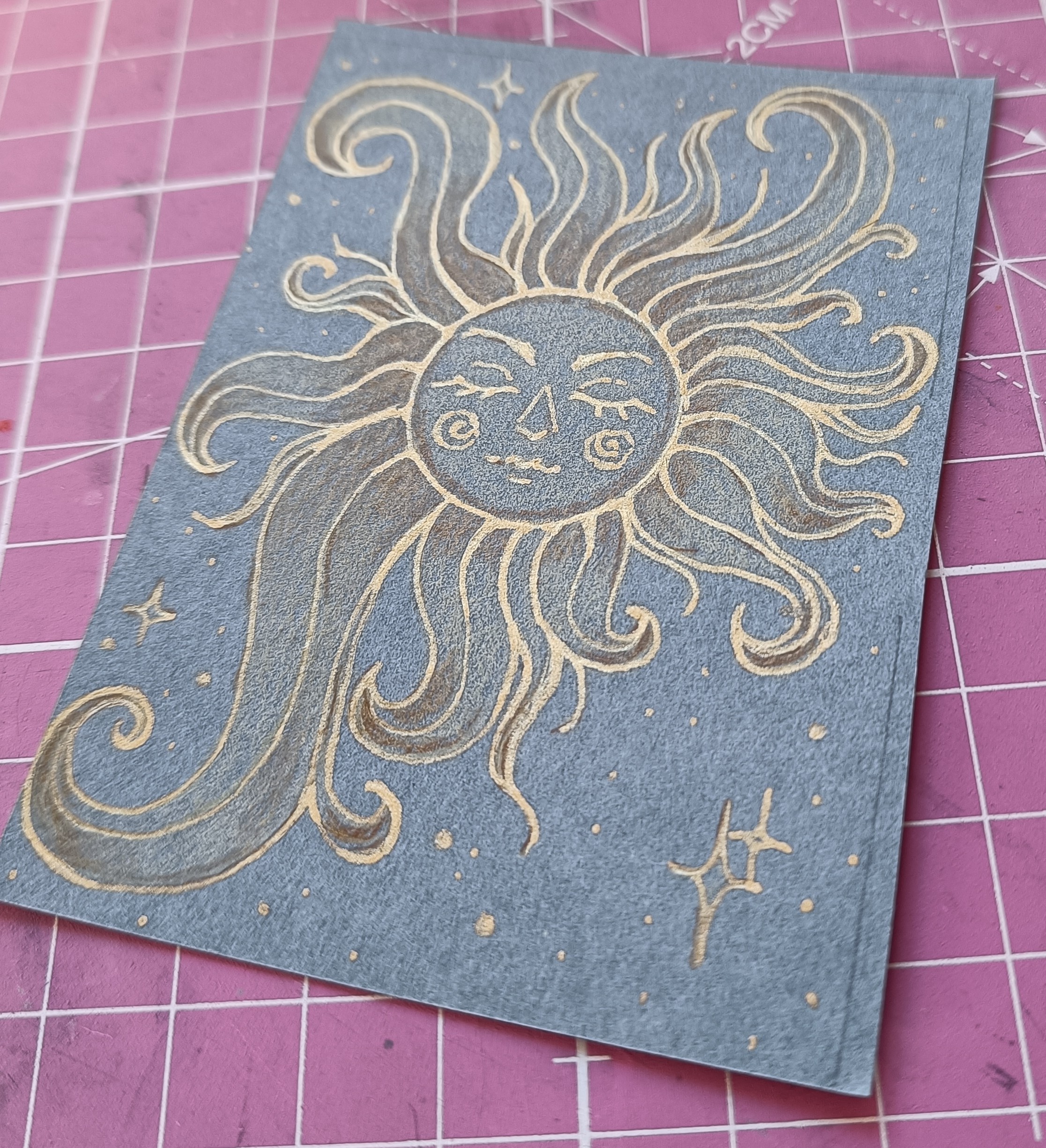 Karte 3 mit den Hasies… Musste ich zwei Mal zeichnen weil die Tusche der ersten Karte nicht wasserfest war obwohl eindeutig"wasserfest" auf dem Glas stand… <_<" und sind 5 Minuten Outlines und… who knows, 10-20 Minuten Farbe, ich habe nebenbei während dem Trocknen noch an einer anderen Karte gemalt.