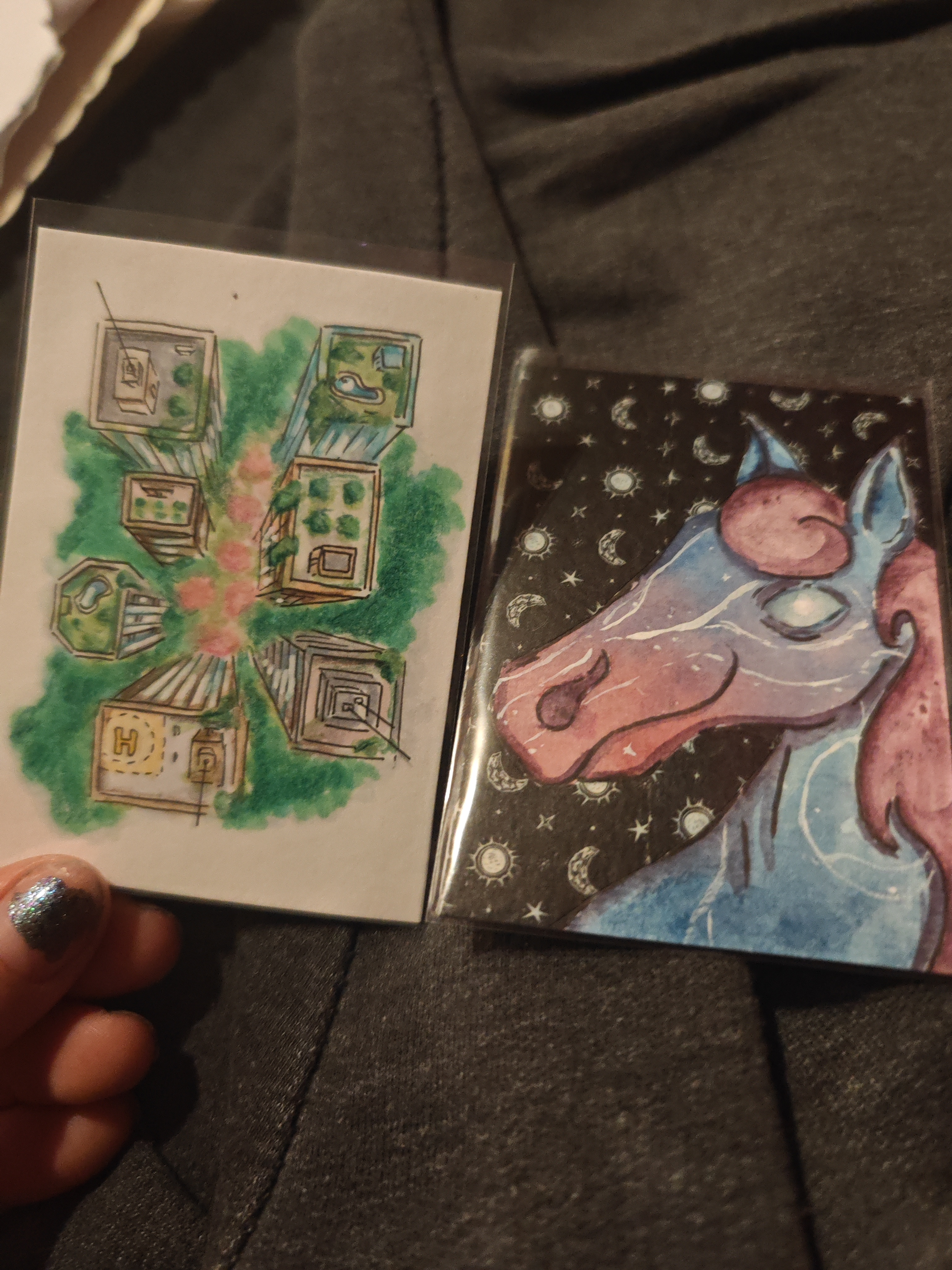 Sooo schön! Und so detailliert in seiner minimalistischen Art. Der Drache ist so niedlich. Und der Baum so lebendig mit den vielen fliegenden Blättern. Was er wohl von dem ahnungslosen Wanderer da unten möchte? Ich freue mich wirklich wahnsinnig über die Karte!