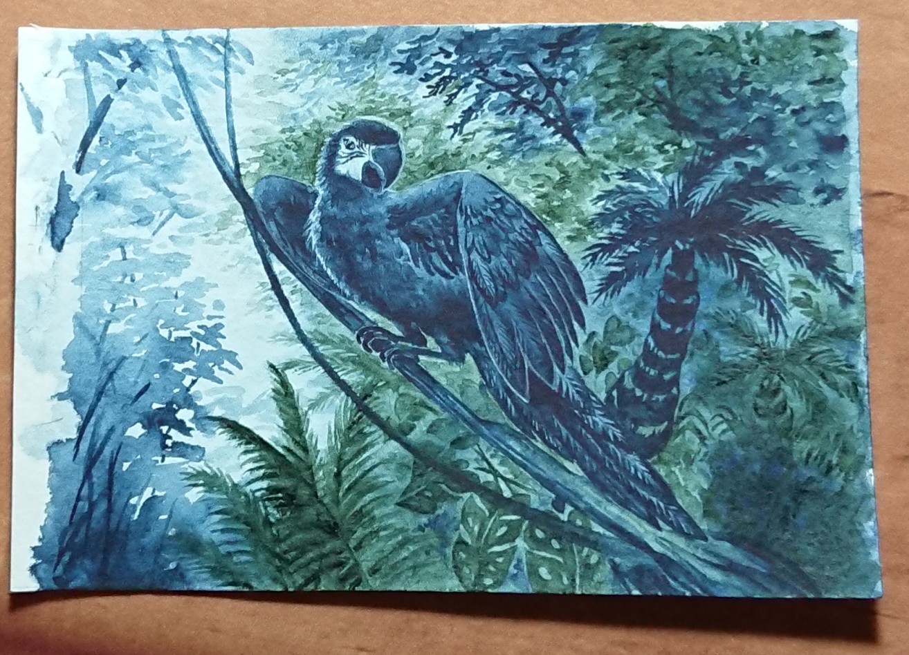 Ich habs jetzt doch schneller geschafft als erwartet meine letzte Karte fertig zu bekommen. Ein Albino Graupapagei.