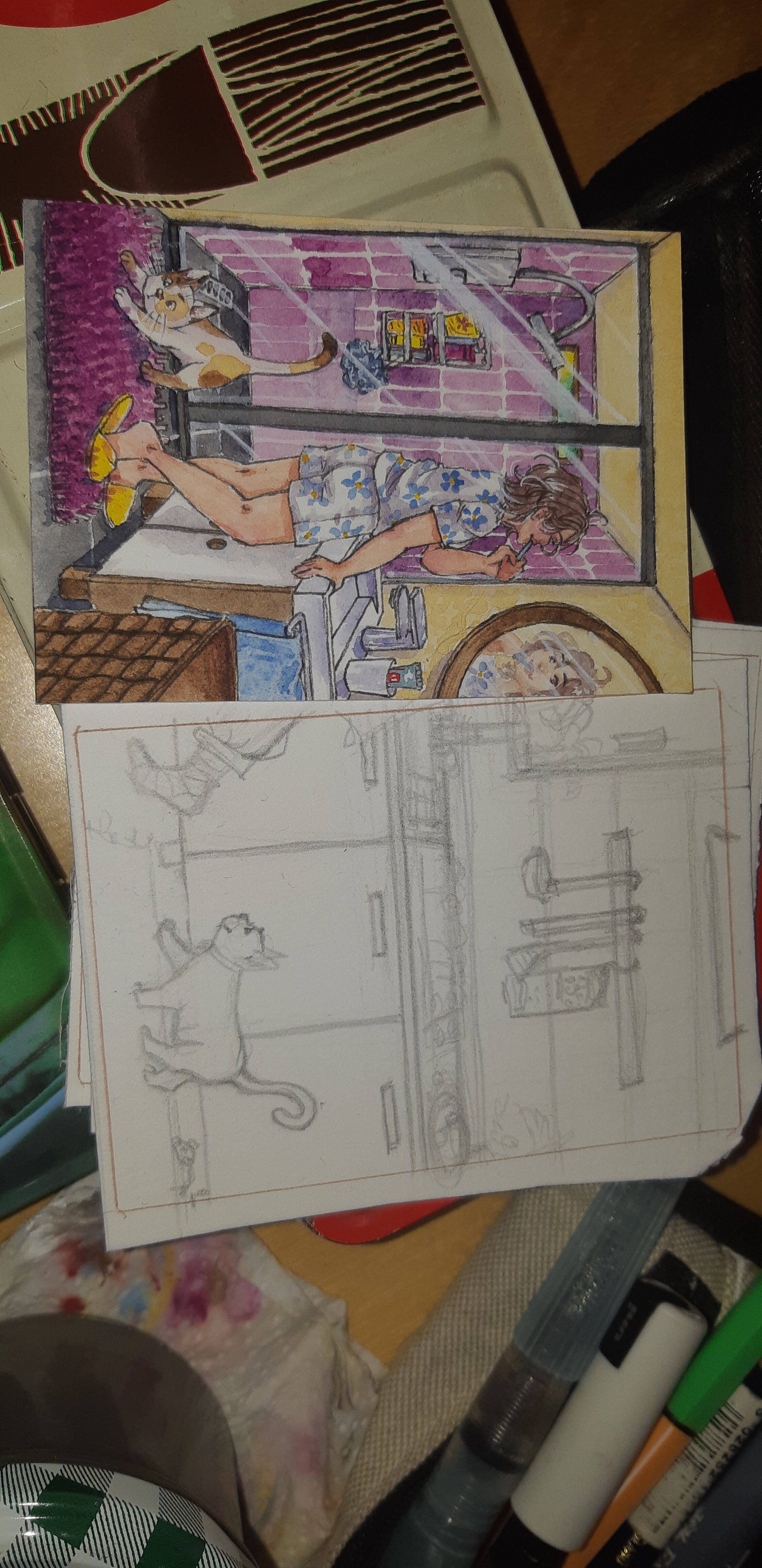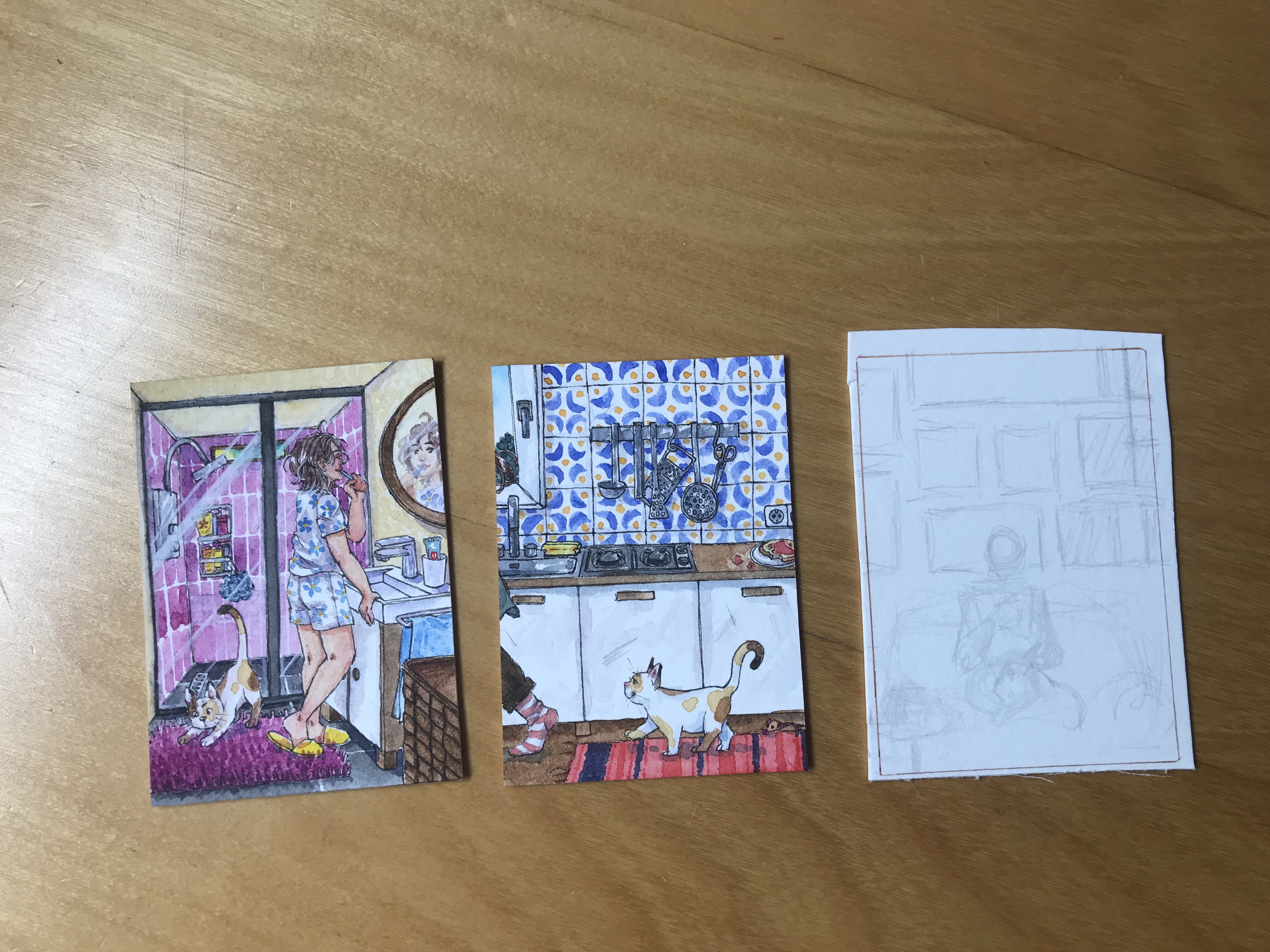 Ich habe Skizzen für Karte zwei und drei angefangen. Muss mich endlich an die Farbe setzen: