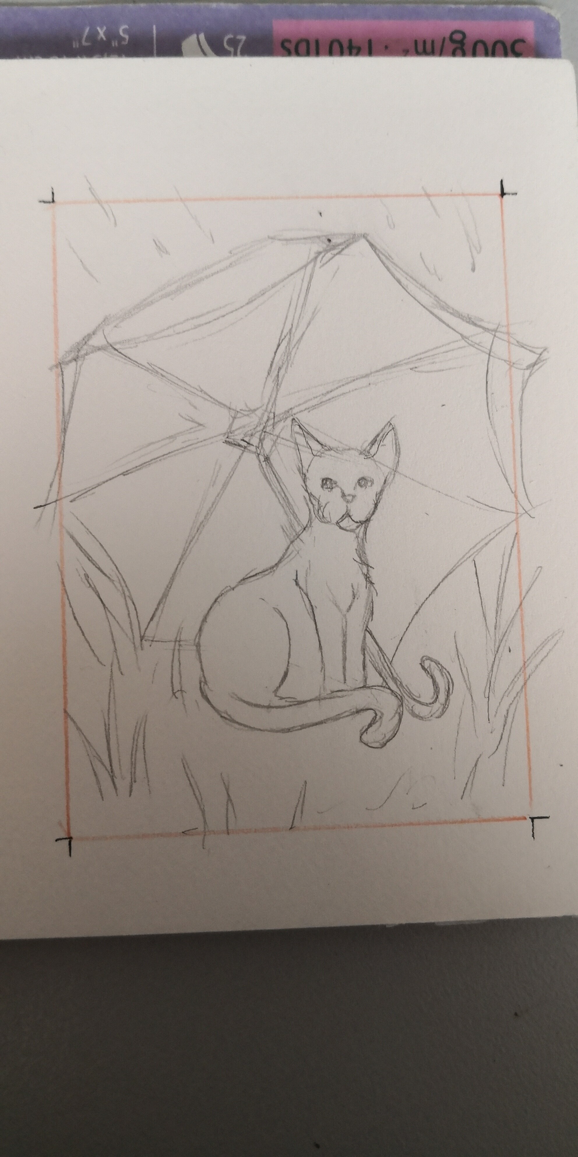 Katze mit Regenschirm. Wäre die in Ordnung? Ich habe bei meinem ersten Bild ja schon eine Katze als Motiv (und ich habe festgestellt, dass ich auf Gedeih und Verderb keine Regenschirme skizzieren kann.
