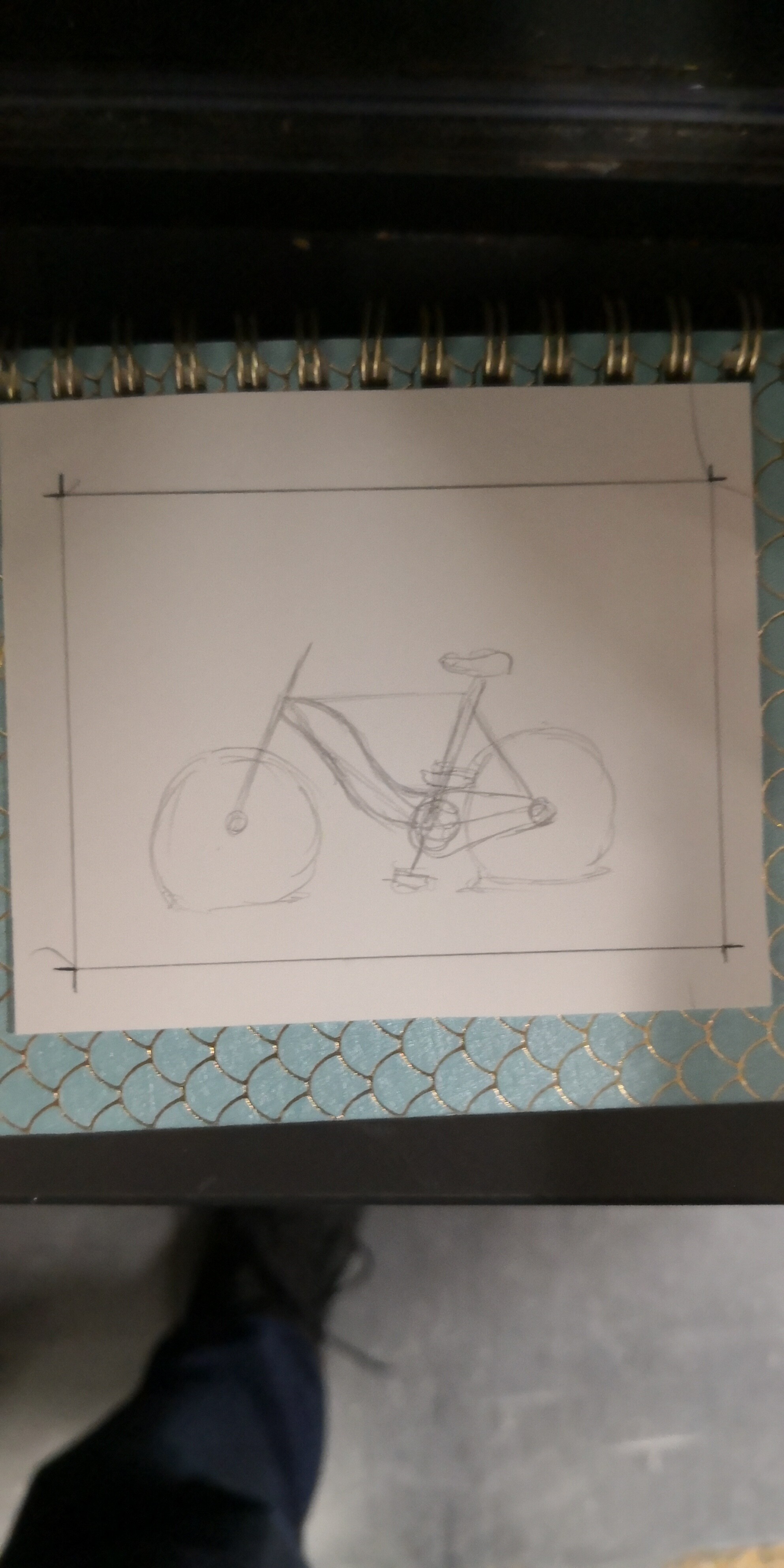 Und ja, der Lenker ist wonky, aber ich kann gerade nicht raus gehen zum Zeichnen und mein Aquarium spiegelt. Ich glaube, das Originalfahrrad damals war auch ein Hollandrad und kein Mounty/Tourer oder was auch da immer vor mir steht. Aber ein Hollandrad ist ja auch nur ein 0815 Standardrad mit tiefem Einstieg.