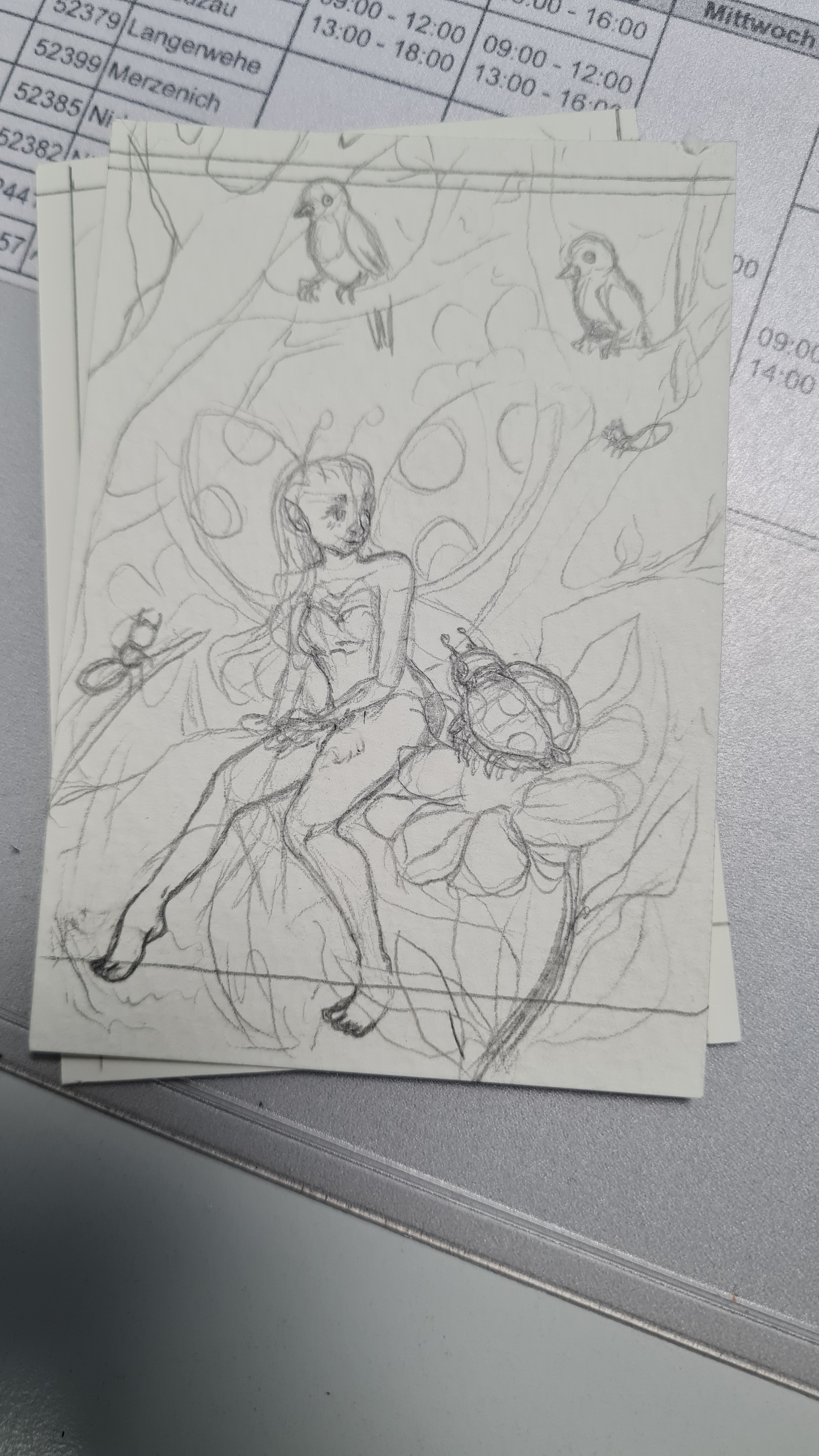 Hier aber schon mal 2 Skizzen die ich bei der Arbeit angefangen habe weil ich so motiviert bin los zu legen :)