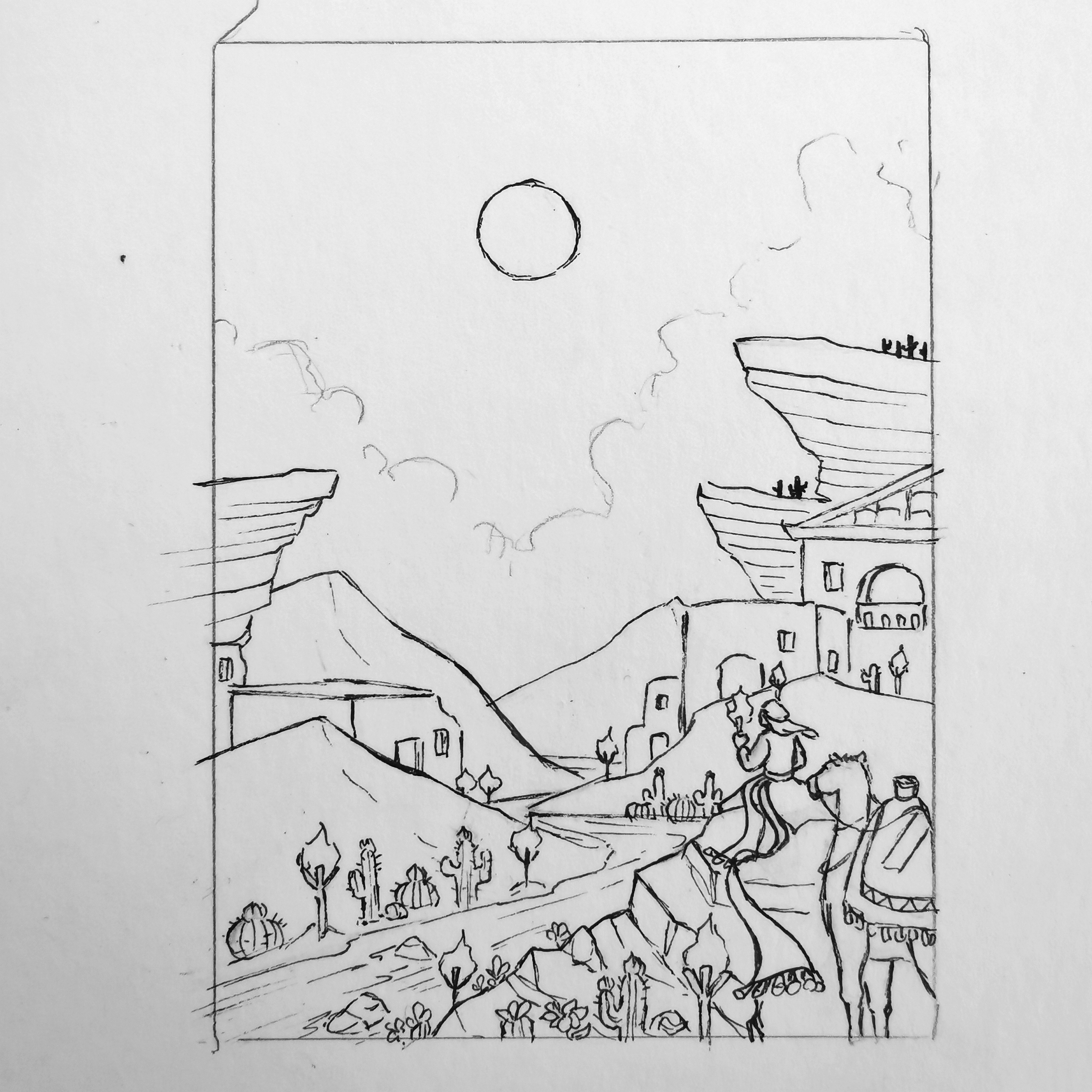 Sooo… Inspiriert von meinem Urlaub habe ich eine wüstenstadt gemalt.