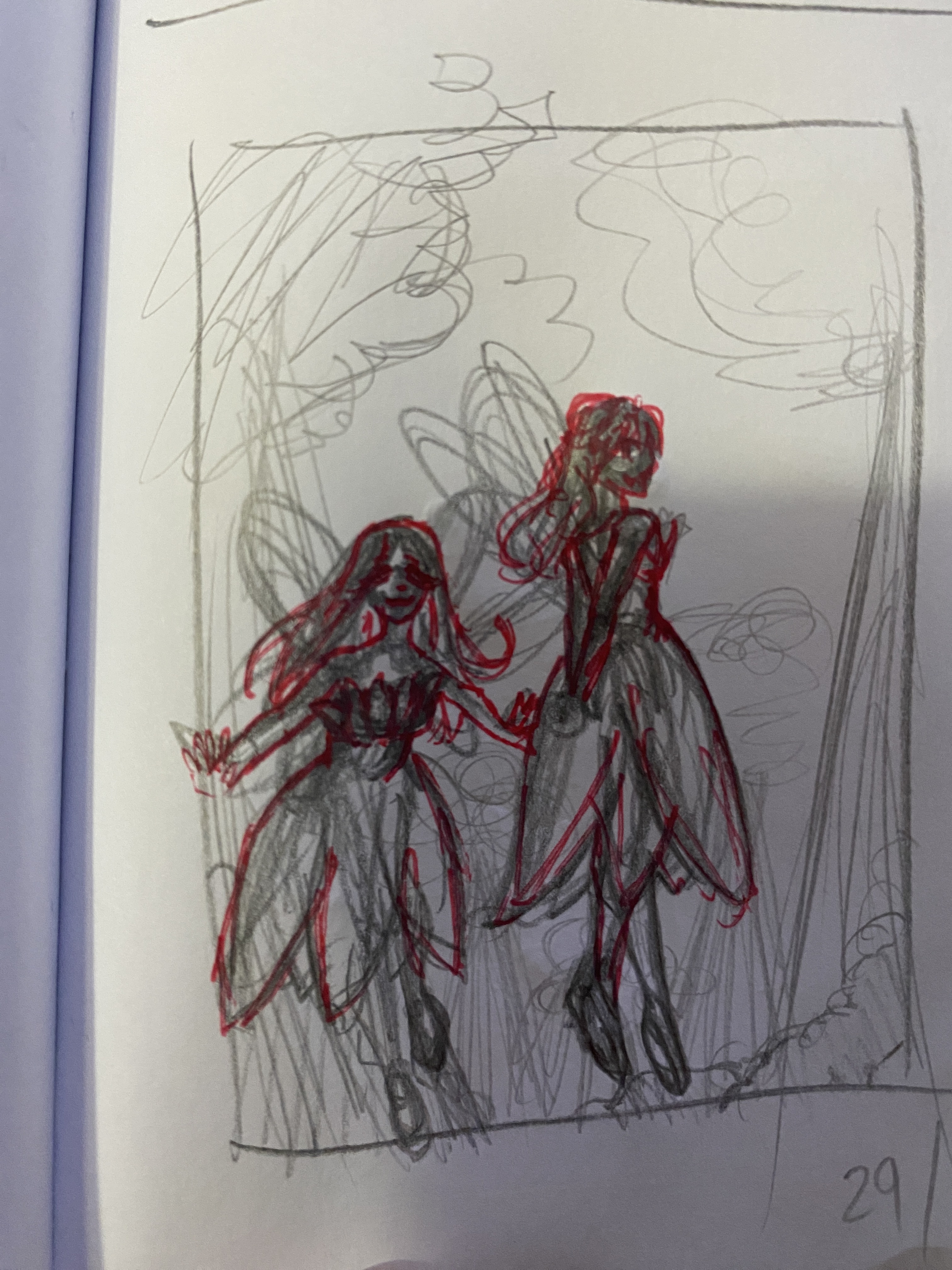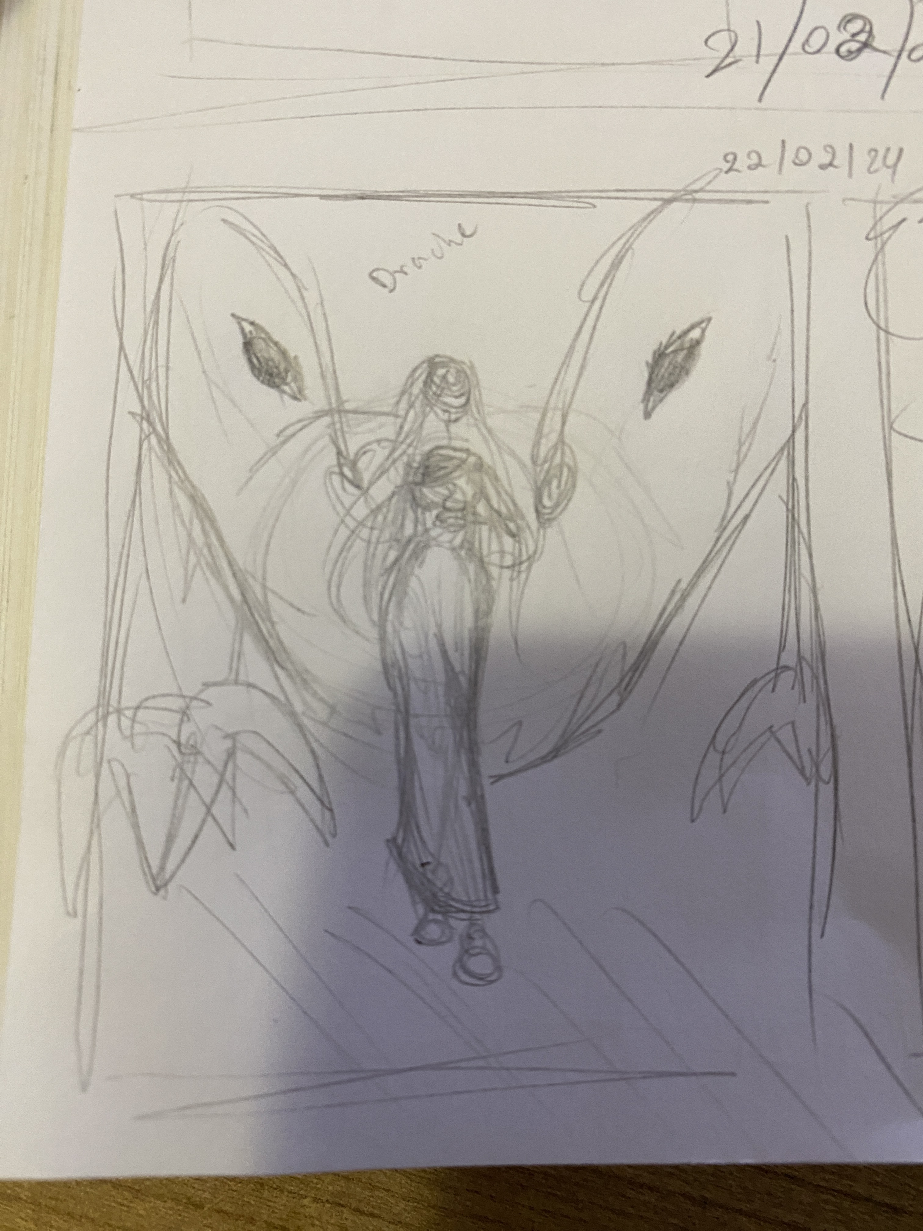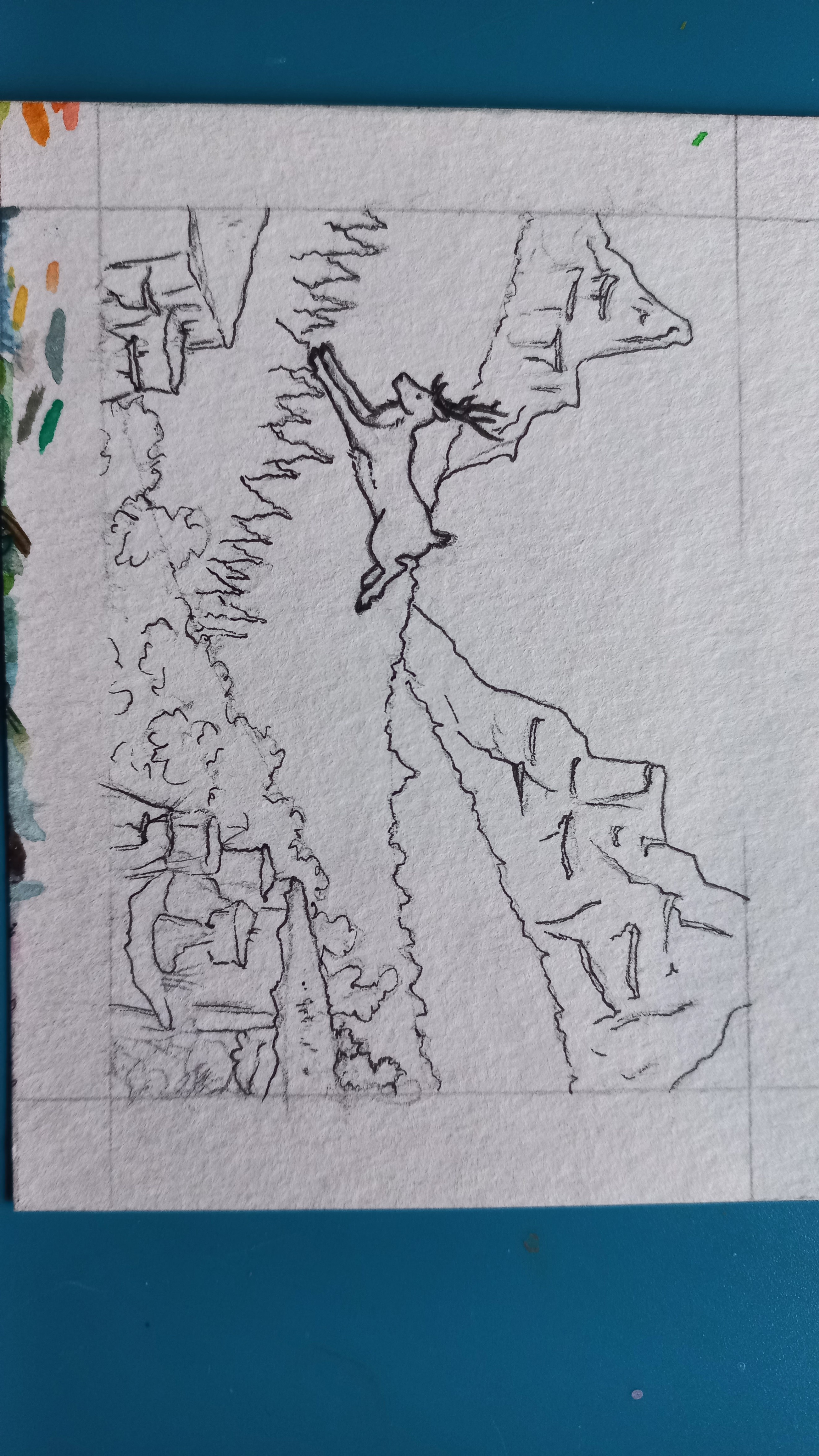Noch eine Skizze. Die Perspektive soll leicht von oben sein. Ich hoffe ich bekomm das mit der Colo so hin, dass es auch besser erkennbar ist. Oder hat jemand einen Tipp für mich? 🫣