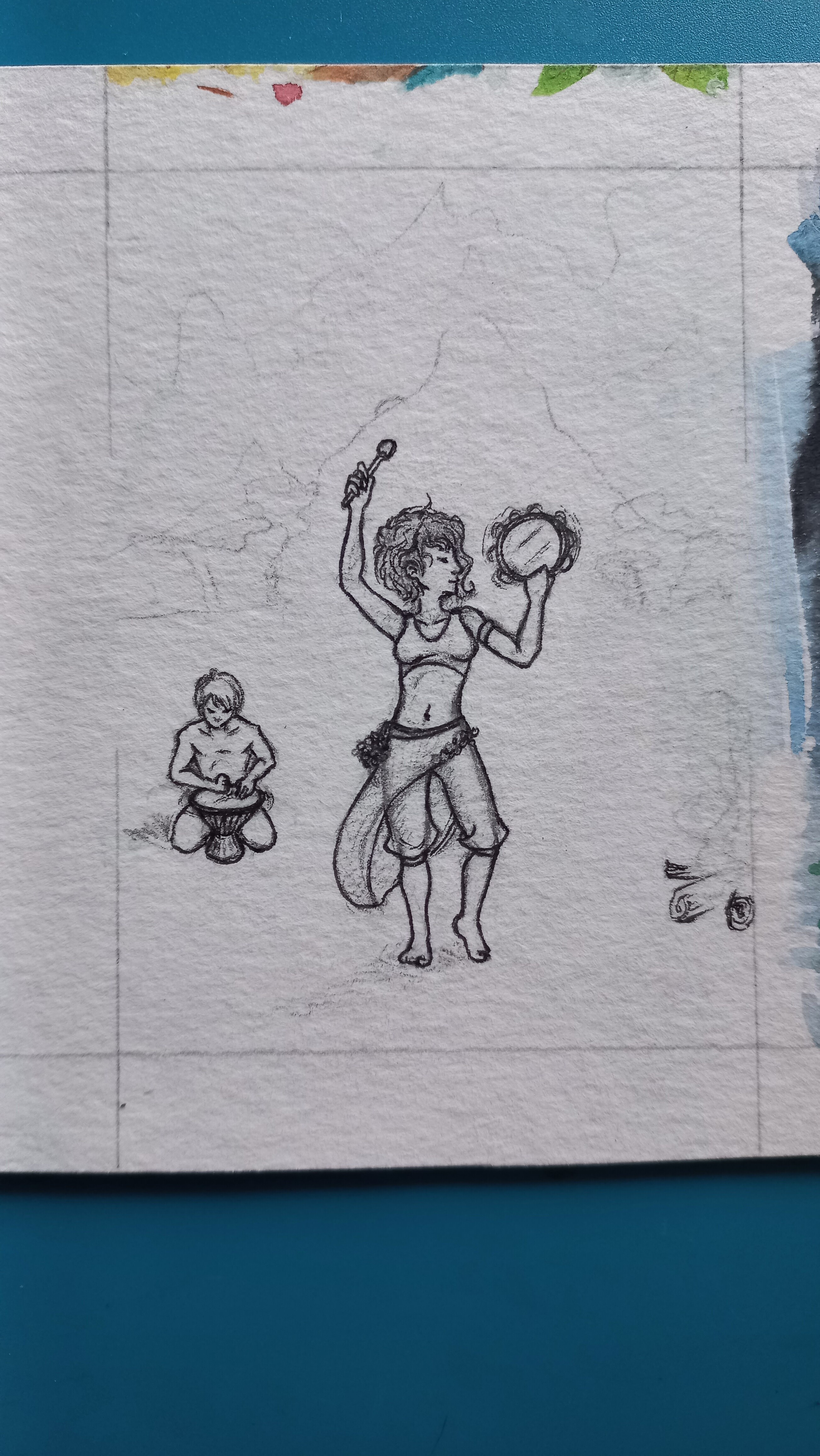 Heute hatte ich Zeit für die Karten und die Tänzerin hat einen Trommler und Lines erhalten, und eine weitere Karte hat ebenfalls schon Lines. :)