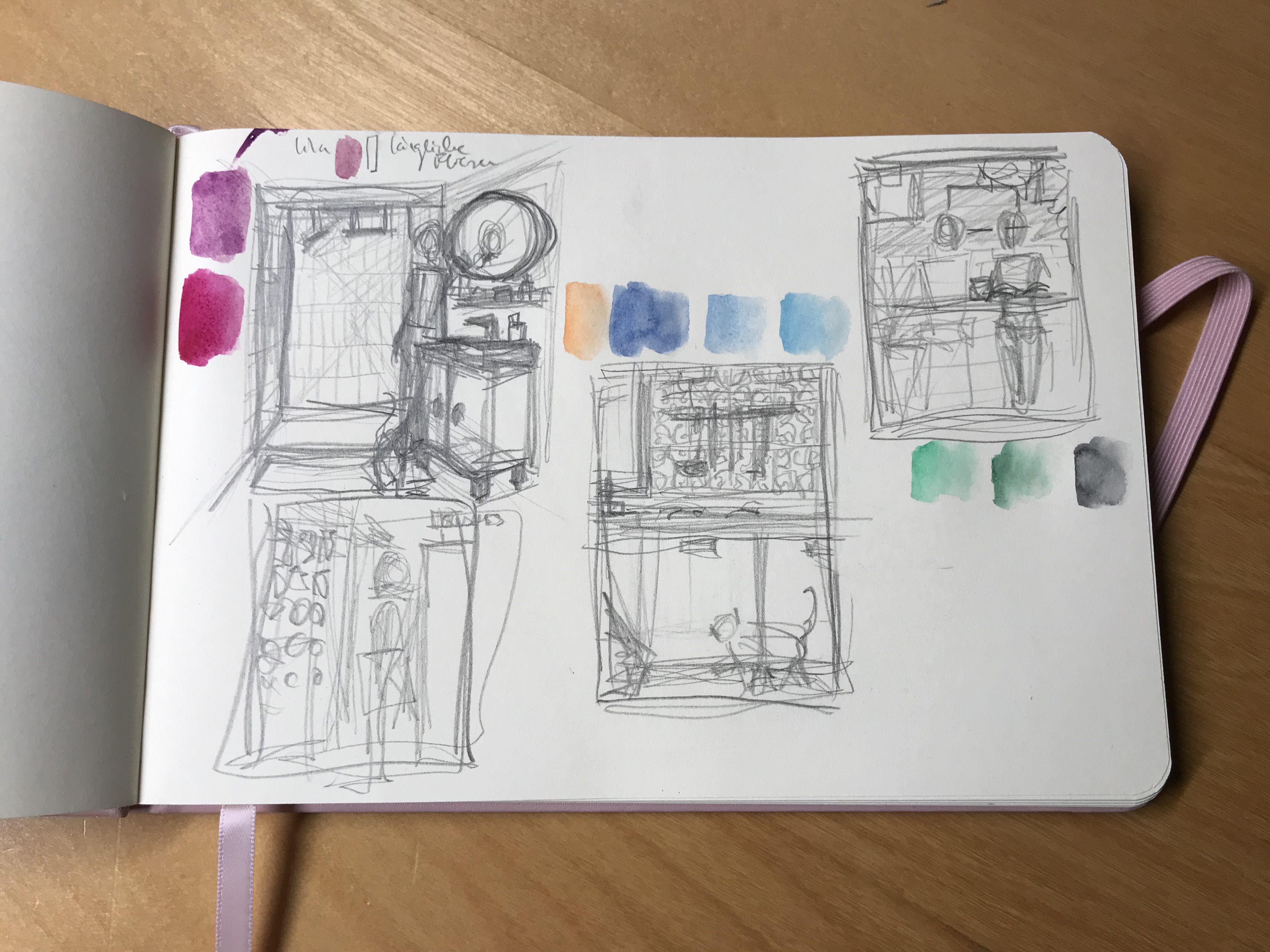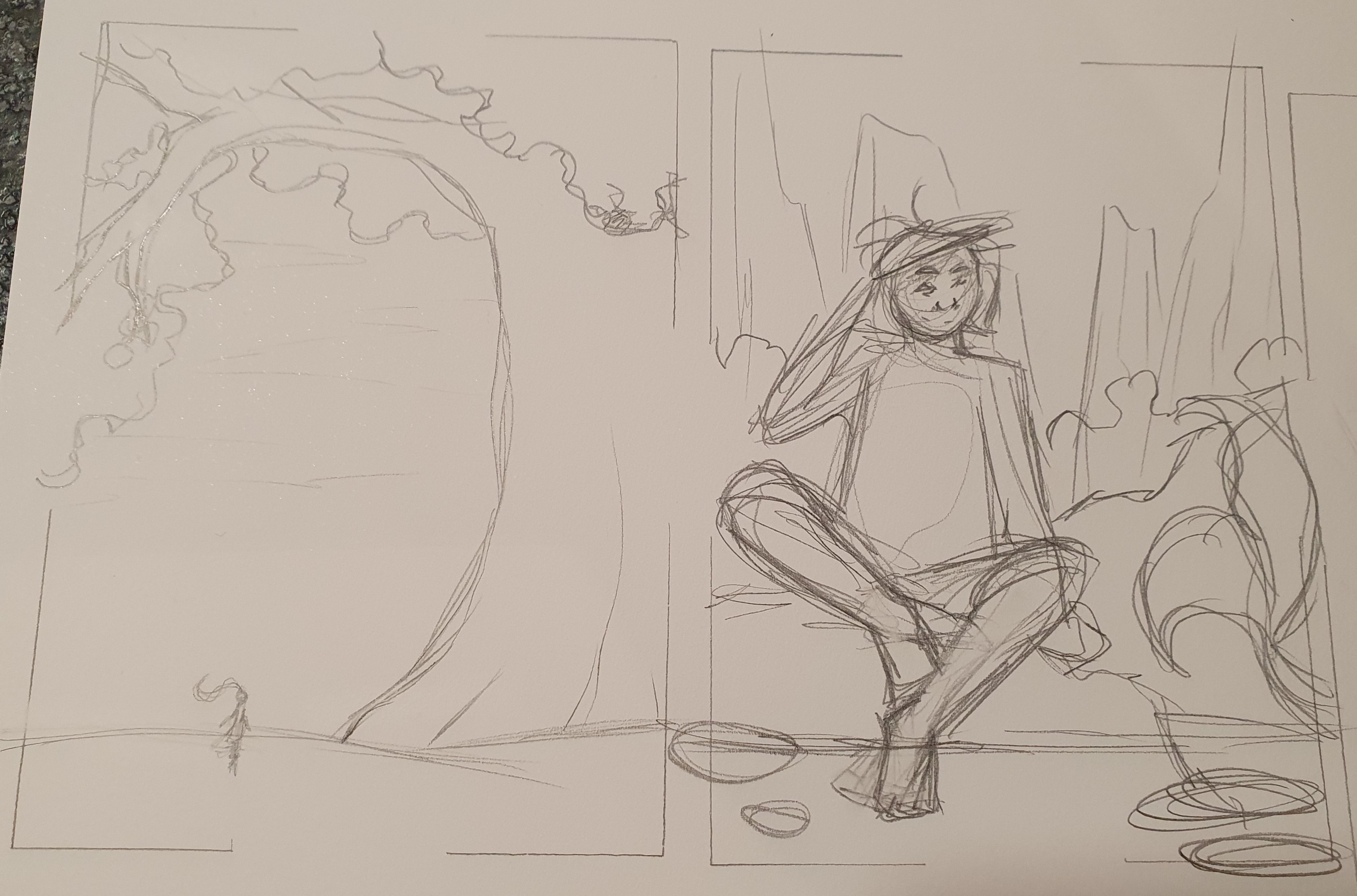 Das ist sozusagen mein Plan. Ich möchte verschiedene Zeiten/Orte einer Person malen. Im Moment versuche ich noch die Skizzen/Lines aufs Papier zu bekommen… da bin ich noch nicht ganz zufrieden, aber es ist am werden :-)