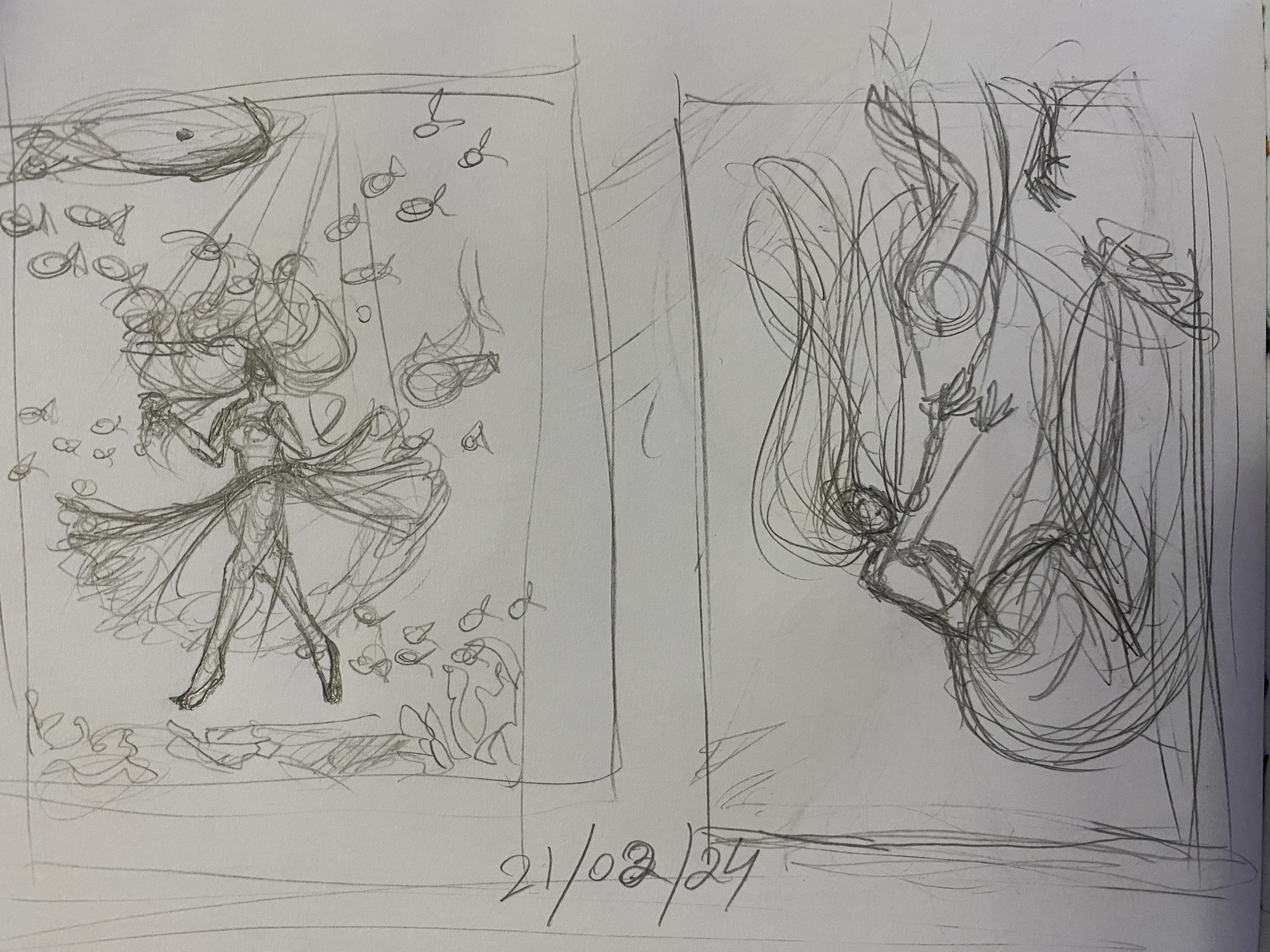 Hatte die Farben schon vor einer Weile geswatcht, aber habe bisher noch nicht all zu sehr rumprobiert, was das Mischen angeht. Viele der Pigmente habe ich so oder so ähnlich tatsächlich in meiner Standardpalette c: Ansonsten habe ich bisher erstmal ein paar grobe Skizzen gemacht: