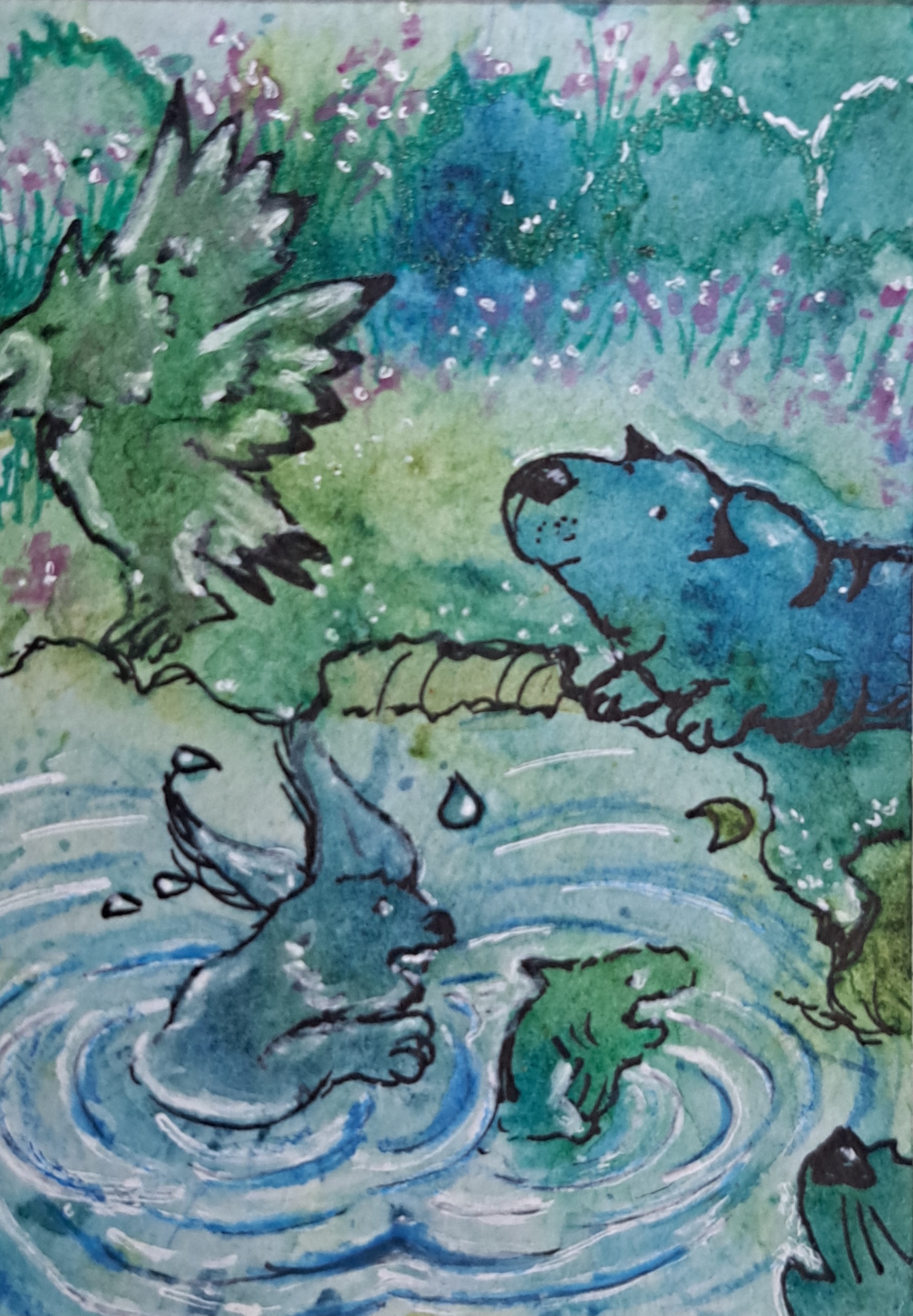 Ui, so fleißig schon :D Die plantschenden Tiere im Wasser und die Vögel finde ich besonders gelungen. Dort kann man sehr schön verfolgen, was aus den Splashes geworden ist :) Beim Chamäleon finde ich es hingegen schwieriger, den Splash außer der Farbgebung im Motiv wiederzuerkennen ':) Die anderen Karten würde ich so auf jeden Fall zulassen^^