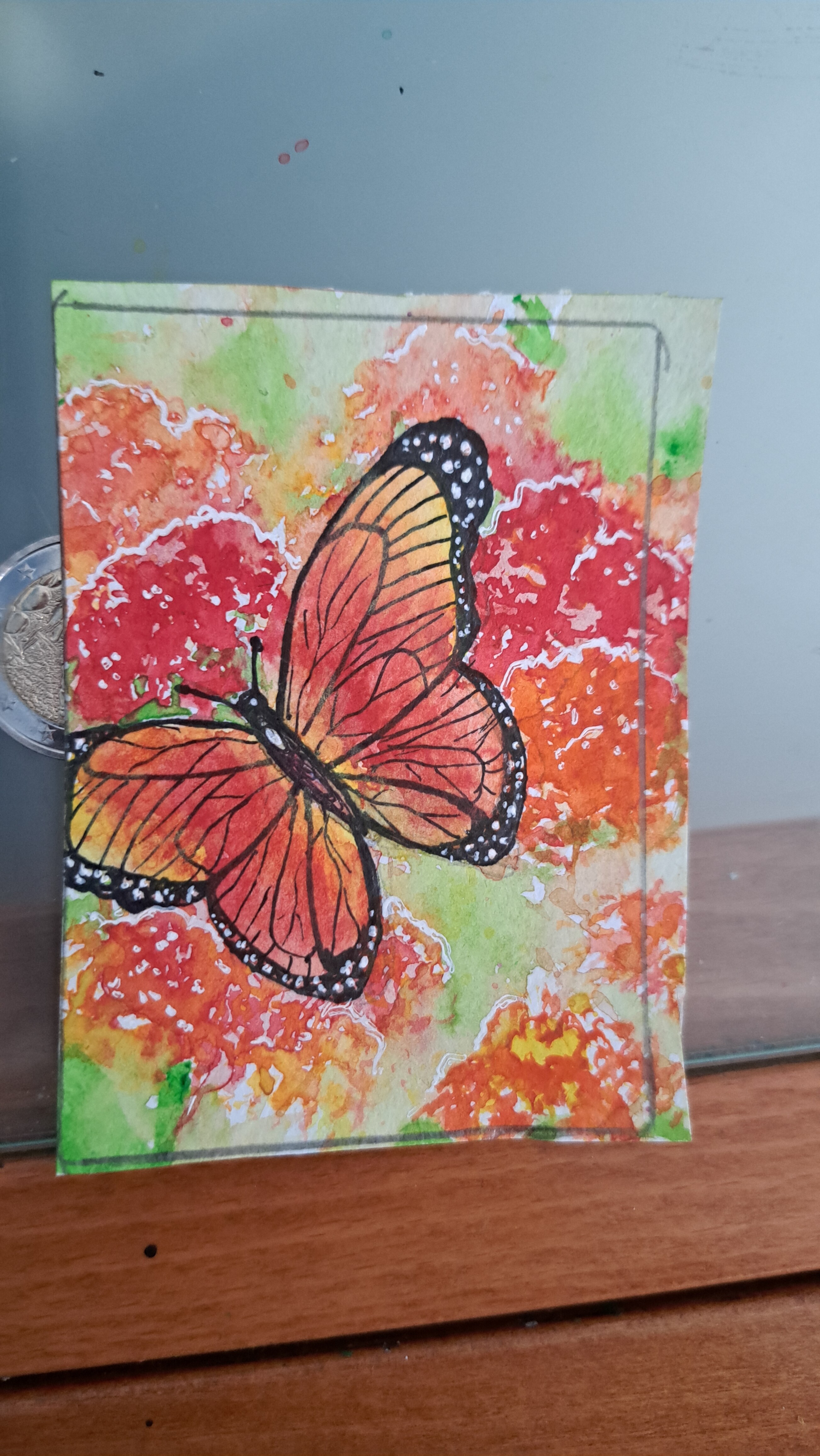 Heute noch etwas weißes Gouache drauf gesprenkelt, jetzt trocknet es. :3