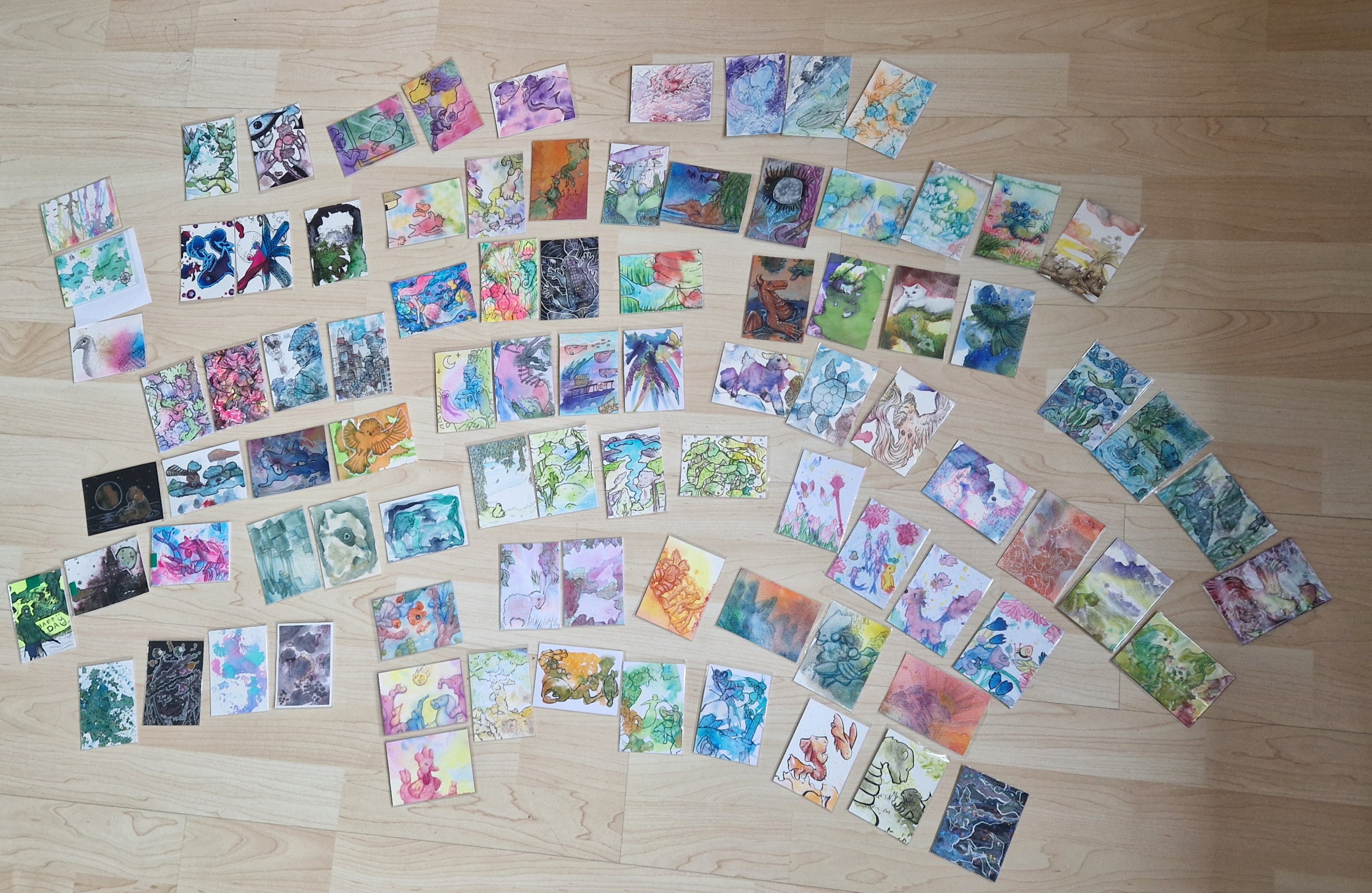 Es sind wirklich so viele wunderbare Beiträge zusammengekommen :D (Wundert euch nicht über die krumme Anordnung xD Ich hatte die Karten quasi im Halbkreis um mich herum ausgelegt und dann fürs Foto etwas komprimiert ^^)