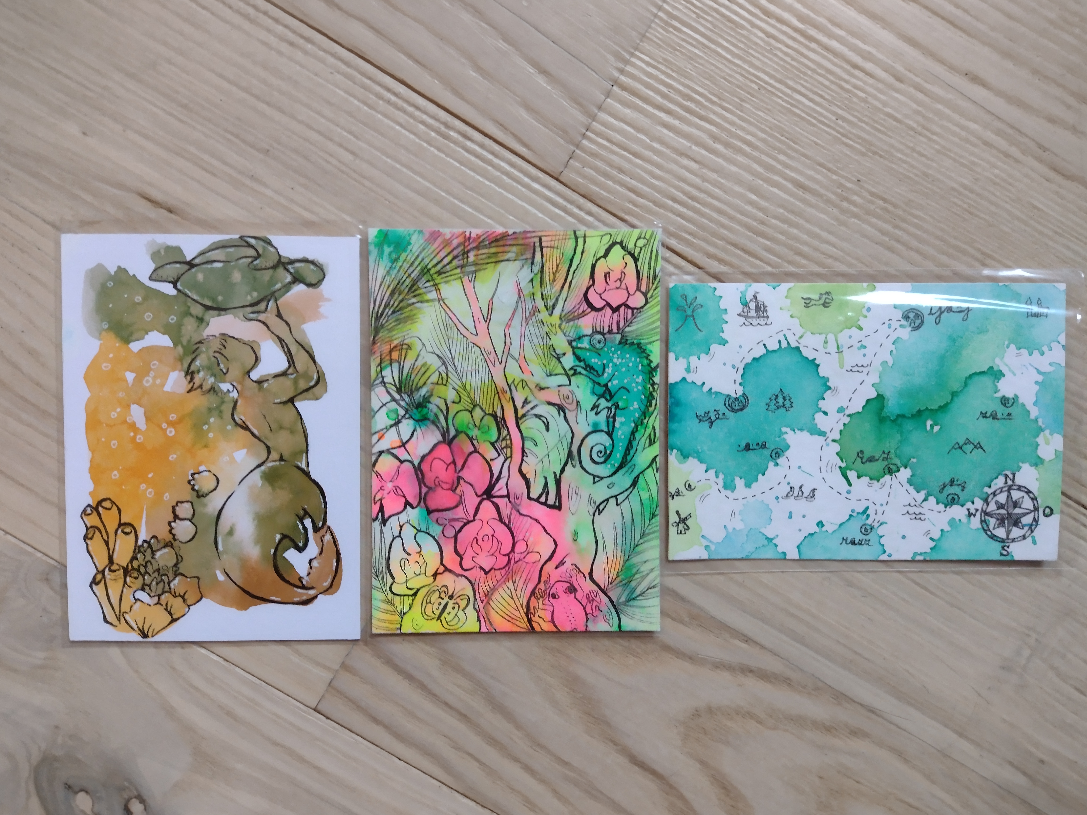 Was man auf dem Foto gar nicht so sieht ist, dass die Karten alle farblich super gut zusammenpassen - das Thema hätte auch Pastellregenbogentiere sein können oder so. Es ist herrlich