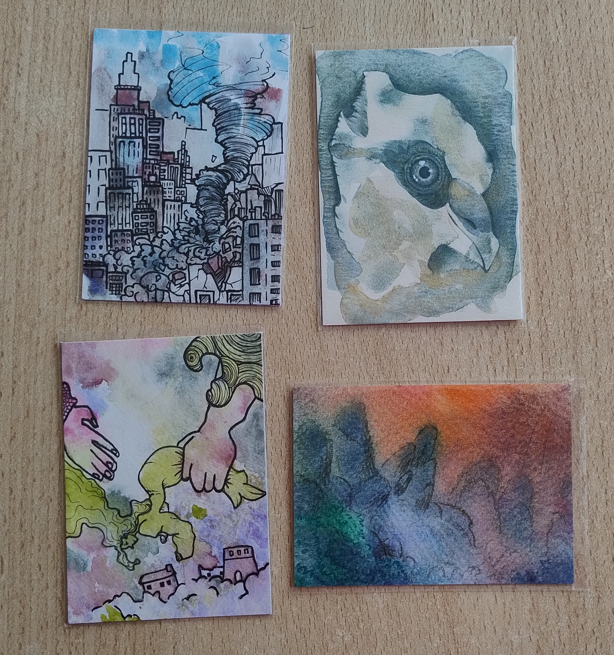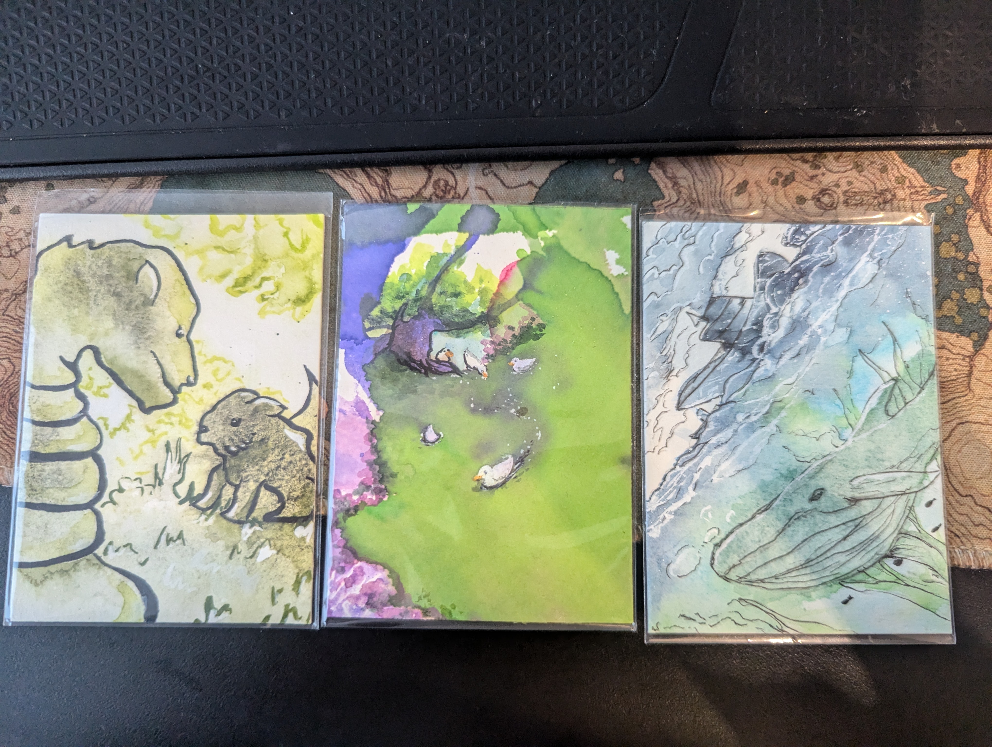 Meine Karten sind auch da! Ich war auf dem Sprung und habe nur die Vorderseiten abfotografiert, deswegen muss ich gleich nochmal in die Galerie schauen wie sie hießen, ich editiere es dann hier rein