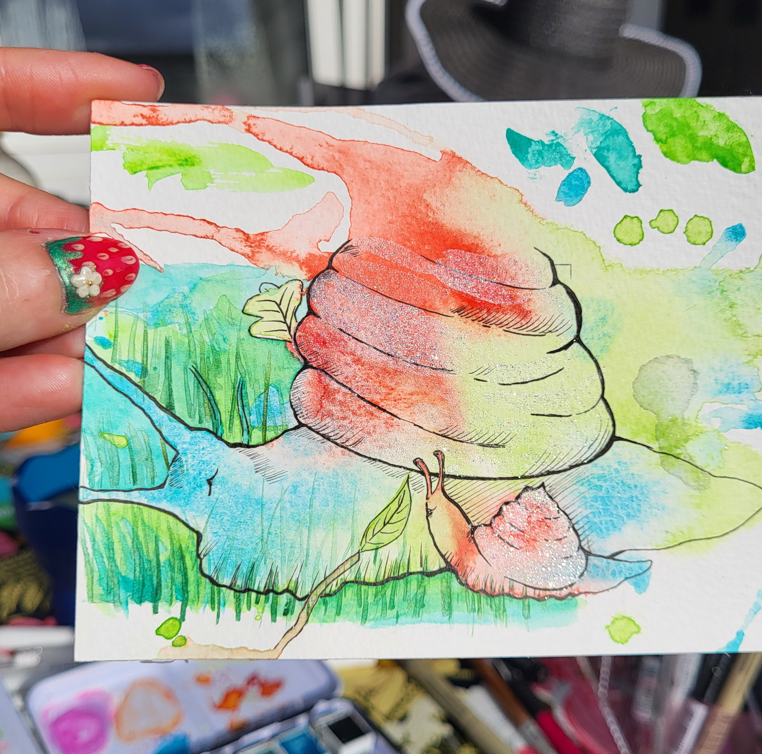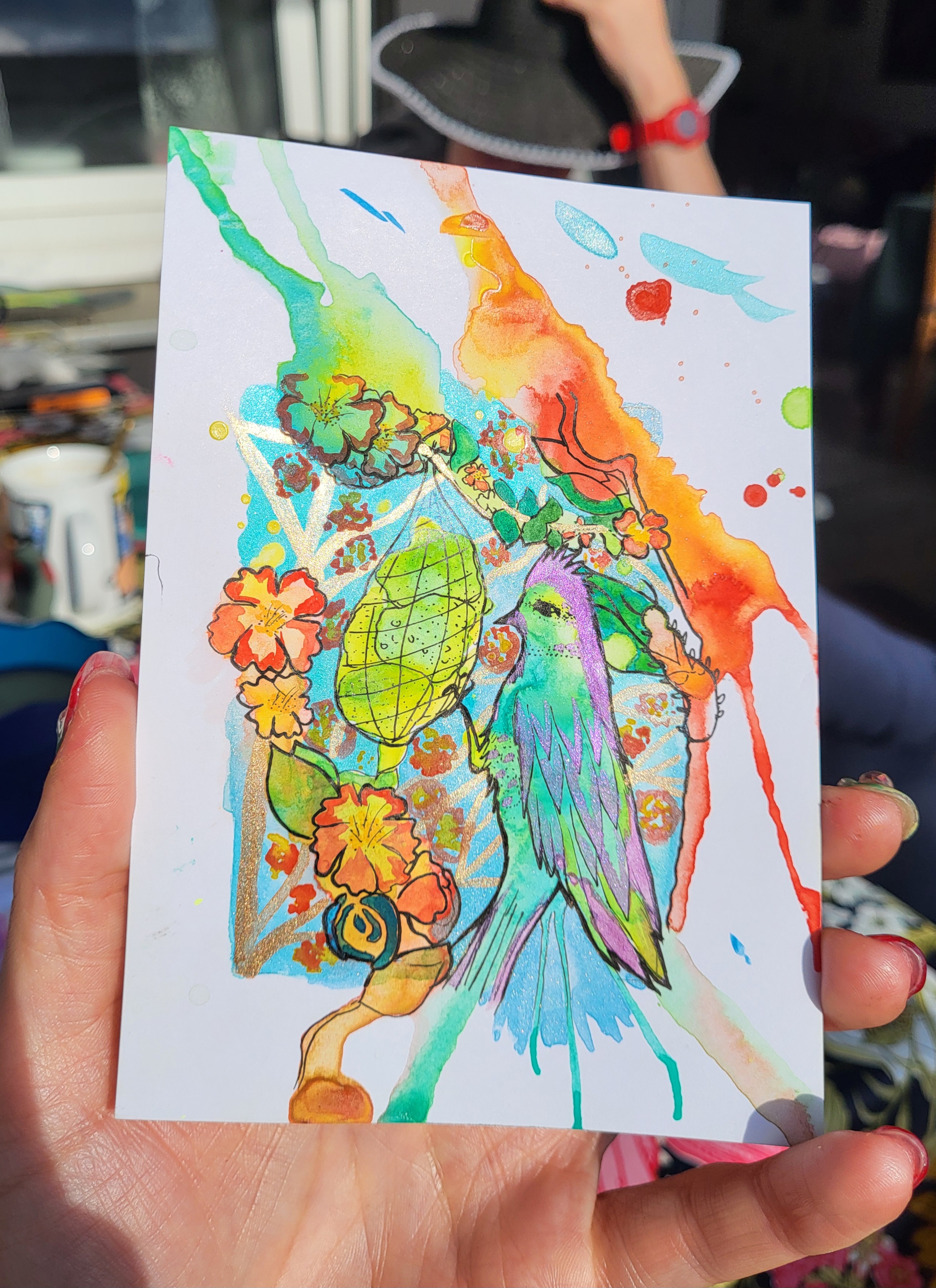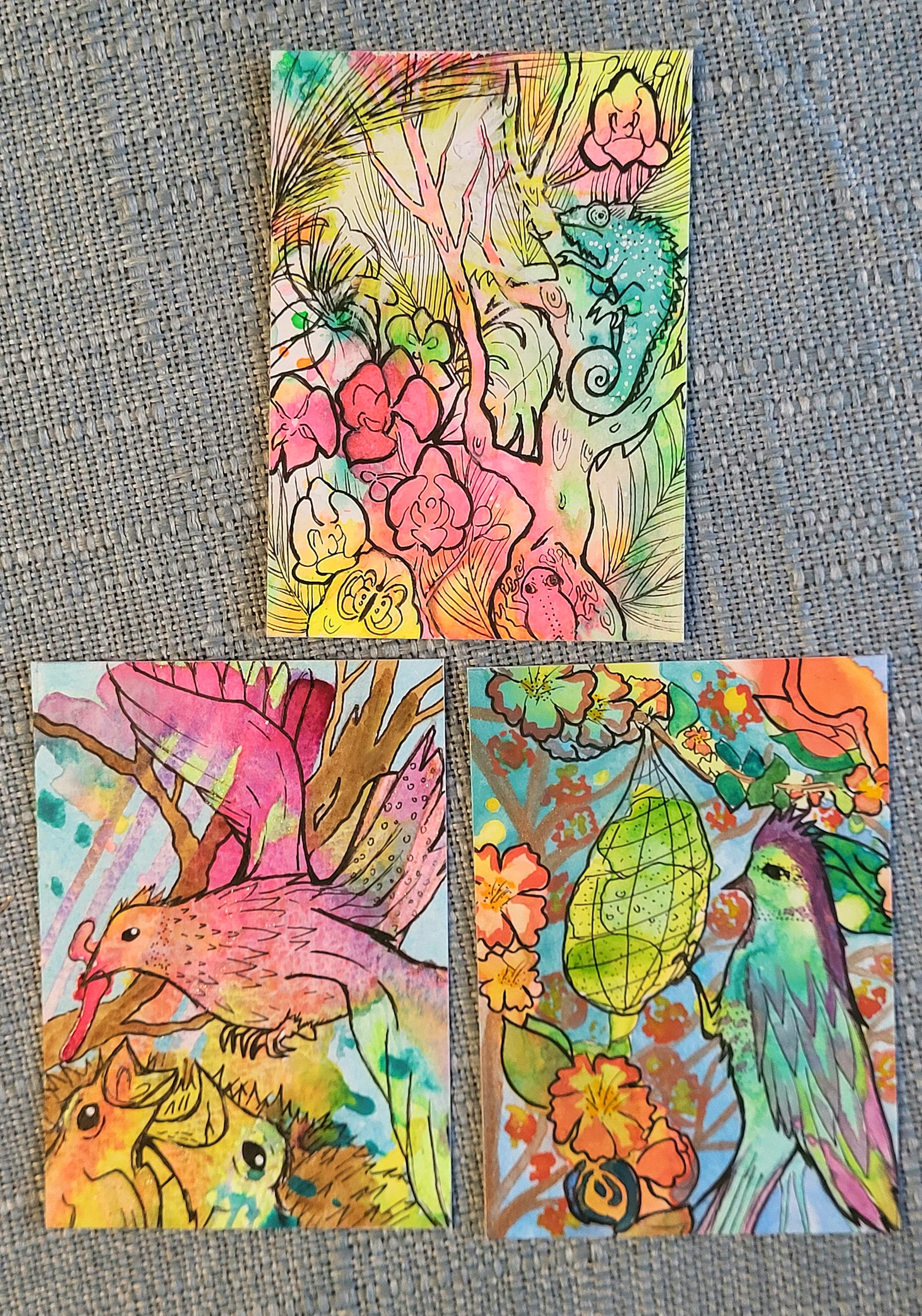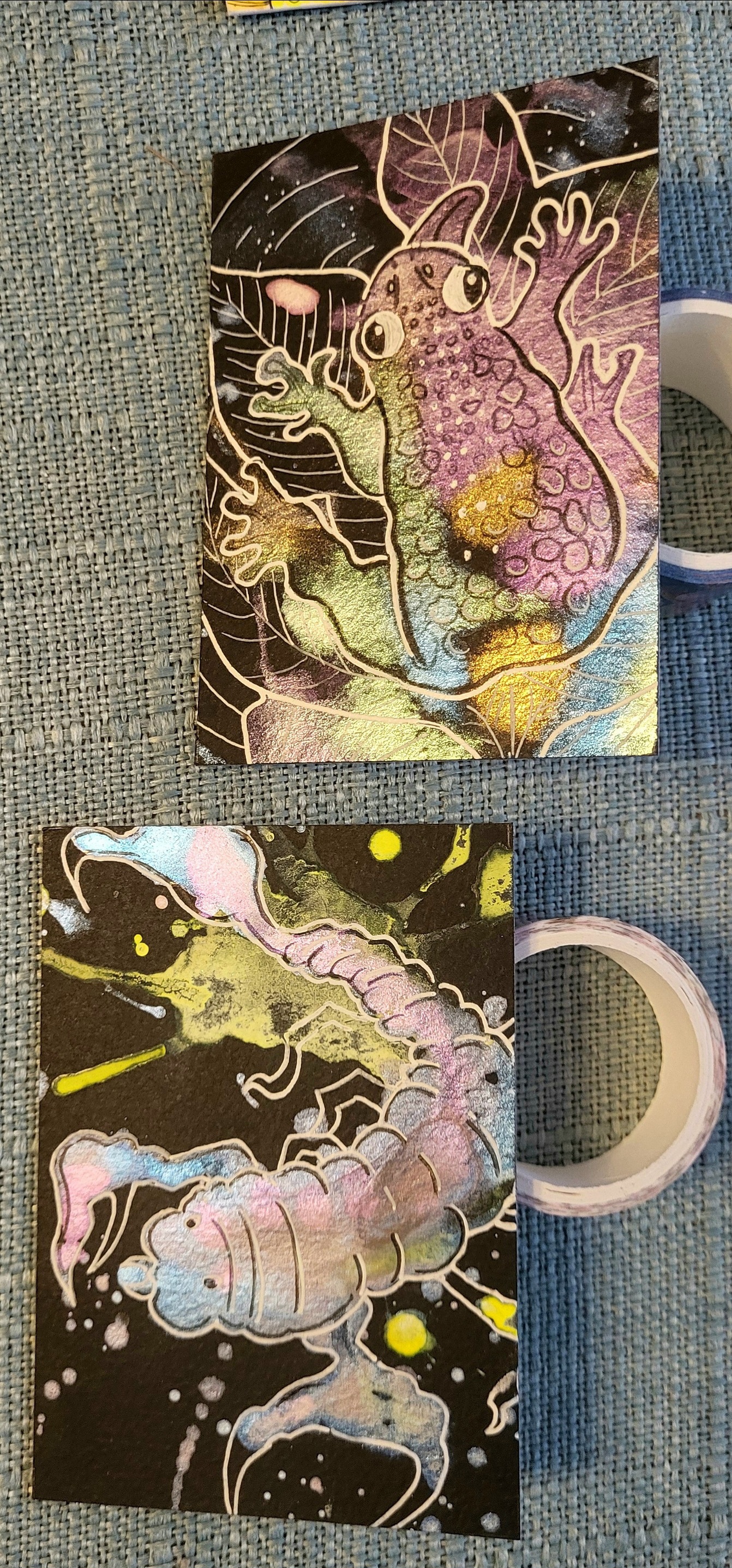 Ich habe einige Karten zu zeigen. Weil ich mit dem Gematsche so einen Spaß hatte habe ich noch ein paar neonfarbige Splashes gemacht.