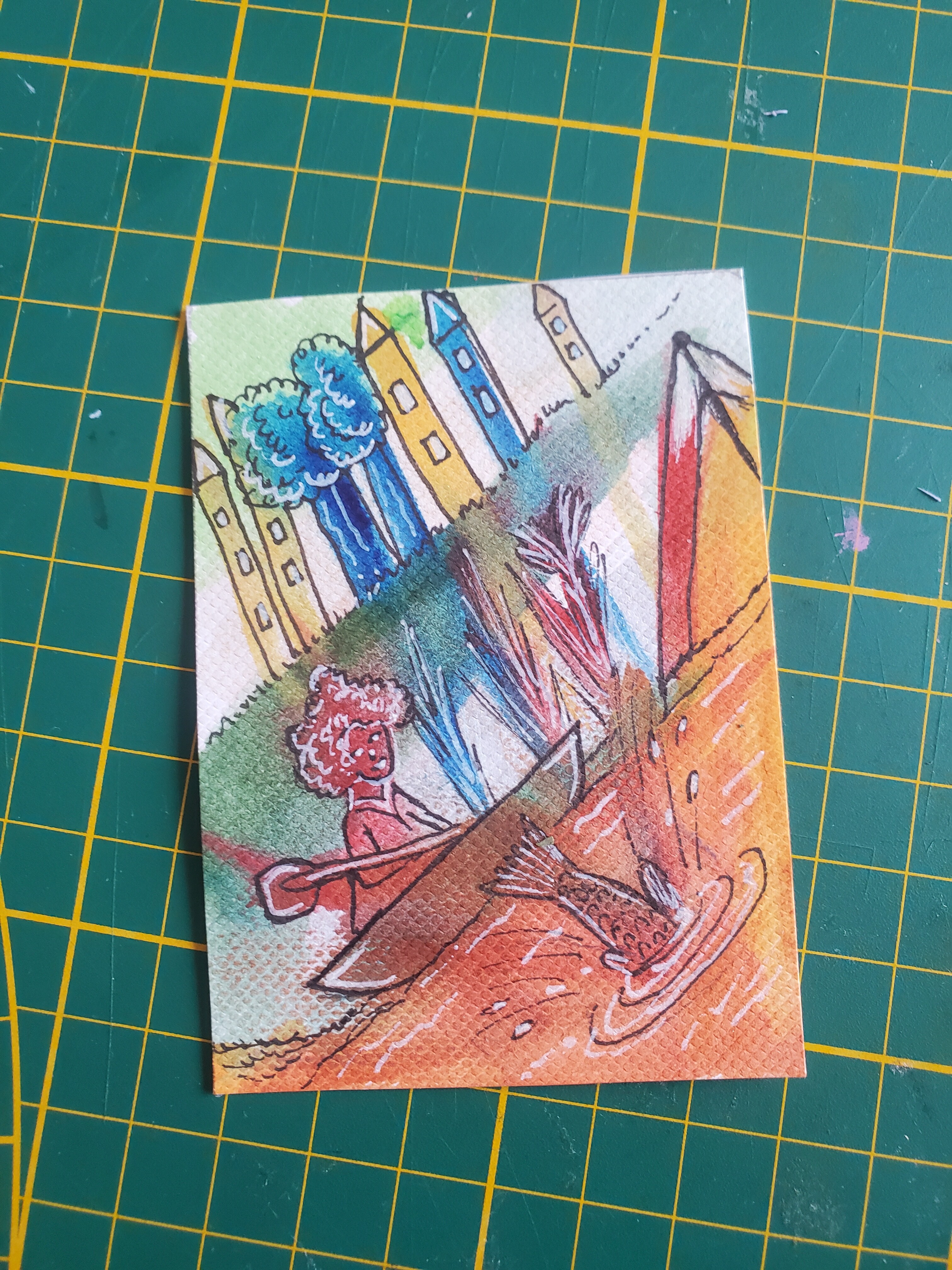 Überhaupt klingt das nach einem guten allgemeinen Plan: Nur die schönsten bzw. für das Format besonders geeigneten Splashes zu Kakaokarten machen und den Rest einfach ins Skizzenbuch kleben