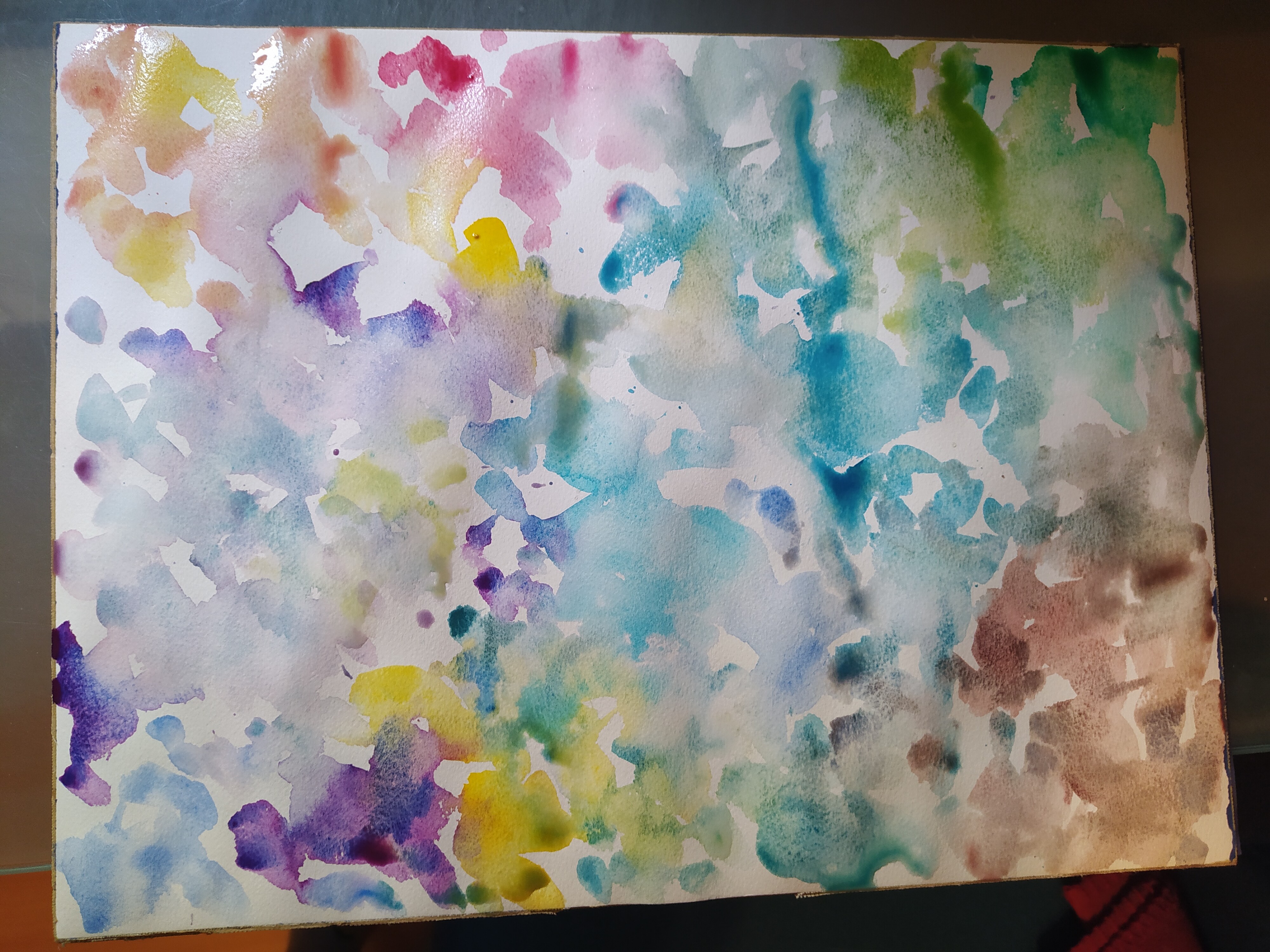 Ich merke, dass ich echt aufpassen muss, das Gemansche zufällig bleiben zu lassen. Sobald ich auch nur Ansätze von Figuren sehe, fange ich an Licht und Schatten zu beachten