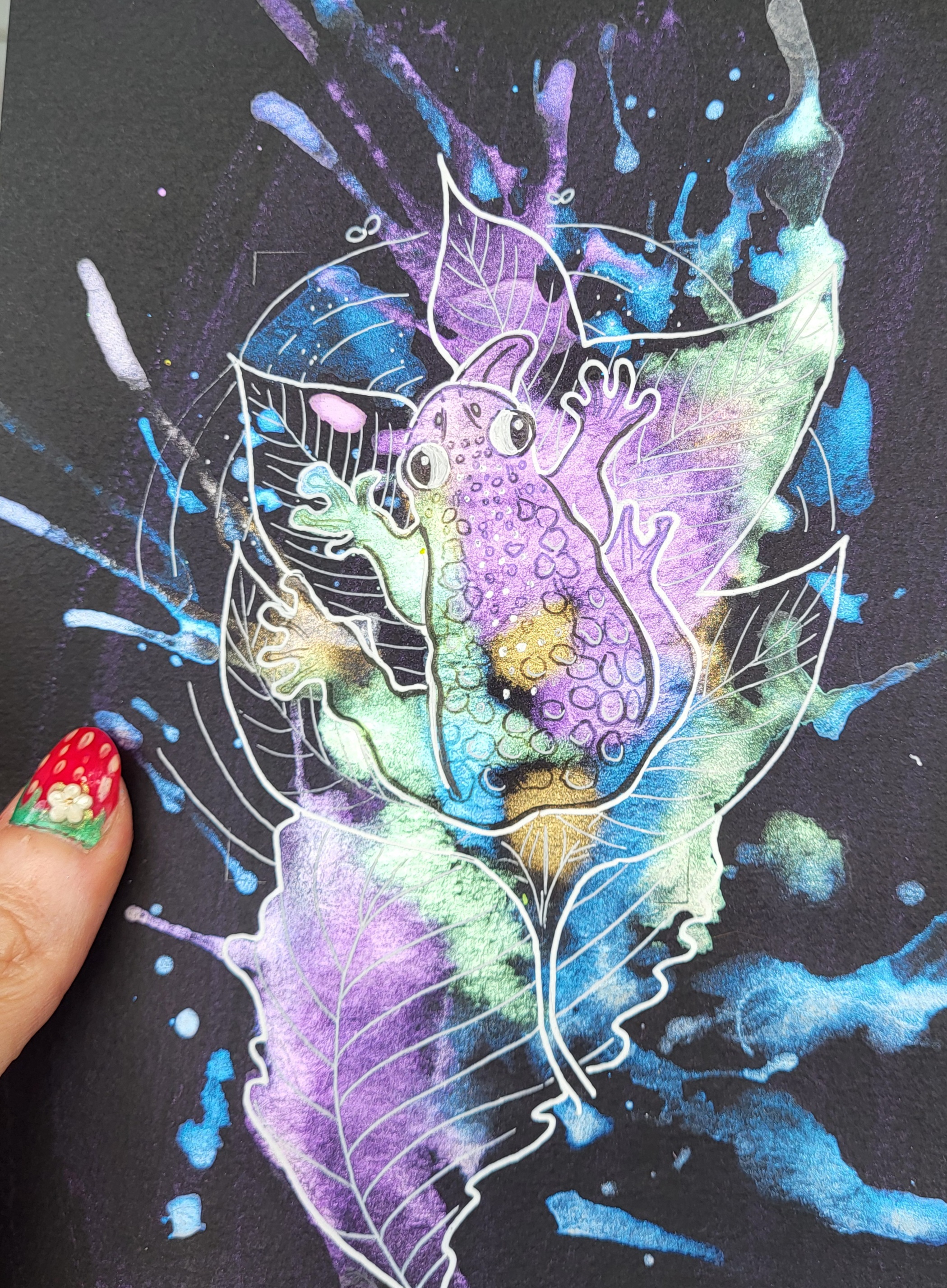 Ui, bei dem dunkleren Klecksen könnte ich mir auch gut Details mit weißem Gelstift oder so vorstellen^^