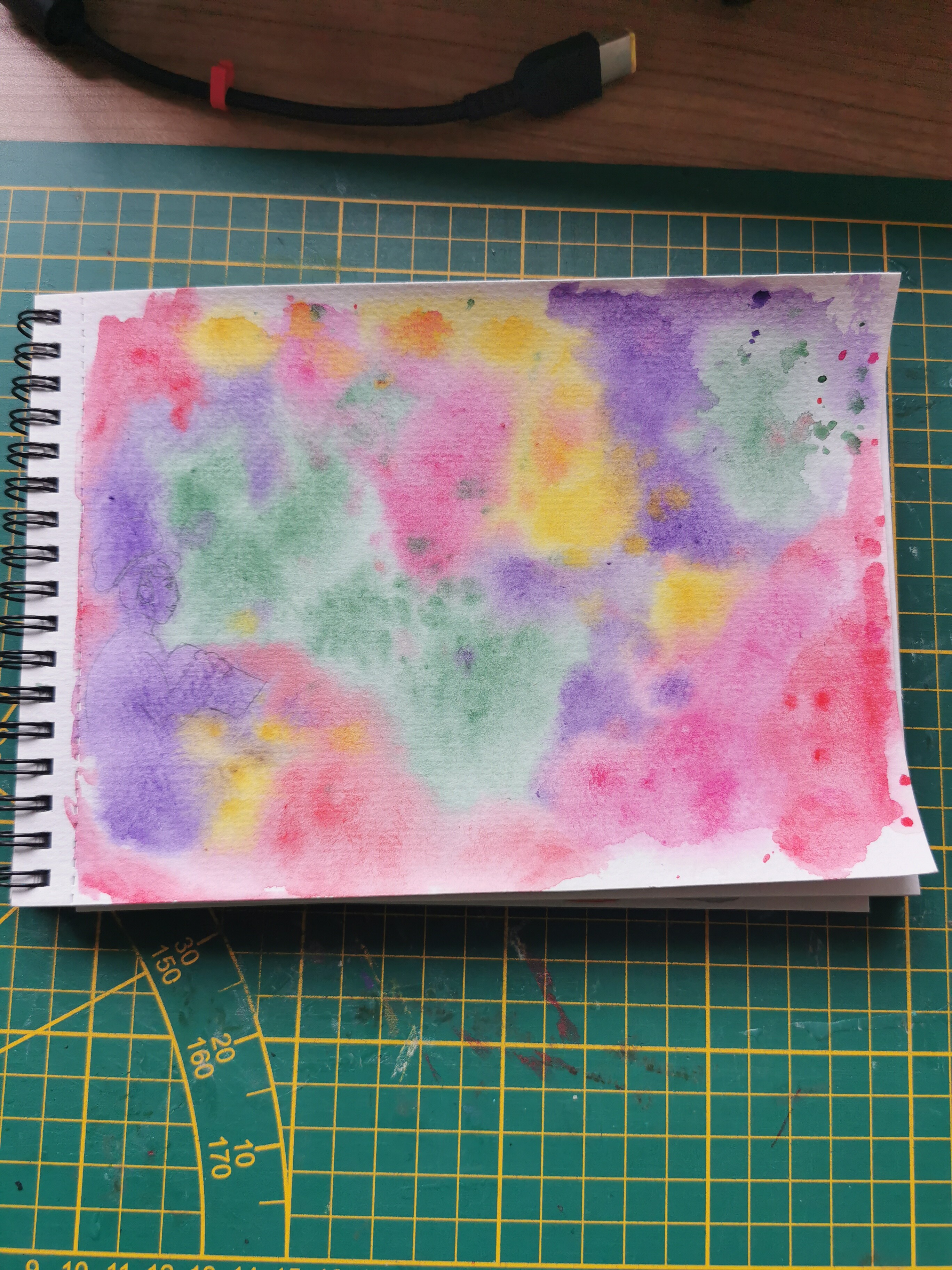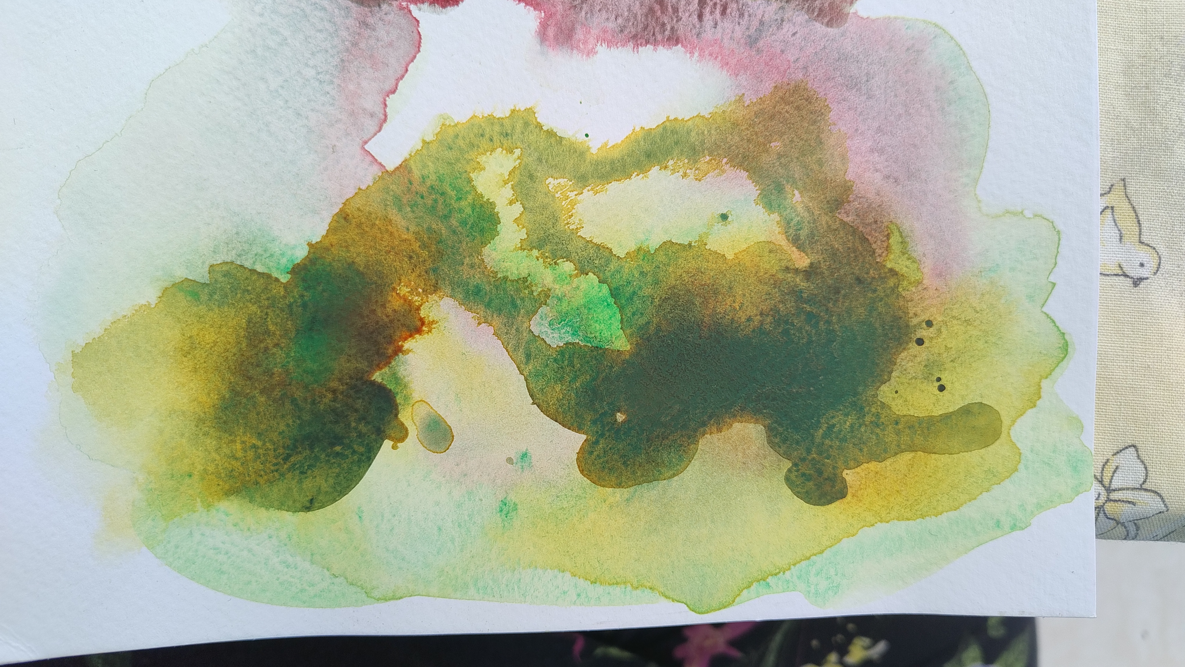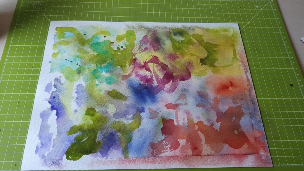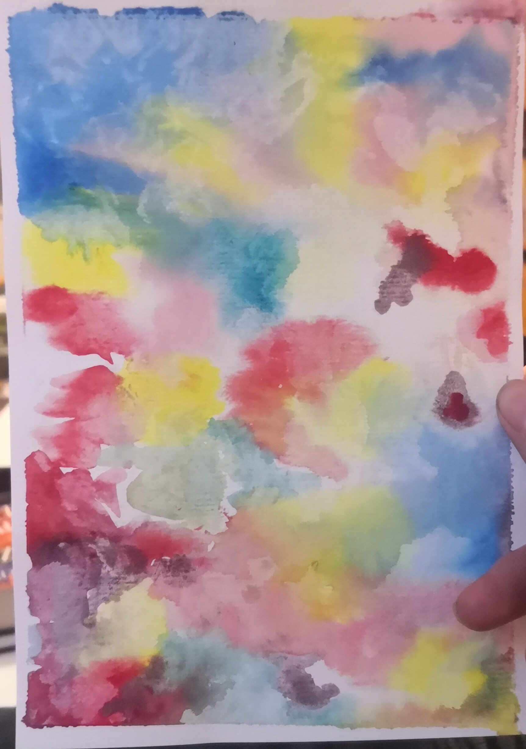 Hier ist sind meine Flecken. Hatte Probleme, weil ich das Papier einmal komplett unter den Wasserhahn gehalten hatte und dadurch alles zu schwammig verlaufen ist. Hab danach nochmal drauf rumgepanscht, hoffe das zählt.
