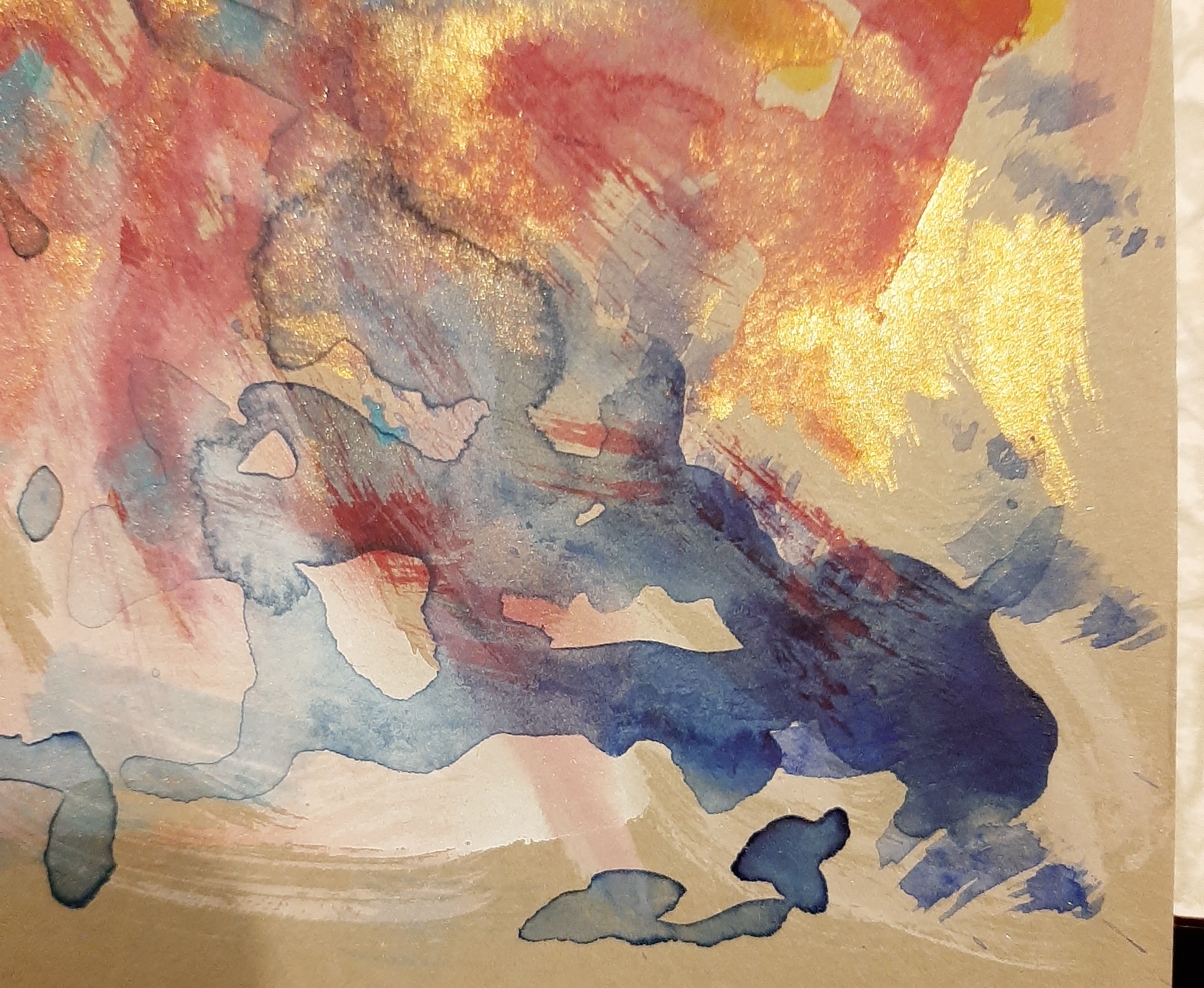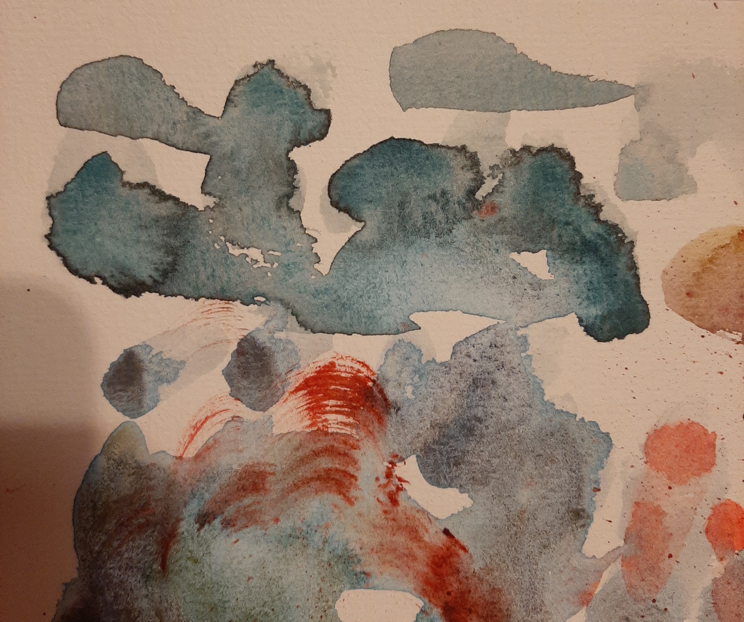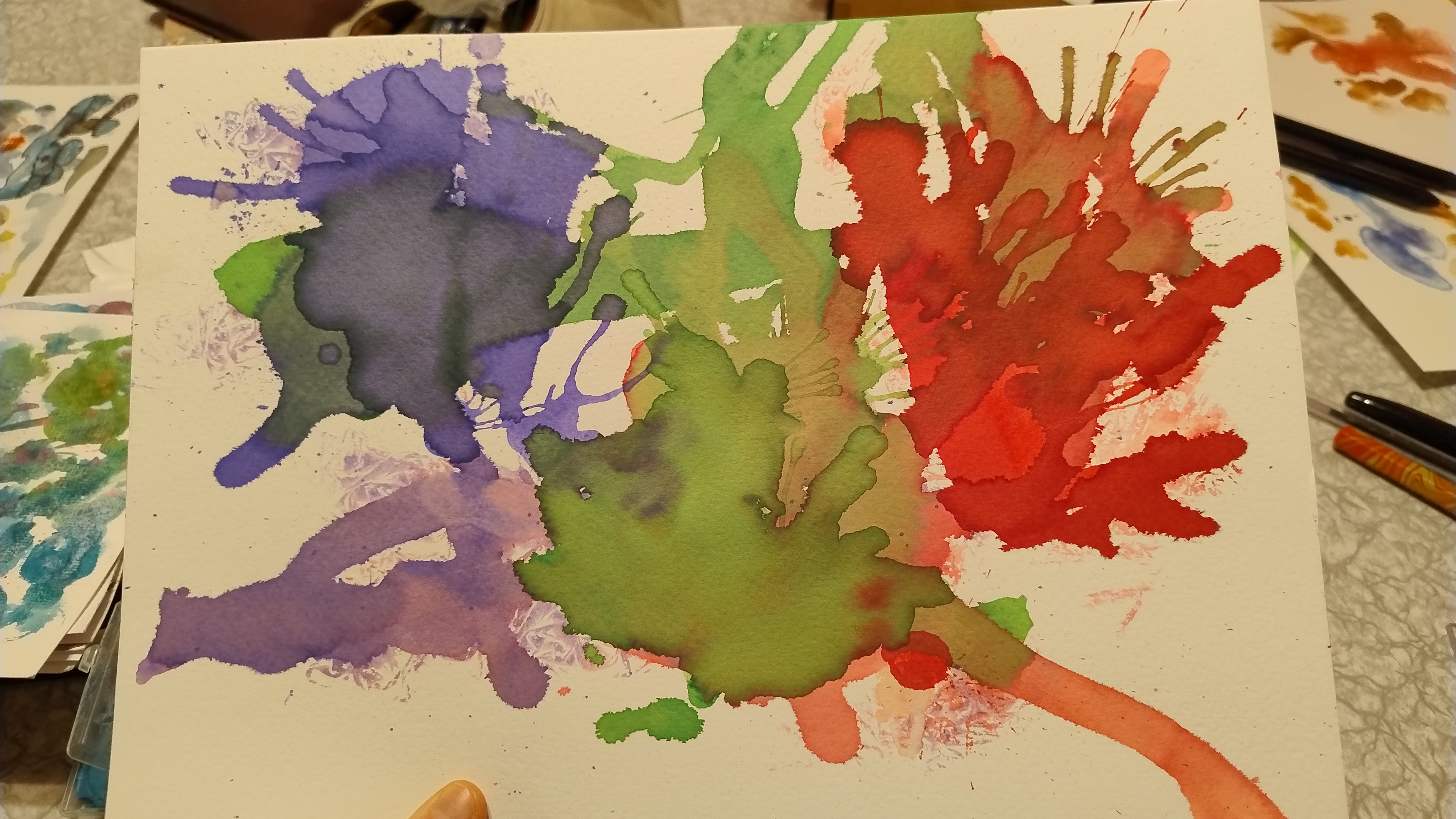 Hier ist sind meine Flecken. Hatte Probleme, weil ich das Papier einmal komplett unter den Wasserhahn gehalten hatte und dadurch alles zu schwammig verlaufen ist. Hab danach nochmal drauf rumgepanscht, hoffe das zählt.