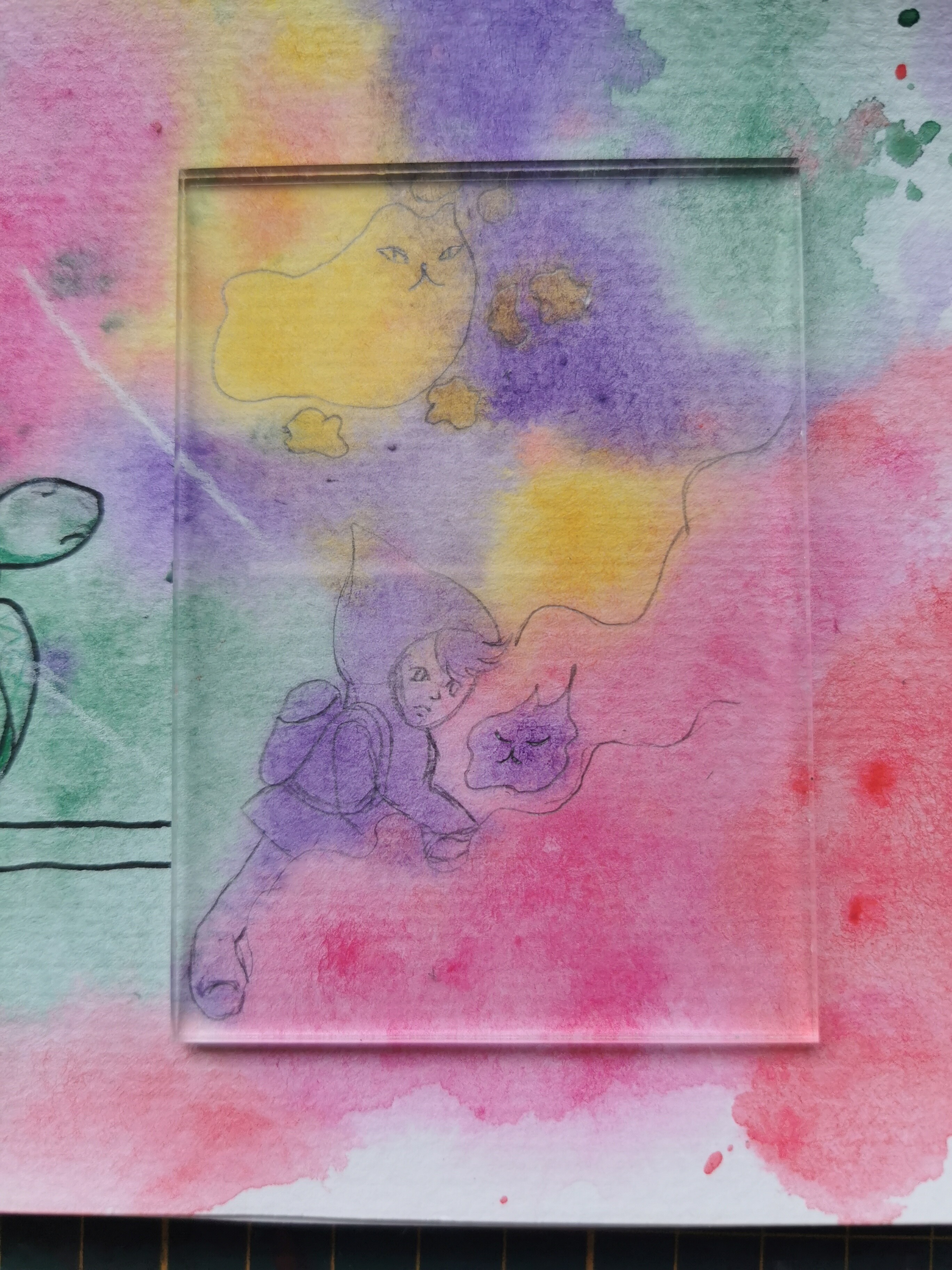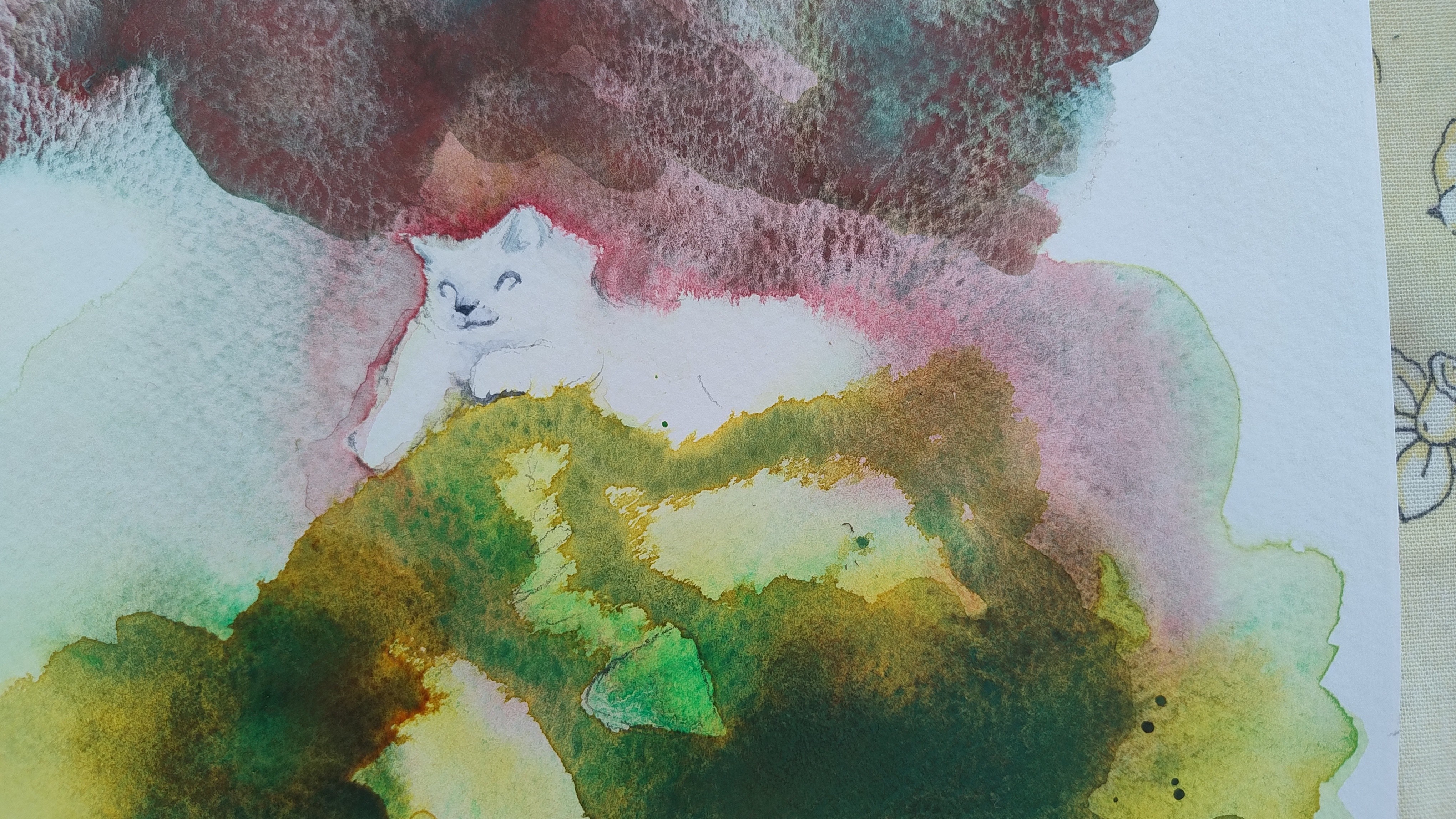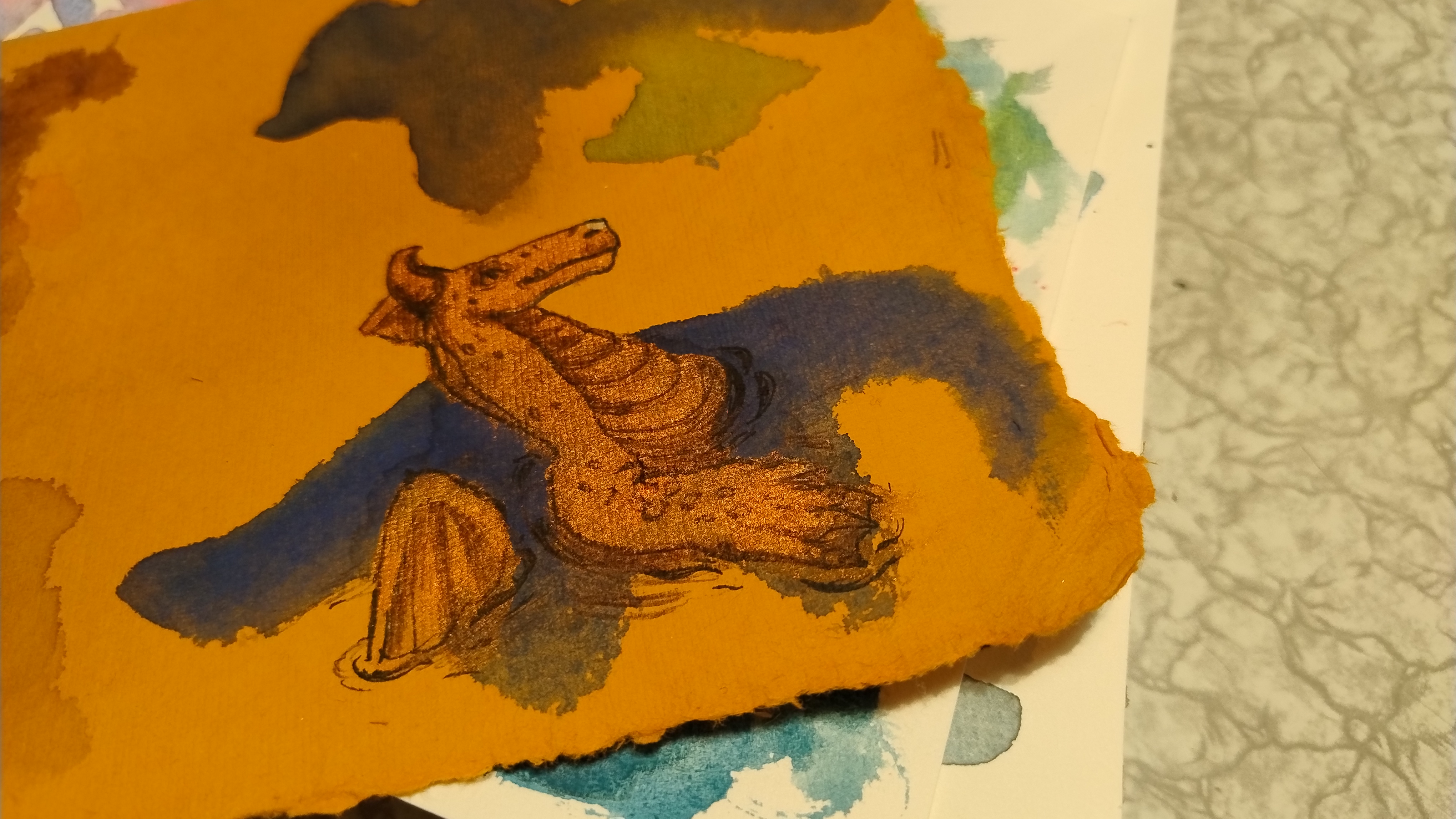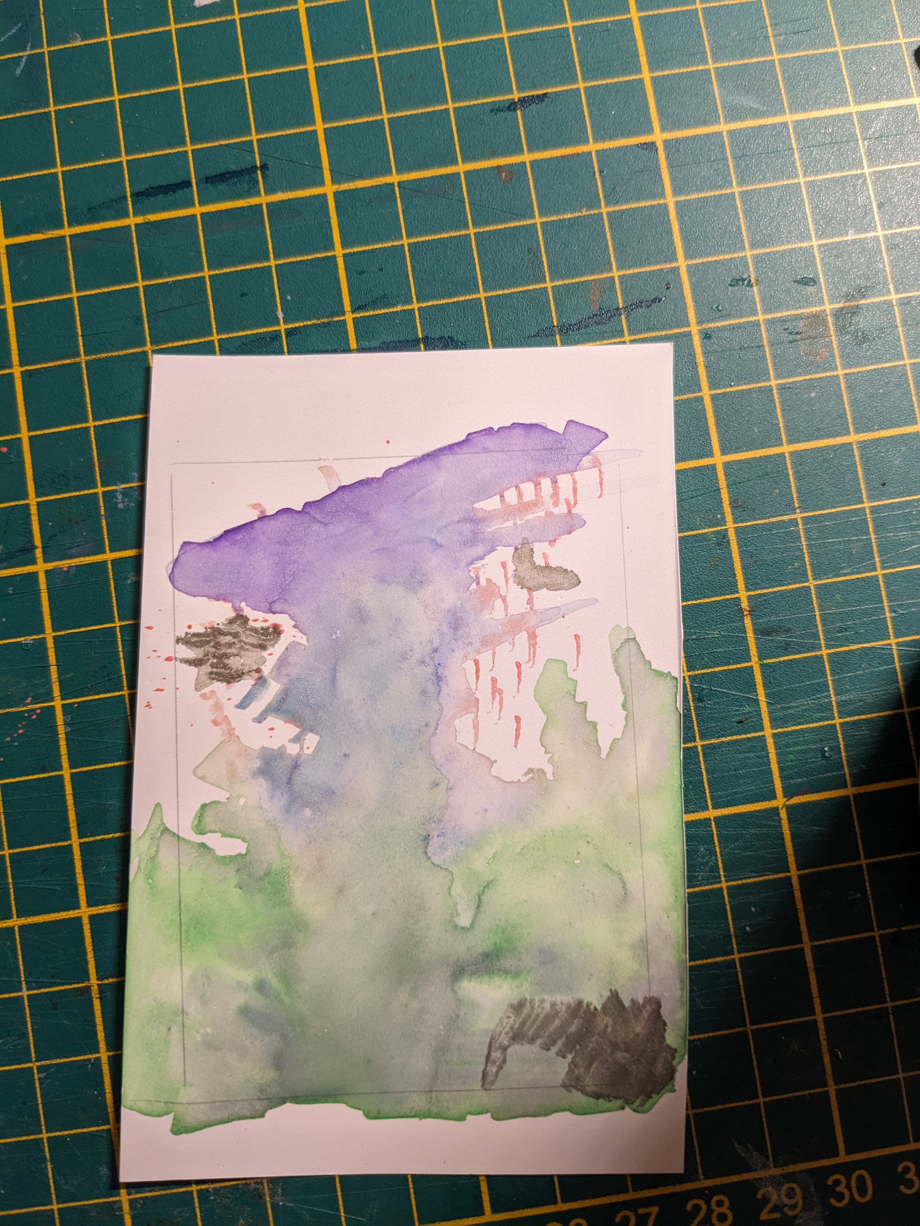 Hier ist sind meine Flecken. Hatte Probleme, weil ich das Papier einmal komplett unter den Wasserhahn gehalten hatte und dadurch alles zu schwammig verlaufen ist. Hab danach nochmal drauf rumgepanscht, hoffe das zählt.