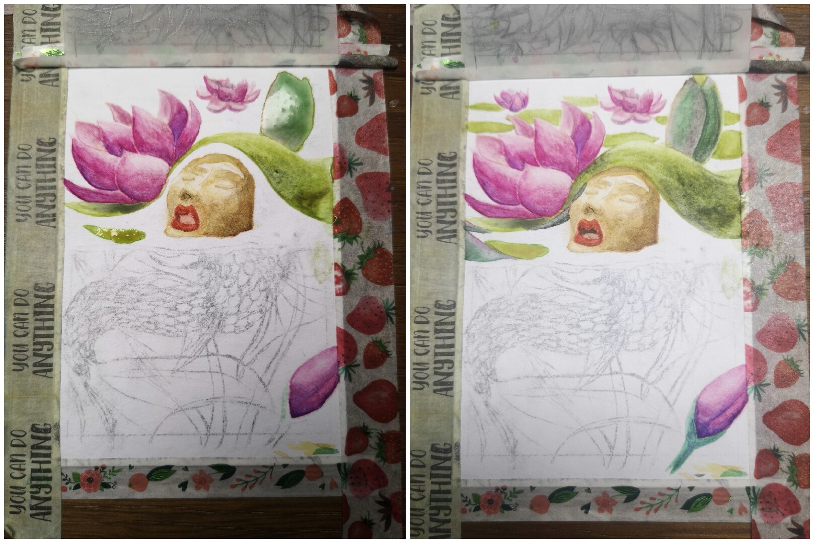 Das Papier hat mich übrigens heftigst gemobbt - was auch immer das ist, es ist kein Aquarellpapier. (Was keine Schuldzuweisung an @Taddi sein soll: ich hab das Papier online gefunden, und es wird definitiv als Aquarellpapier verkauft. Konnte man also nicht ahnen!) Ich habs auch auf weißen Zeichenkarton (nicht aus dem Kalender) geklebt, damit es etwas stabiler ist.