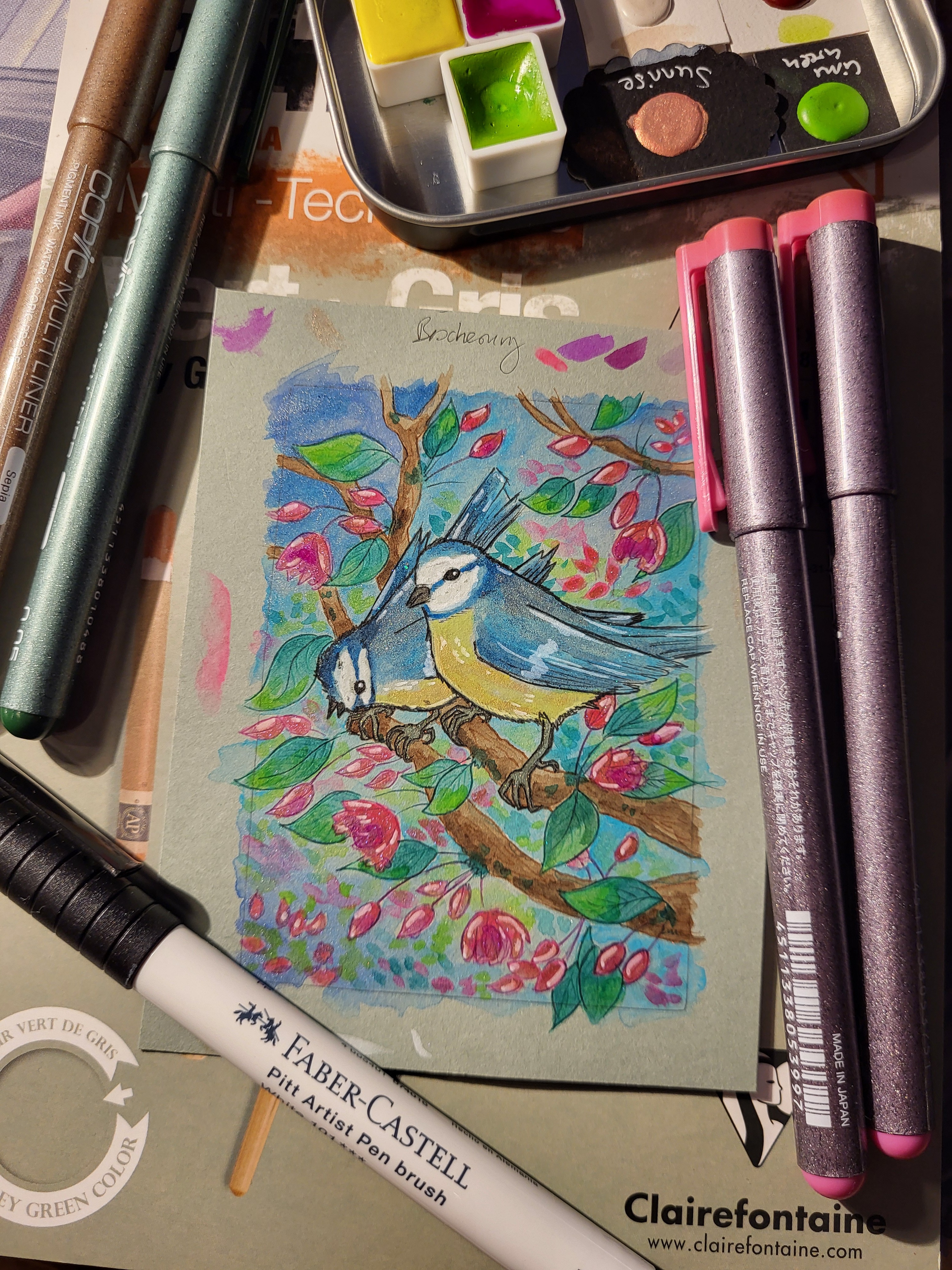 Die Acrylmarker und Gelstifte habe ich auch schon im Skizzenbuch eingesetzt: