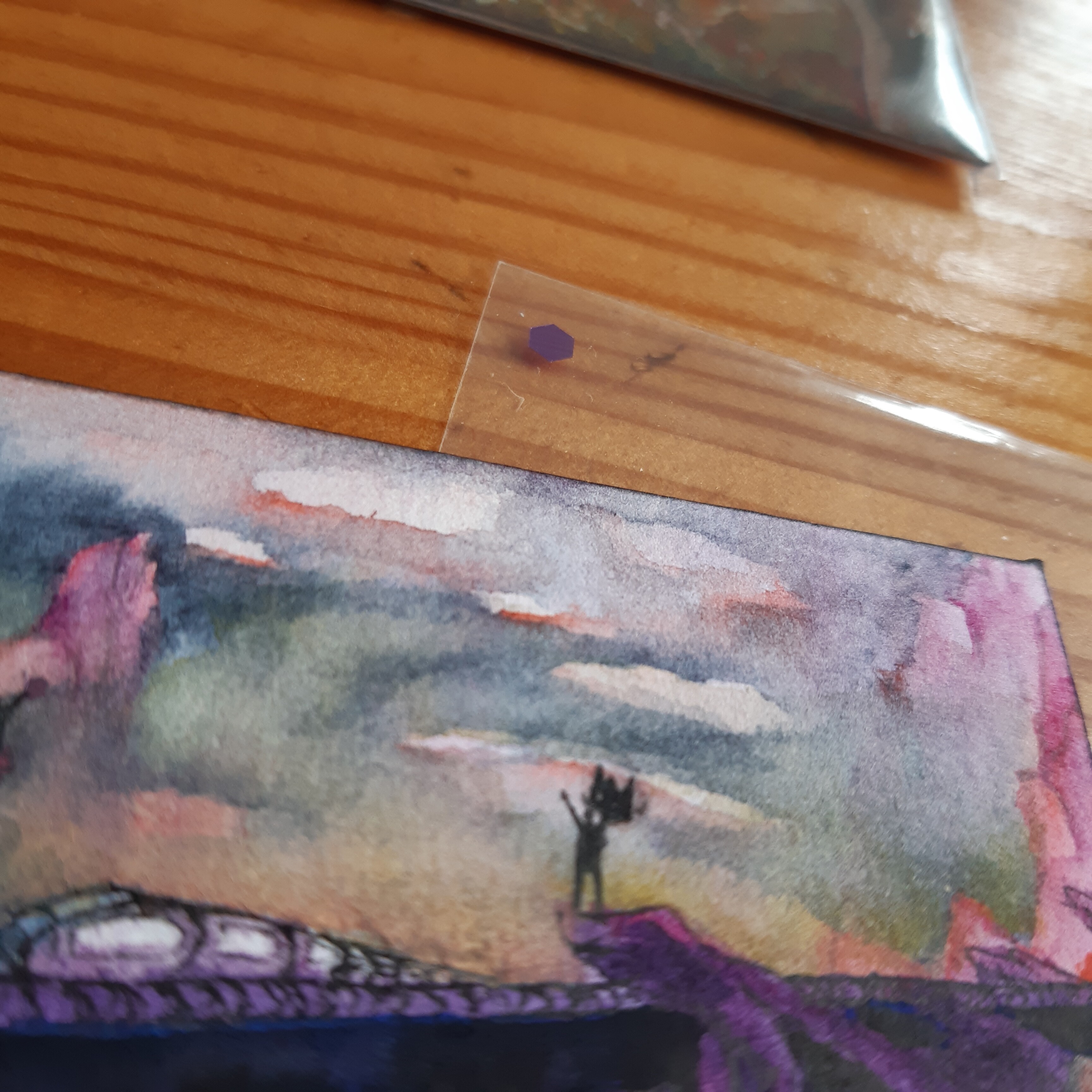 Ich habe ja sehr gehofft, eine von Sockenzombies genialen Landschaften abzubekommen und war entsprechend super glücklich, diese nun in meine Sammlung aufnehmen zu dürfen. Und was ich erst jetzt im Original entdeckt habe: Auf den Steinen sind ja sogar Symbole “eingeritzt”. Was für ein cooles Detail!