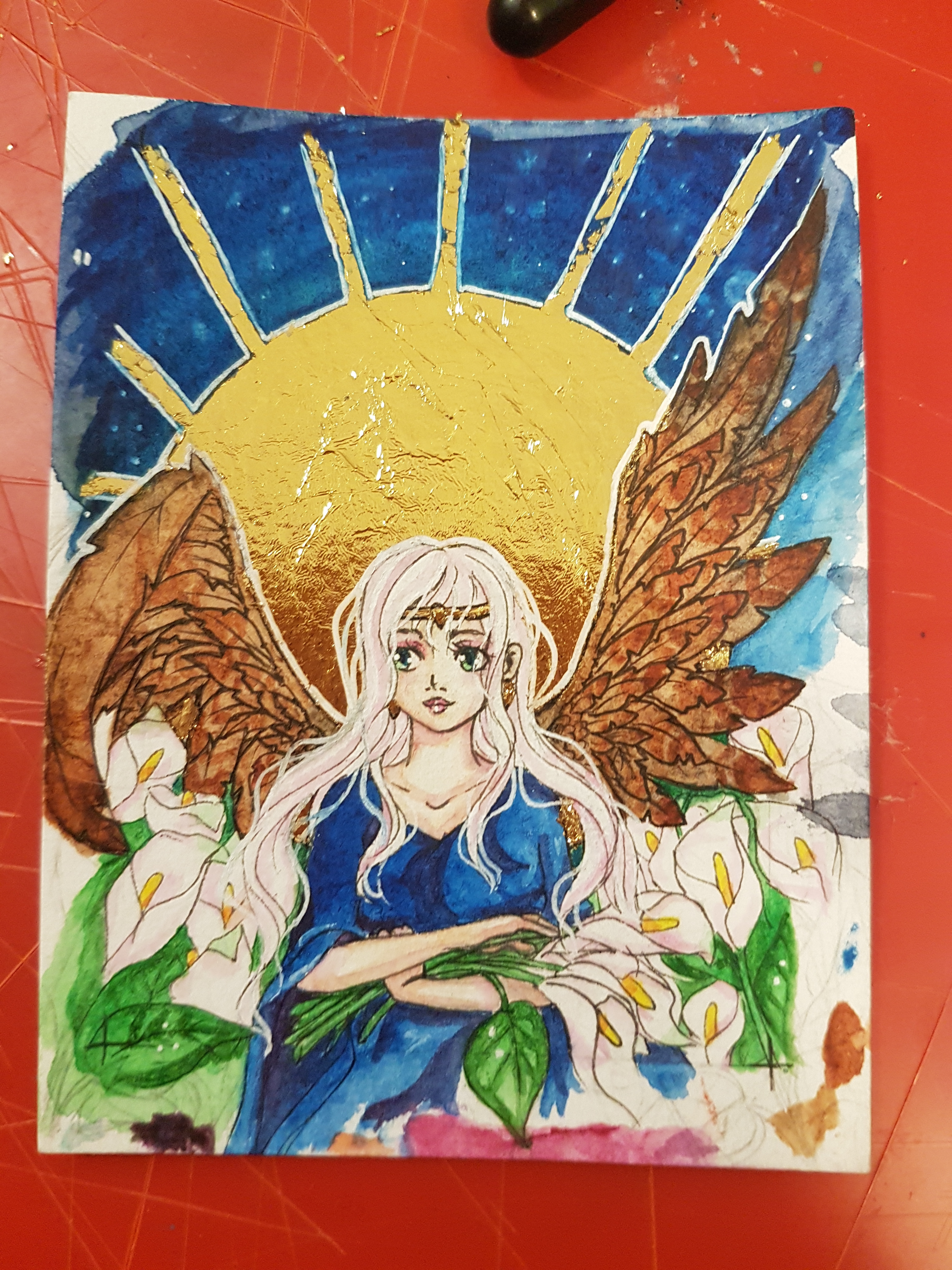 Versuch 1: So viele verschiedene Gelbtöne (mit meinem selbst angerührten Neongelb und dem wunderschönen PY181) mussten unbedingt ausprobiert werden <3 … Es fehlen noch ein paar kleine Details.