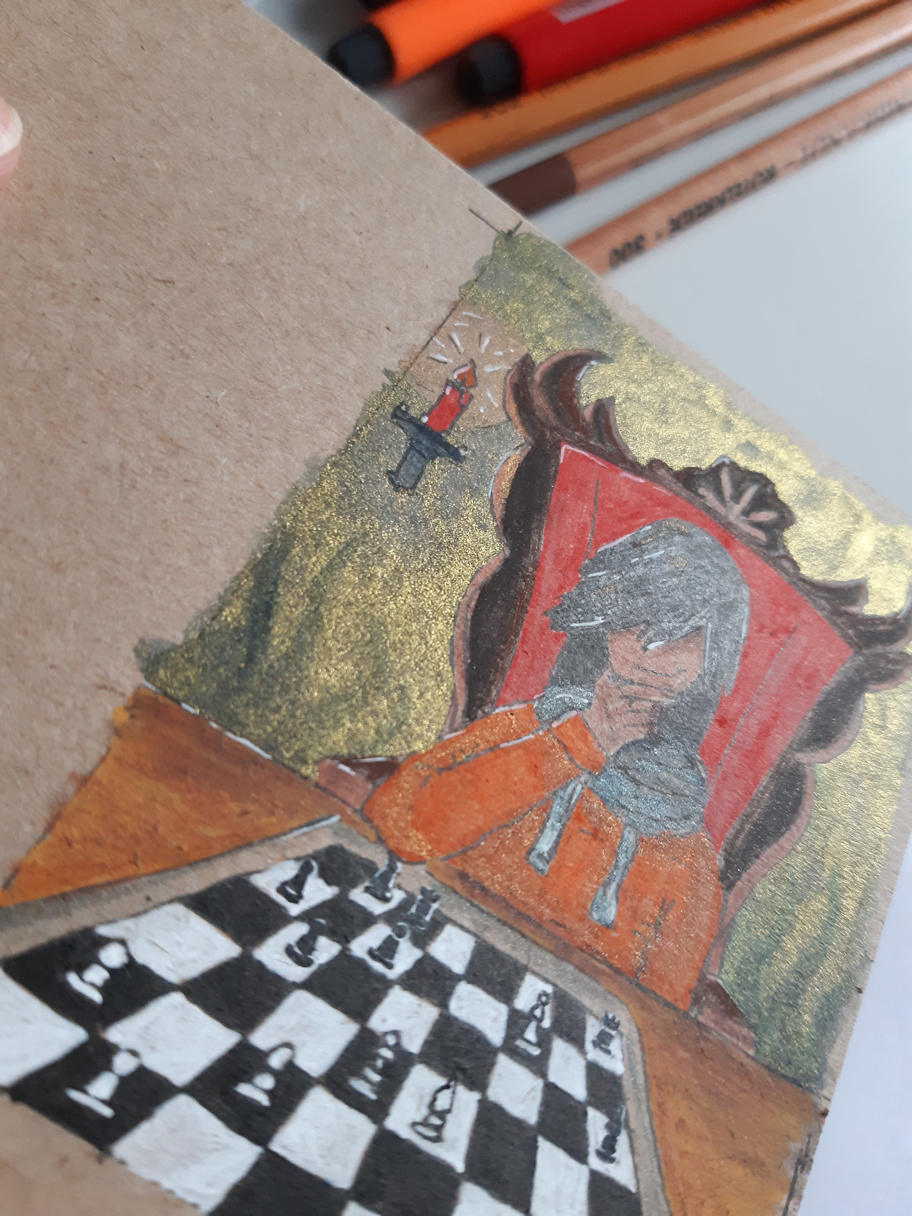 Die größte Herausforderung für mich ist das Arbeiten mit Aquarell ohne deckendes Weiß bzw. überhaupt mit weniger deckenden Tönen (wobei ich schon rausgefunden habe, dass einige doch ein klein wenig decken, das Naples Yellow Light hat mir z. B. die Waldlichtung gerettet) und dass ich so kaum etwas ausbessern kann auf die Art wie ich das normal mache, wenn ich mit einzelnen Bildelementen nicht zufrieden bin. Ich bin es auch gewohnt, dass ich z. B. Hintergründe zuerst mache und dann weiter vorne befindliche Elemente deckend drüber male. (Ja, mit Aquarell, richtige Hardcore-Aquarellkünstler bekommen wahrscheinlich einen Schock, wenn sie mir beim Malen zusehen XD) Aber ist auch cool, für sowas andere Lösungen zu finden. Und dunkler übermalen geht ja immer, jedenfalls so lange bis Schwarz erreicht wurde :D