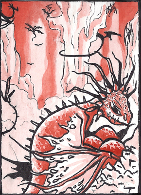 Das heißt, das ihr nur einen Farbton in verschiedenen Helligkeitsnuancen verwenden sollt (wie bei monochromen Karten auch). Eine Karte, wo beispielsweise einmal ein gelbliches Braun und einmal ein Schokoladenbraun verwendet habt, ist hier also nicht zulässig. Schwarz kann sowohl bei den Outlines, als auch bei der Coloration verwendet werden, als Flächen, zur Schattierung oder auch zum abdunkeln der Buntfarbe. Papierweiß könnt ihr nutzen, müsst ihr aber nicht.