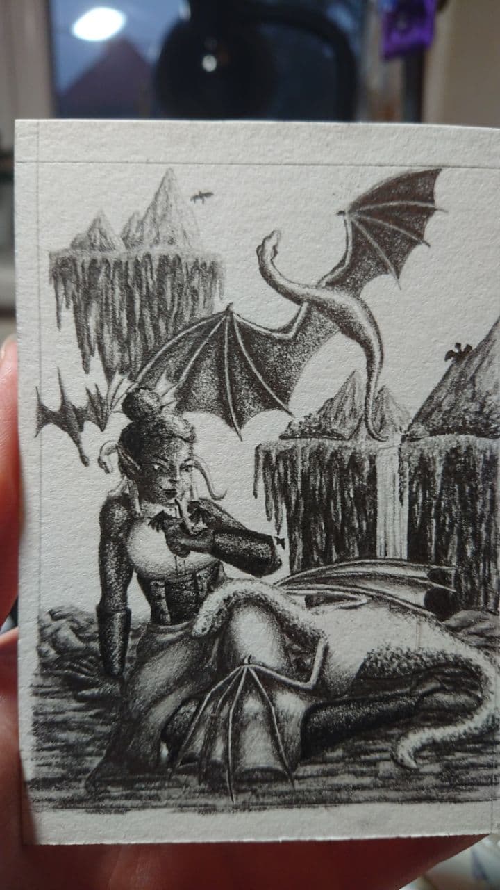 Ich habe schon zwei Karten in Arbeit, aber hab wirklich viel mehr Schwierigkeiten mit dem Medium als ich mich erinnern konnte. Früher hab ich so viel mit Bleistift gemacht, aber irgendwie hab ich es in den letzten Jahren verlernt und mich zu sehr auf Lines und Farbe verlassen um “schnell” etwas ausarbeiten zu können. XD Muss mich wirklich nochmal in mein Teenage-ich zurückversetzen.