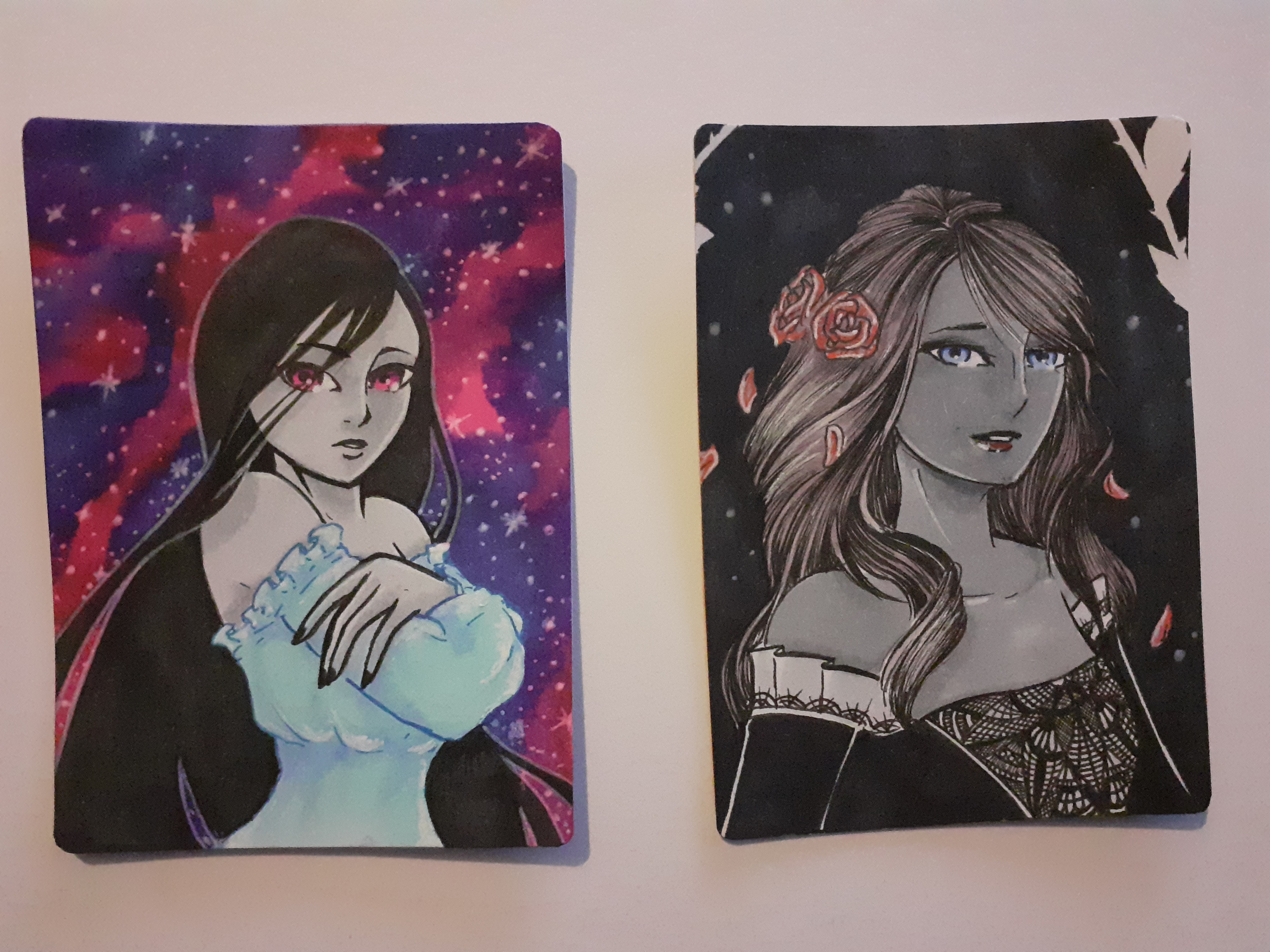 Ich hab jetzt auch mal zwei Karten fertig gemacht und wollte fragen, ob die in Ordnung sind. Die rechte ist etwas sehr schwarz geworden^^