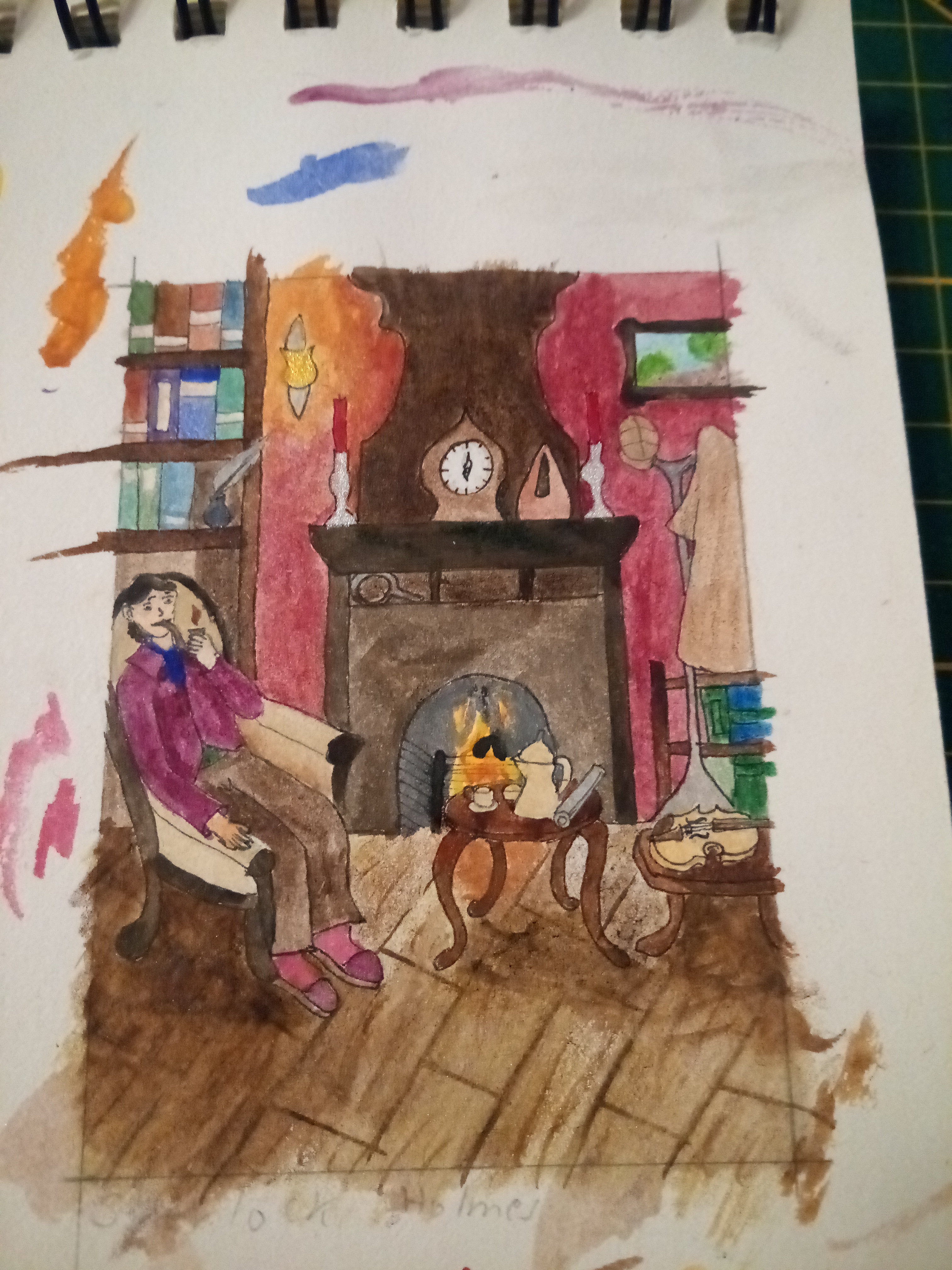 Schöne Karten (: Bei der Warrior Cats Karte wäre es nicht schlecht den Übergang zwischen Gras und Büschen noch etwas deutlicher zu machen und vielleicht könntest du im Vordergrund noch ein paar Grashalme oder einen Busch andeuten (das nur als Beispiel) - dann hättest du gleich noch etwas mehr Bildtiefe. Bei der Sherlock Holmes Karte würde ich dich bitten, die Stellen an denen du übergemalt hast, noch etwas zu kaschieren (beim Mantel am Haken zum Beispiel). Insgesamt könntest du einige Stellen ruhig auch noch kräftiger schattieren (linke Seite vom Sessel z.B., die Teekanne, Violine, Uhr …).