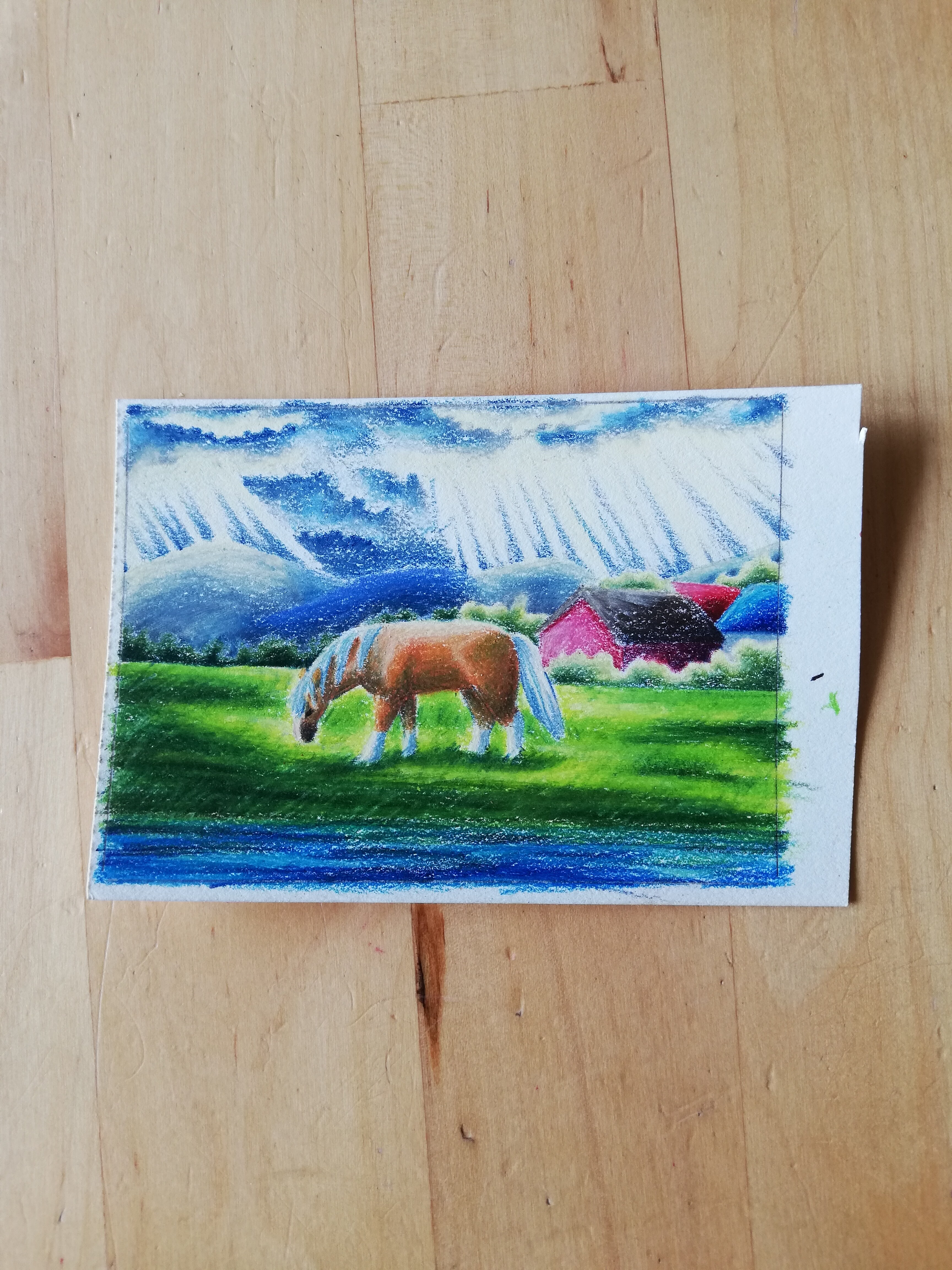 Dann habe ich noch Skizzenpapier, das habe ich jetzt benutzt, aber die Farben sehen darauf aus wie Wachsmalstift.