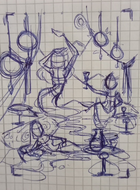 Die Skizzen sind alle mega toll. Persönlich mag ich die beiden mit den Pilzen und die Dschinns am liebsten, die wären aber alle in Ordnung und abwechslungsreich sind sie auch genug. Ich bin sehr auf die Ausarbeitung gespannt.