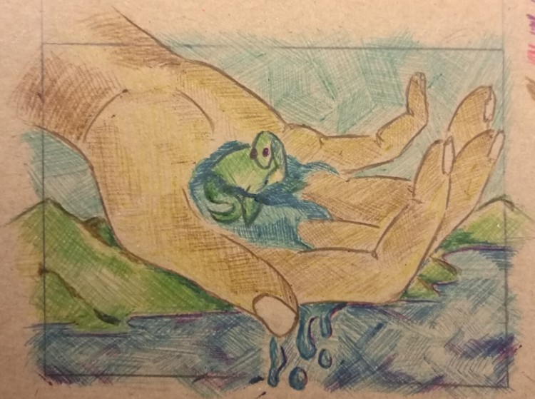 Die Hand ist ja mit 2 Farbtönen schattiert. Der Arm wird zu den Rändern hin dunkler- also sollte er dort am dunkelsten sein, wo die Lines sind. Genau da reicht die Schattierung aber nicht ganz hin (vermutlich wolltest du vermeiden, über die Lines hinaus zu zeichnen). Dort könntest du mit dem Kuli nochmal ganz leicht drübergehen, sodass es zu den Lines hin wirklich dunkler wird. Das würde die Schattierungen besser wirken lassen ^^