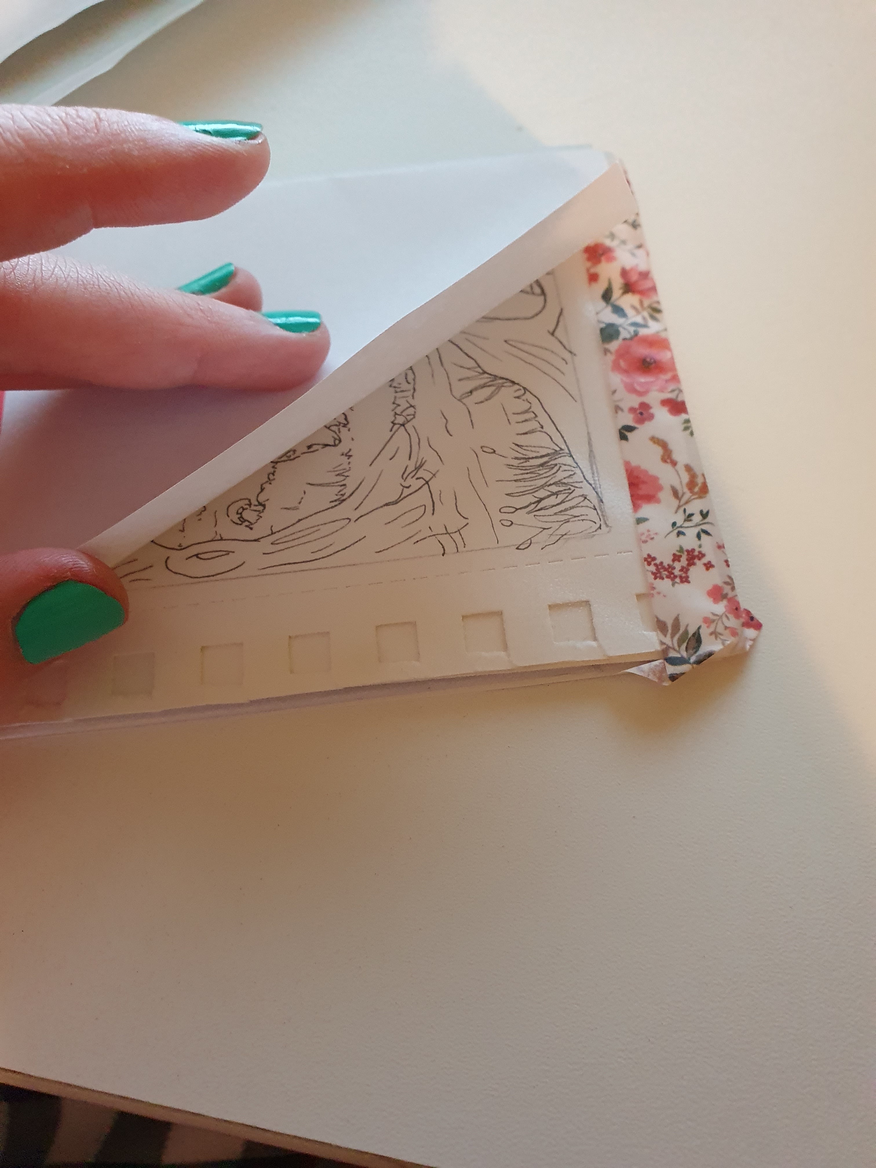 Muss ich die Collab-Skizzen beim Hinweg auch bereits mit Postkarten verstärken? Meine Outline Schnitte sind recht dick und stabil. Ich habe sie jetzt erstmal nur in eine klarsichtfolie getan und mit Washi verklebt, um sie vor regen zu schützen, da es schlecht in kakaohüllen passt.