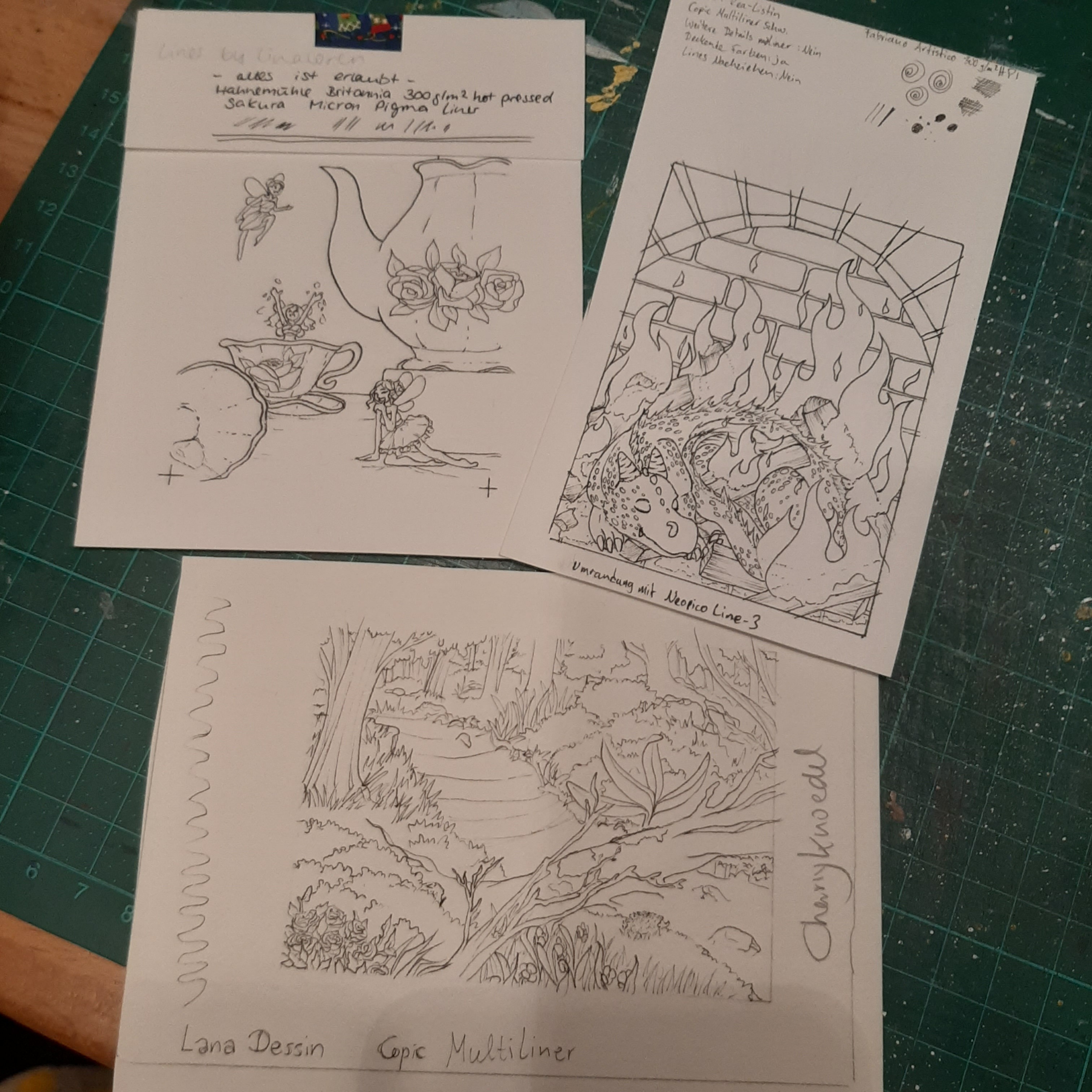 Bezüglich der Zeichenzeit: in Anbetracht dessen, dass Postlaufzeiten ein bisschen unberechenbar sind, bin ich gerne bereit, eine Verlängerung zu geben. Meldet euch einfach bei mir, wenn euch nach Ankunft der Lines die verbliebene Zeichenzeit zu kurz ist.