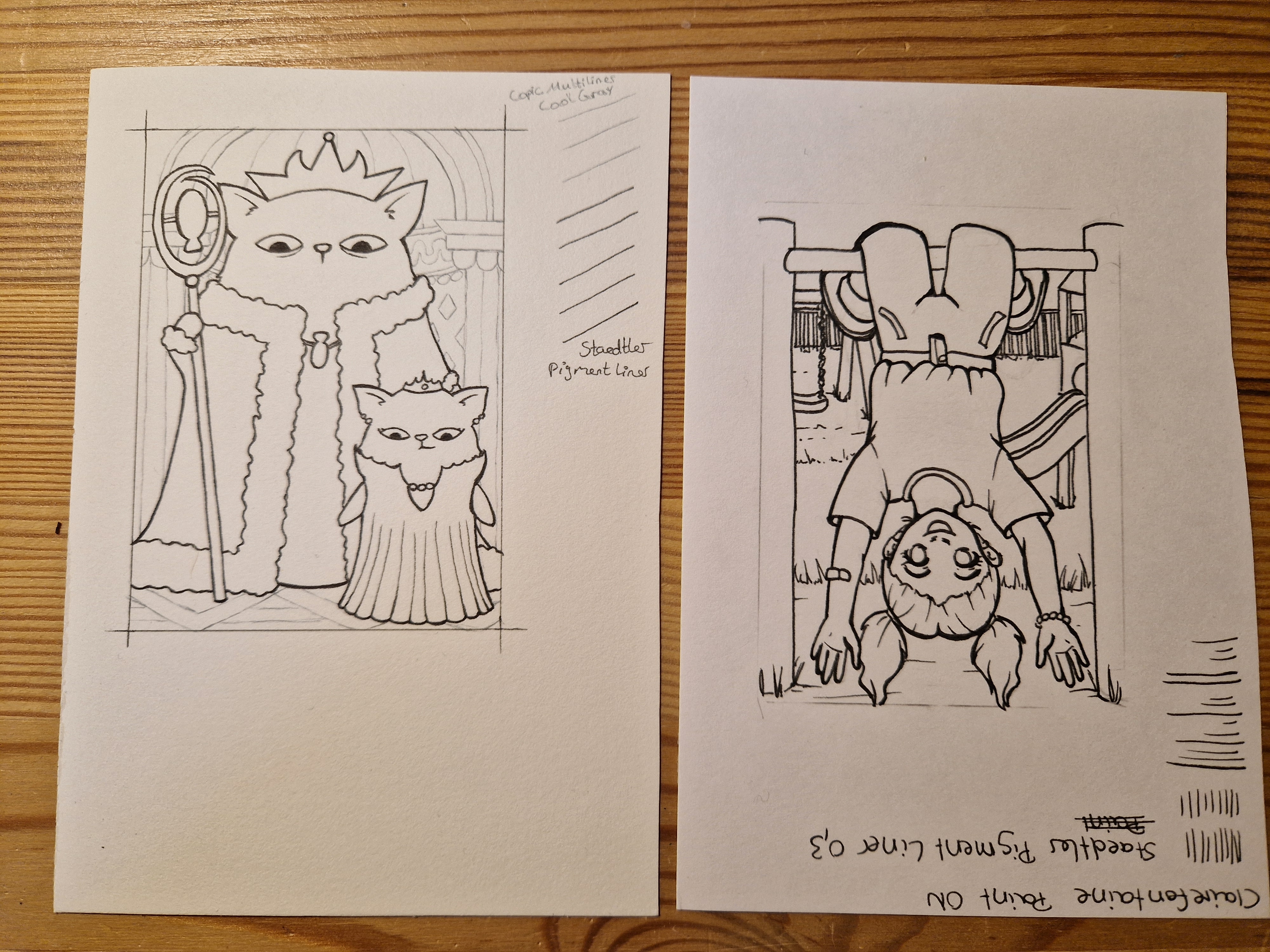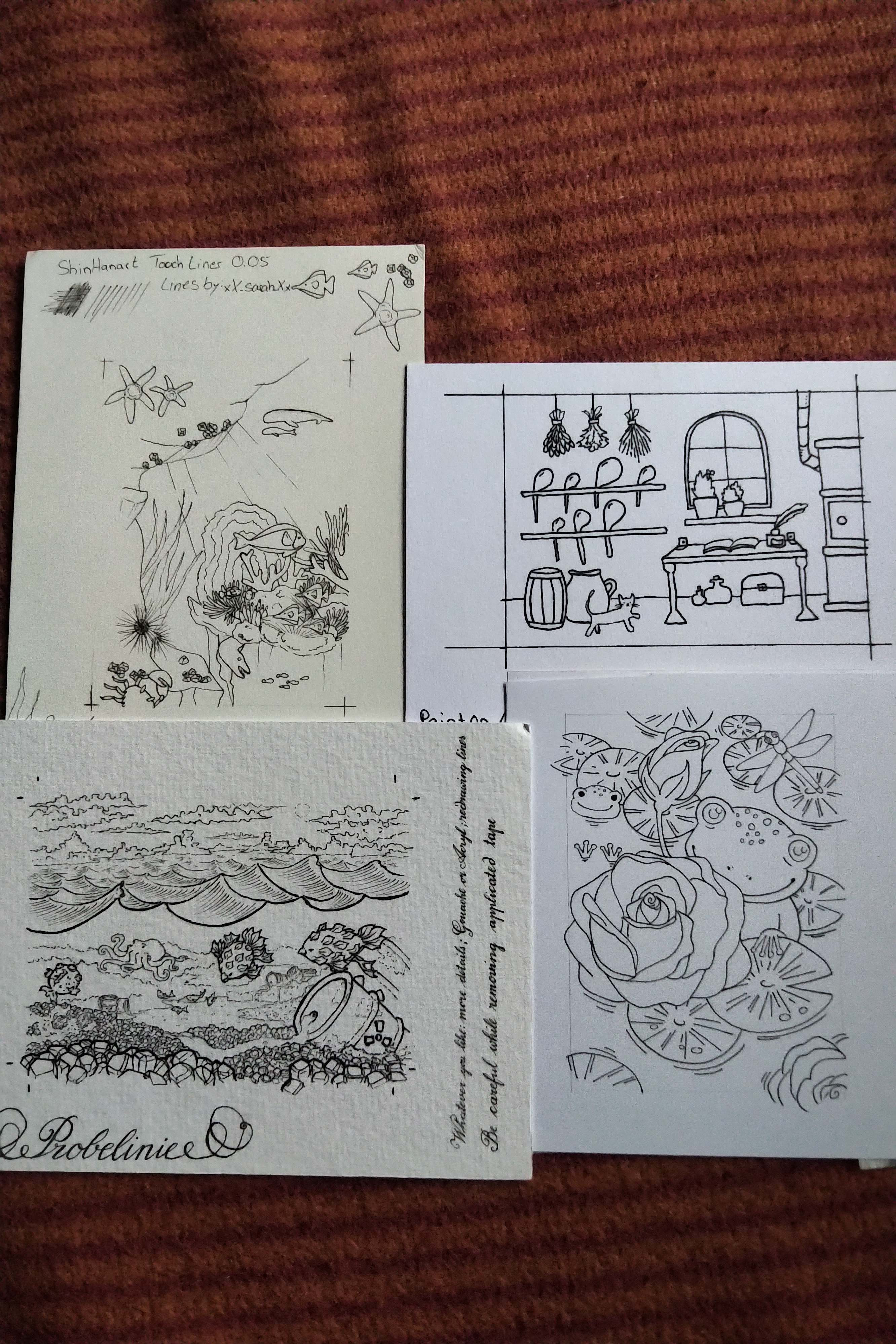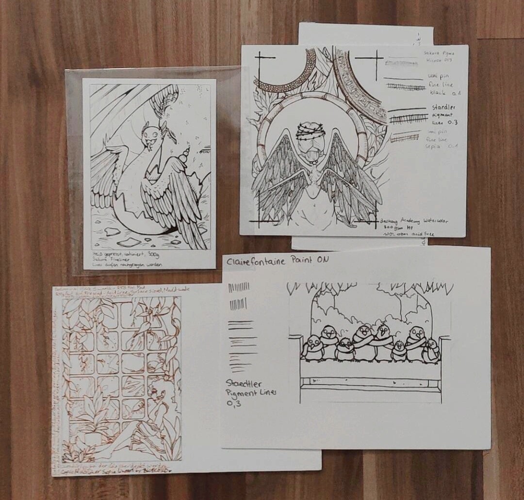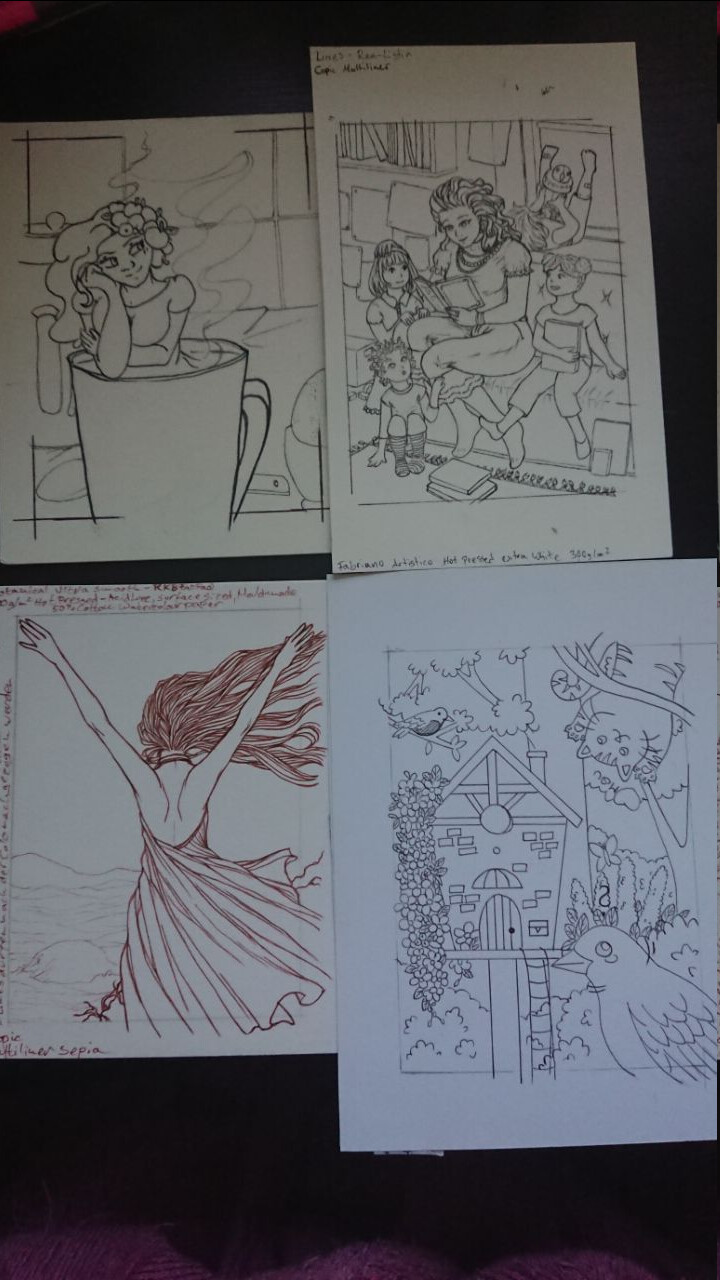 Ich freue mich sehr, dass ich Lines von @oO-bittersweet-Oo auf dem Copic-Papier colorieren darf, darauf habe ich gehofft :D Da fühl ich mich einfach sicherer. Das ist tatsächlich auch das einzige Papier, das ich kenne, denn die andern drei Papiere sind mir bisher unbekannt. Für die Lines von @xX_sarah_Xx hab ich schon eine Idee für die Lichtstimmung, und das Papier ist schön glatt, da lassen sich Aquarell und Buntstifte bestimmt gut kombinieren. Bei den Lines von @Glitzermond spiele ich mit dem Gedanken, deckende Farben zu nutzen, und die Lines von @elanor89 hatten mich von Anfang an an meisten umgehauen. Da noch Details hinzufügen, haha, wo denn? XD Aber auch die Schrift daneben, sieht ja aus wie gedruckt. Hast du das echt per Hand geschrieben?!?