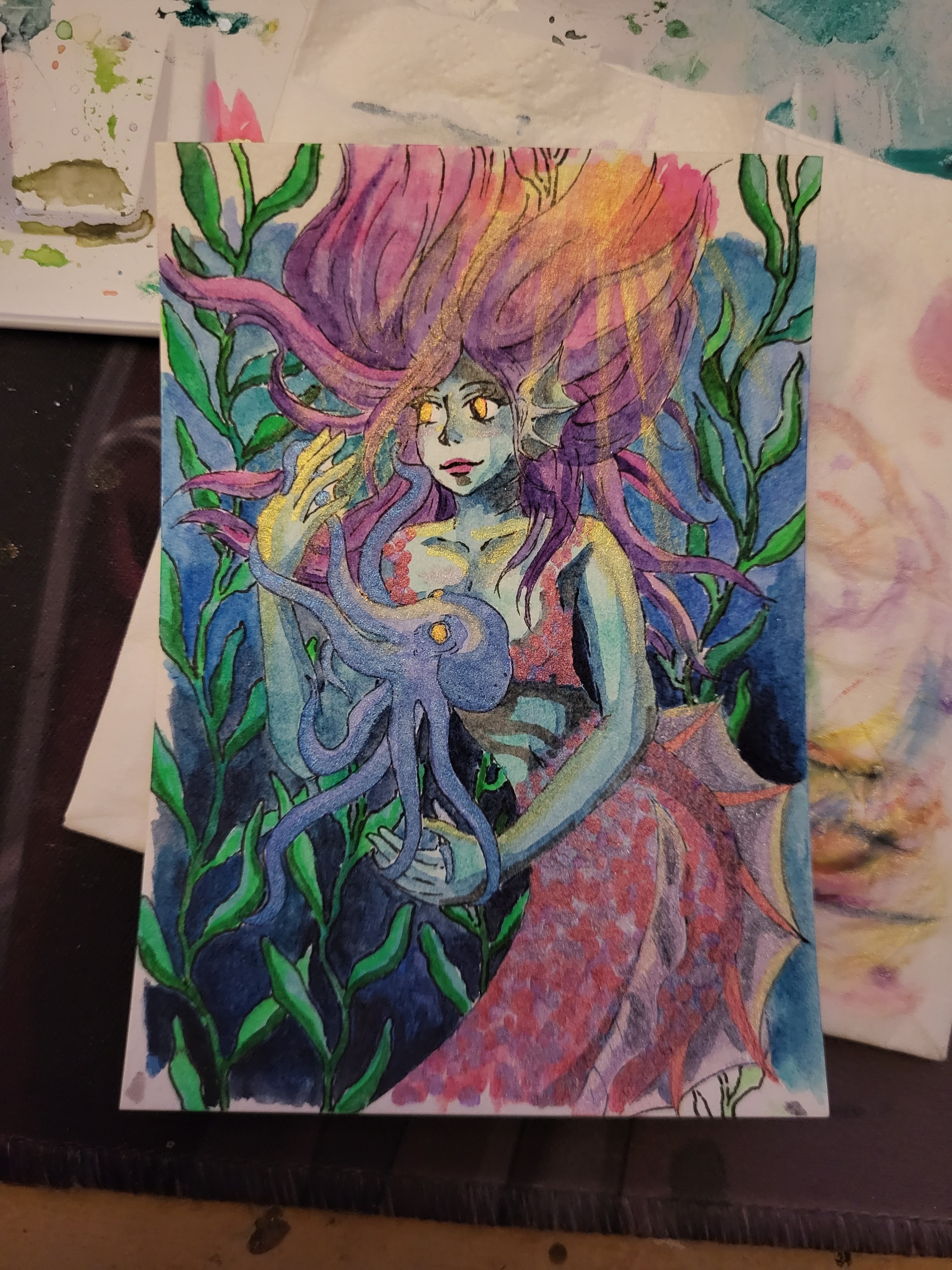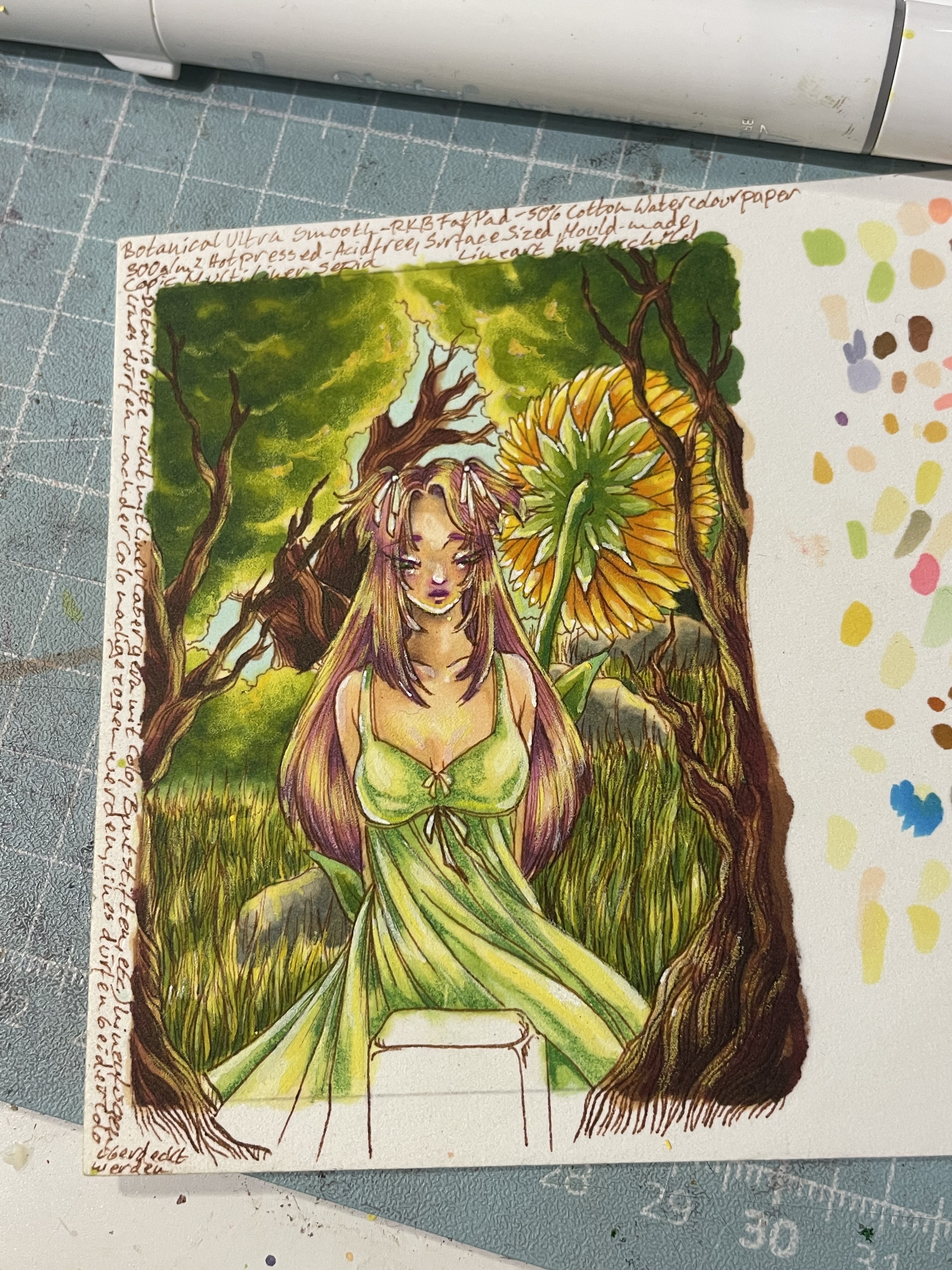 Sehen schon gut aus (: Die erste Karte wirkt noch etwas flach, ich glaube da kannst du noch etwas mehr rausholen und ich denke, dass die Infos auf der Rückseite ruhig überklebt werden dürfen. Auf lose Aquarellblätter schreibe ich mir das auch öfter so drauf, damit ich nicht vergesse welches Papier es war und was die Rückseite war :’)