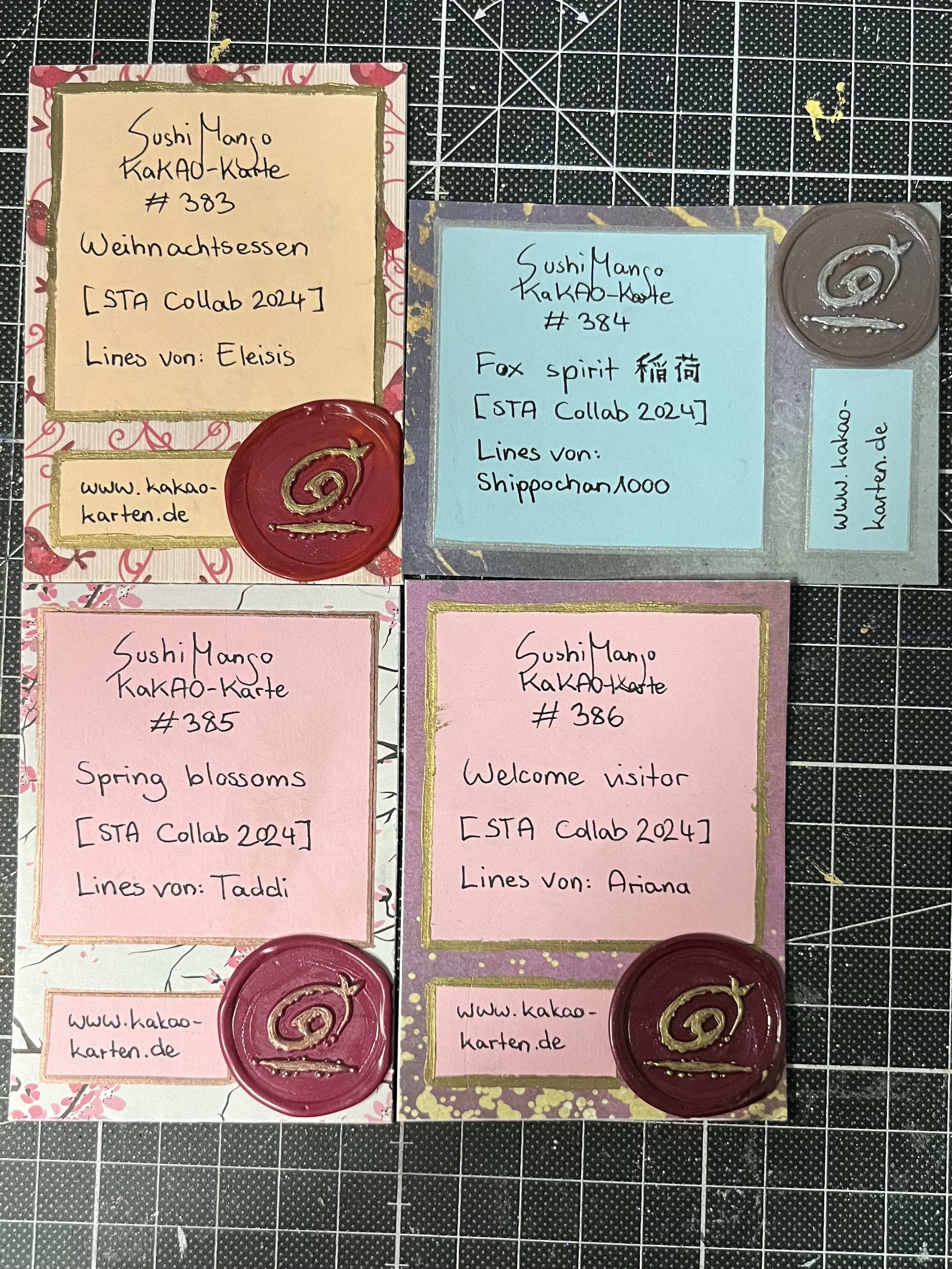 Sodele. Alle Karten fertig und Nummer drei ist auch schon hochgeladen und eingereicht (muss noch durch die Freischaltung, aber das geht ja schnell). Hab grad gesehen, dass ich die zweite vor der ersten eingereicht habe