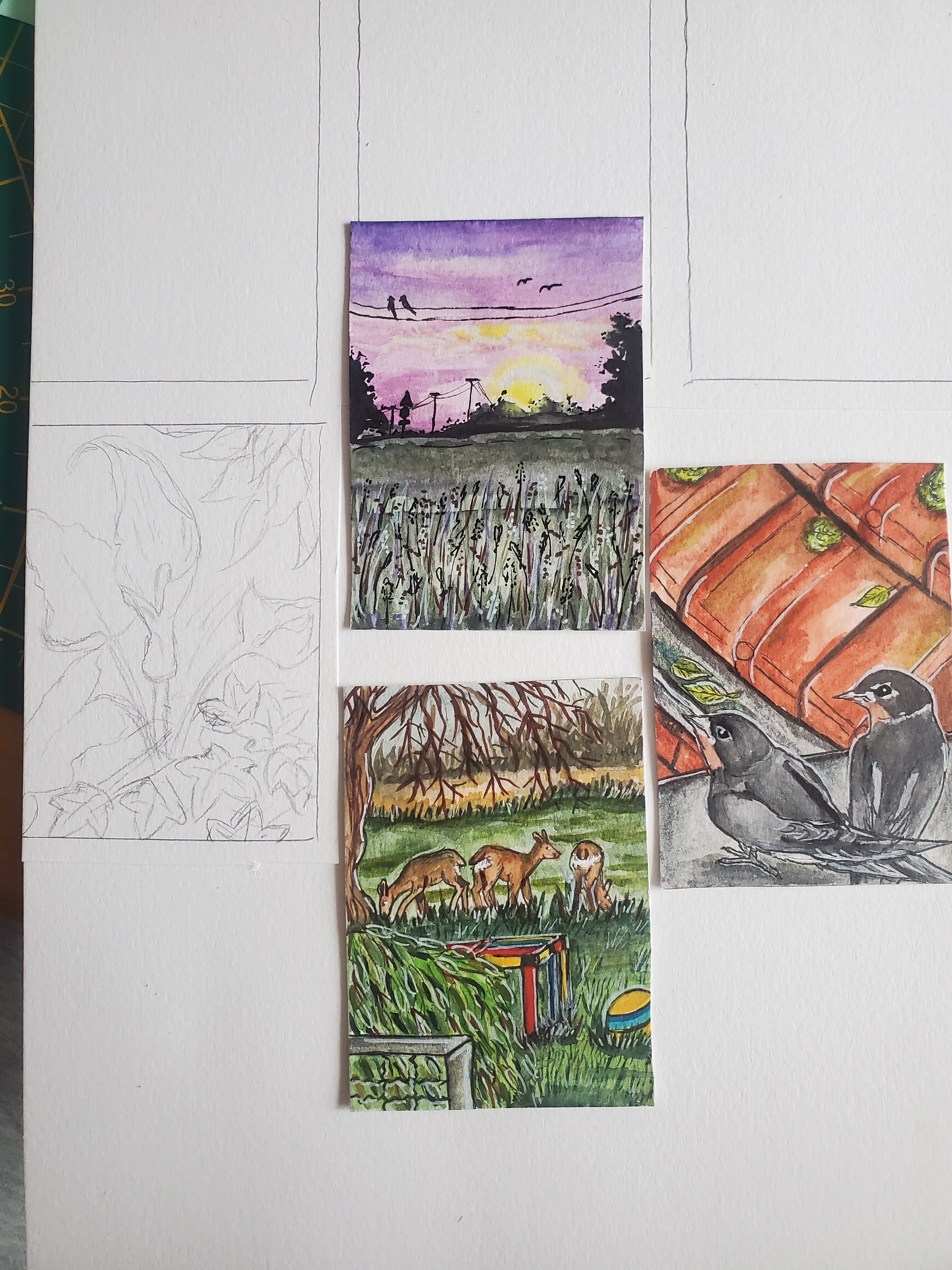 Sonnenuntergang - Blick vom Hof, Rehe die fast bis in unseren Garten kommen und Babyschwalben beim Flugunterricht.