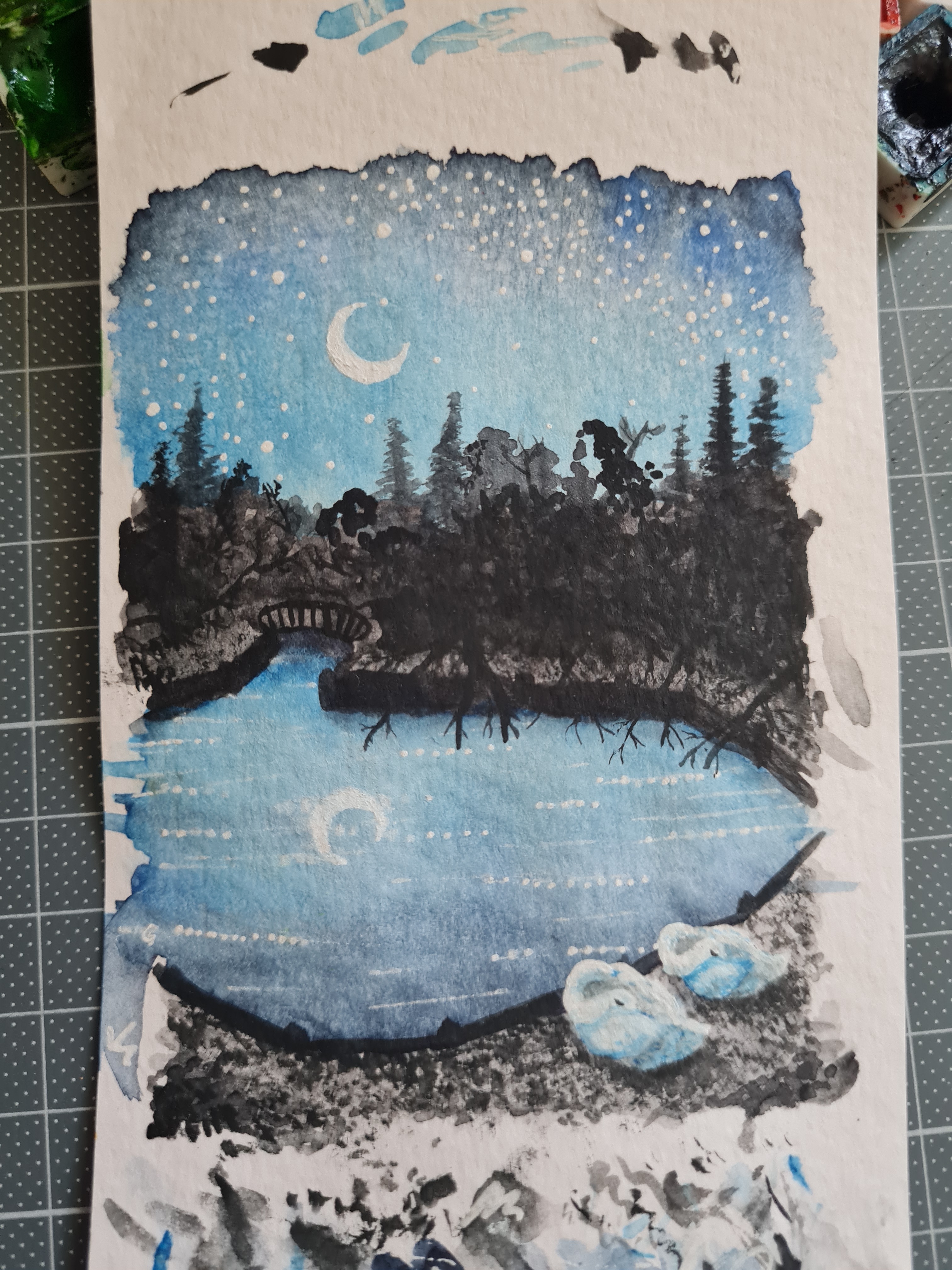 Karte 2… mein Mann hat mir vorhin skeptisch über die Schulter geschaut und gefragt “ist dir das Format zu klein geworden oder eine einfache Karte zu unaufwändig?” …äh, ja, das Innenleben ist soweit fertig und ich bin damit deutlich glücklicher als mit den Kitsch-Schwänen. Ich hoffe ich komme heute Abend dazu die Karte auch auf der Rückseite fertig zu machen!