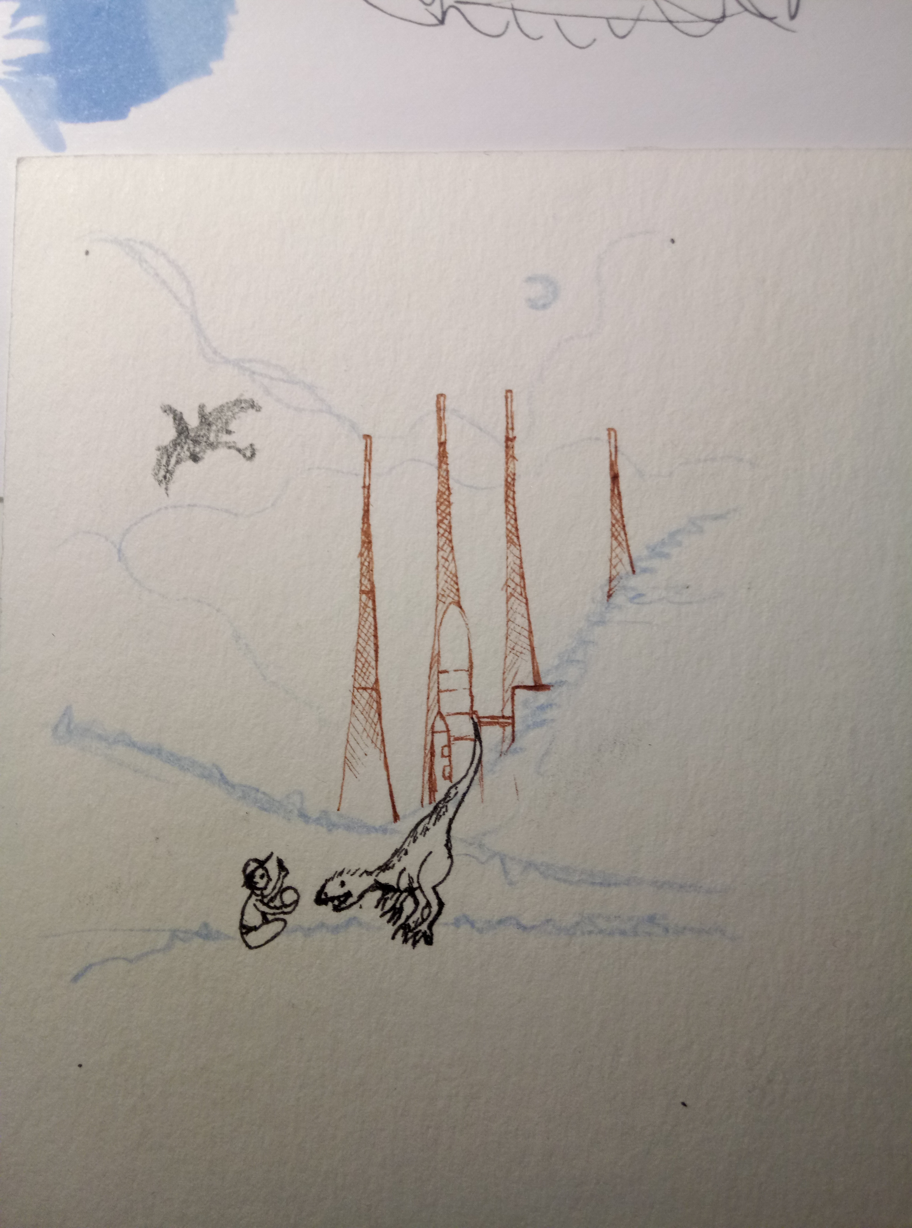 Übrigens um mal meinen eigenen Stand hier Up zu daten: Ich hab riesige Probleme einen Zug zu zeichnen, von meiner ersten Idee, dass ein Kadaver Dino die Gleisen versperren… und mittlerweile habe ich auch keine Lust mehr ein totes Tier zu zeichnen haha