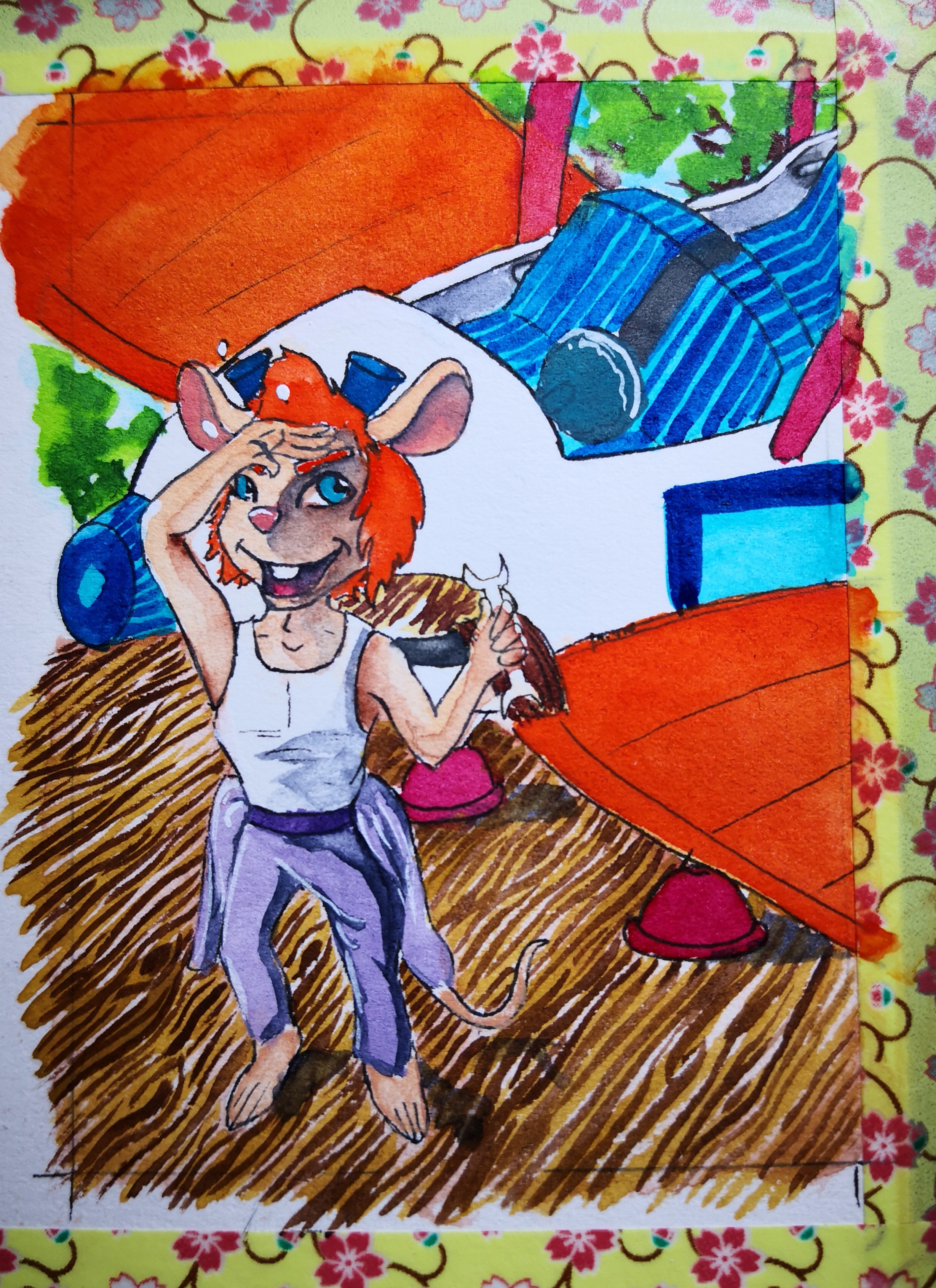 So, ich hab jetzt Rapunzels Gemälde als Hintergrund gewählt, weil irgend etwas möbliertes oder ihr Zimmer einfach kein Platz gehabt hätte